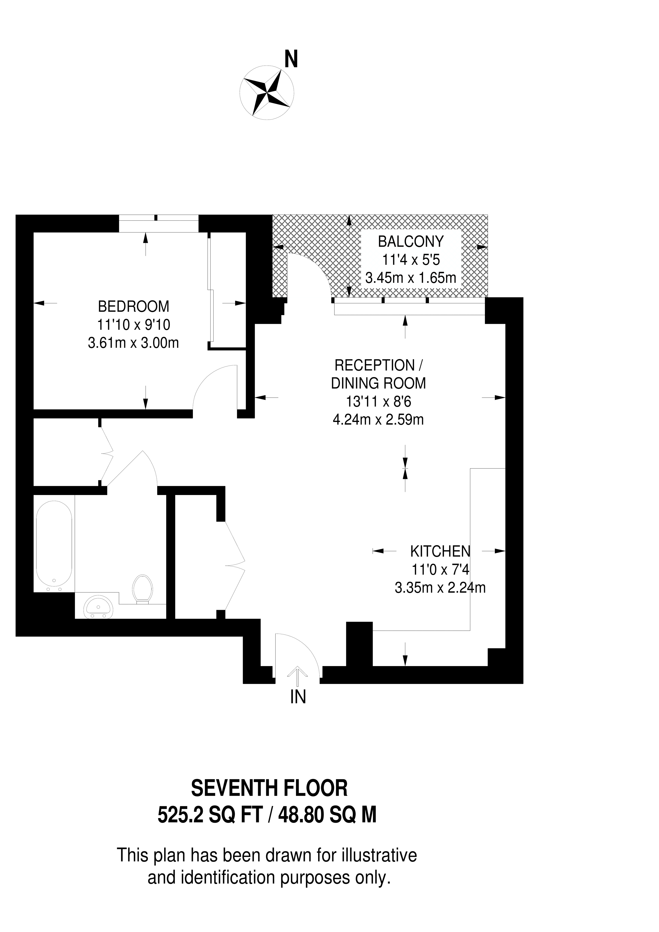 £475,000 South aspect. 7th floor flat | 1 Bed | 538 Sq Ft50 Sq M | ||