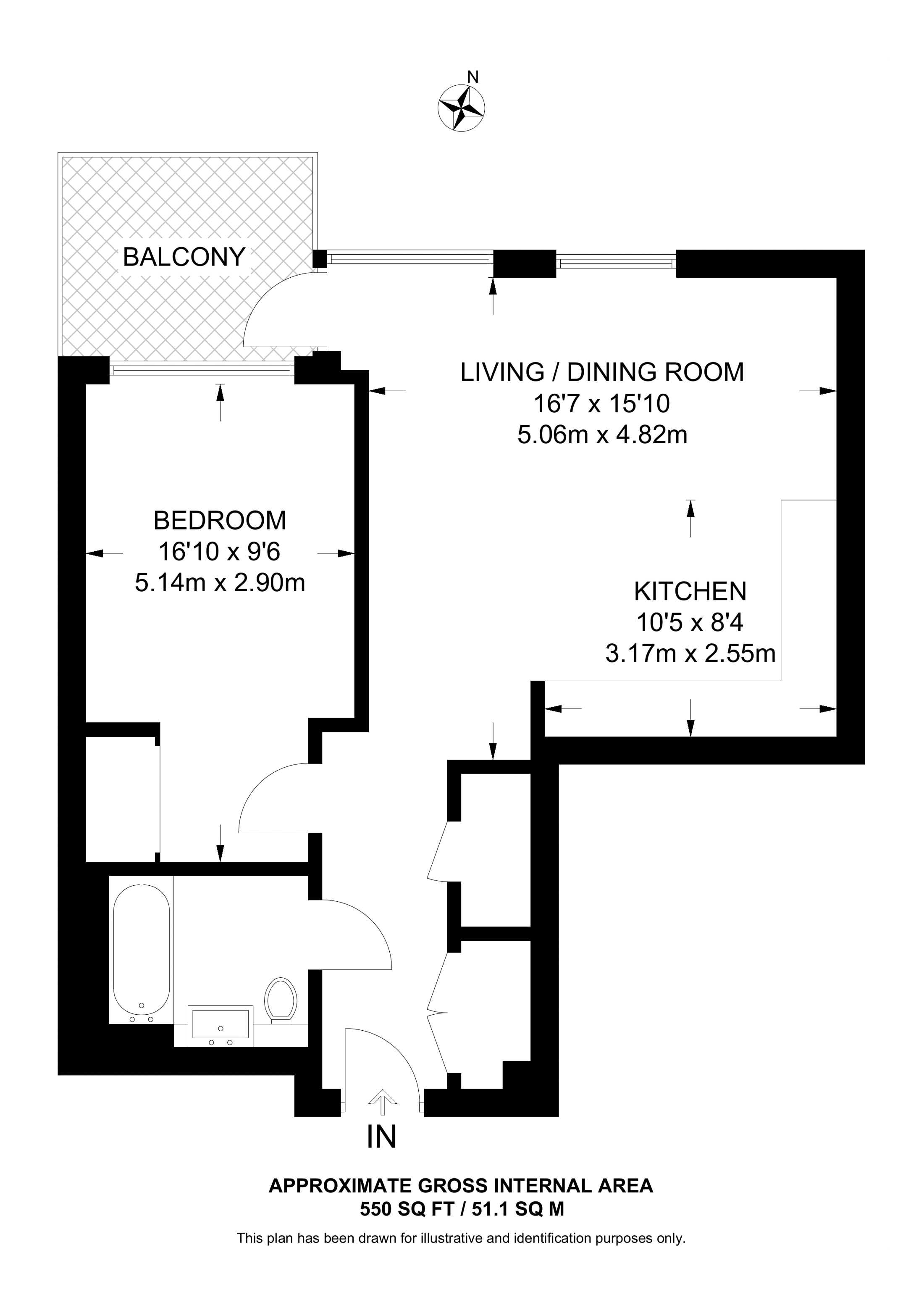 £457,500 North aspect. 4th floor flat | 1 Bed | 550 Sq Ft51 Sq M | ||