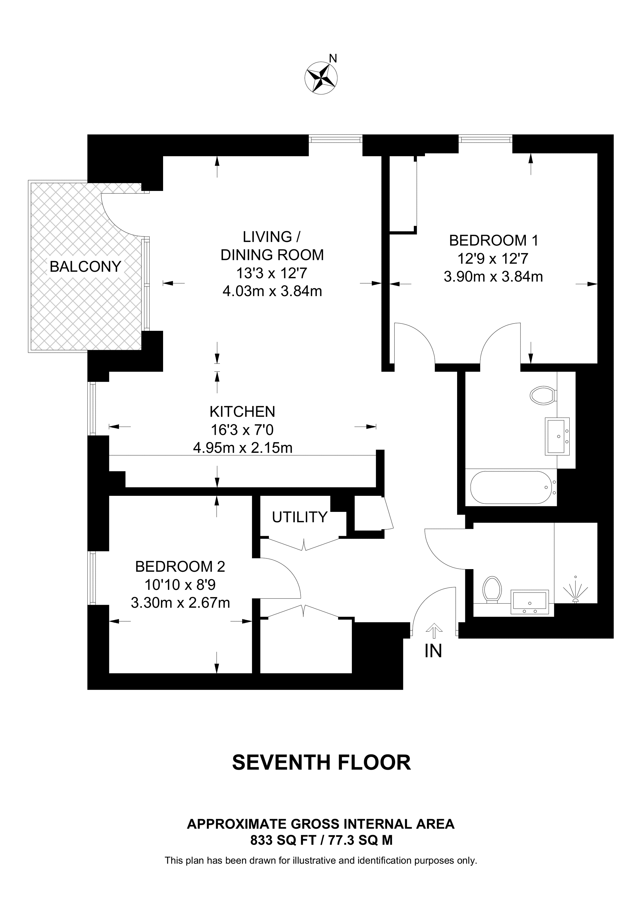 £665,000 North West aspect. 11th floor flat | 2 Beds | 833 Sq Ft77 Sq M | ||