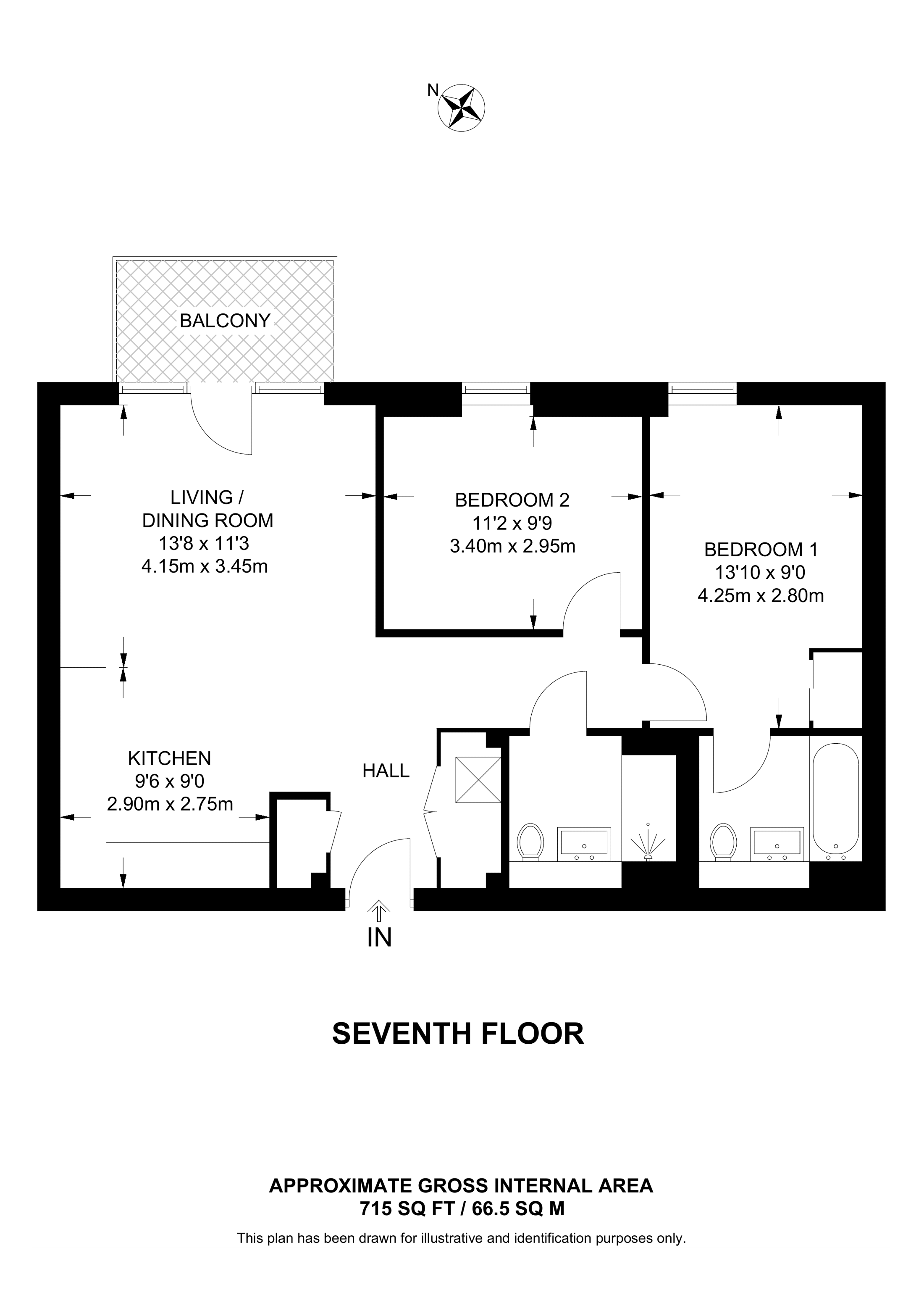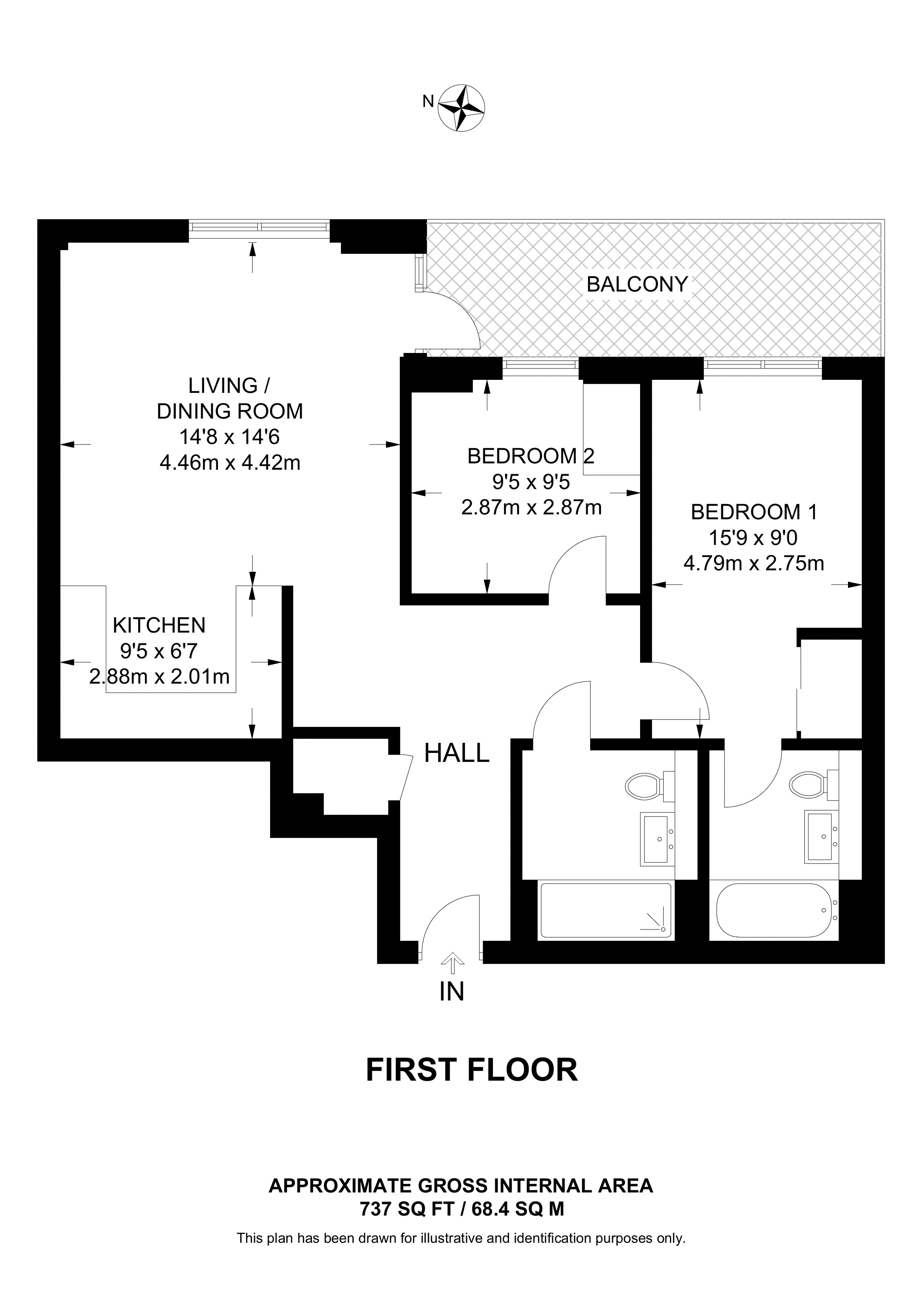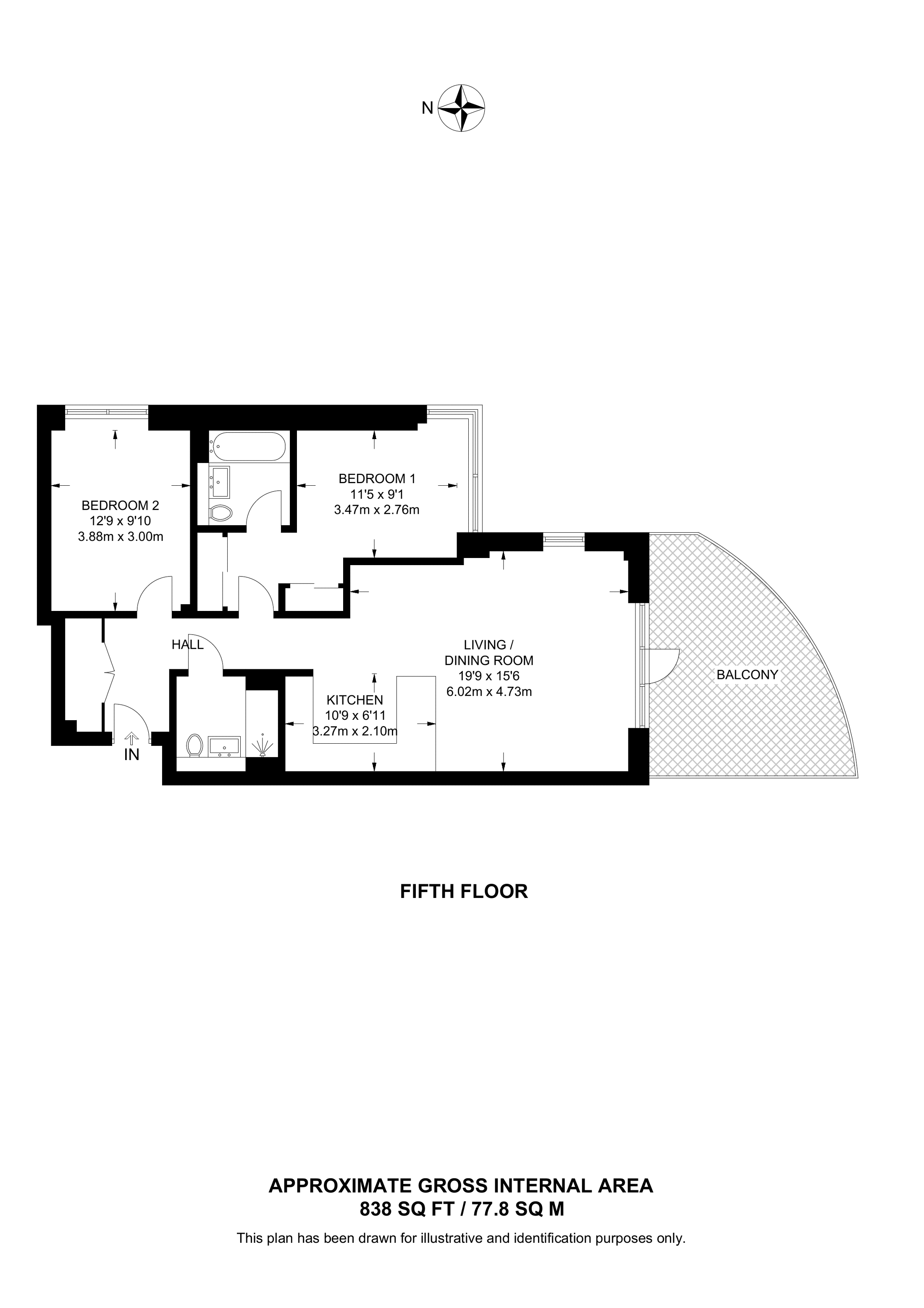 £425,000 North East aspect. 1st floor flat | 2 Beds | 710 Sq Ft66 Sq M | ||