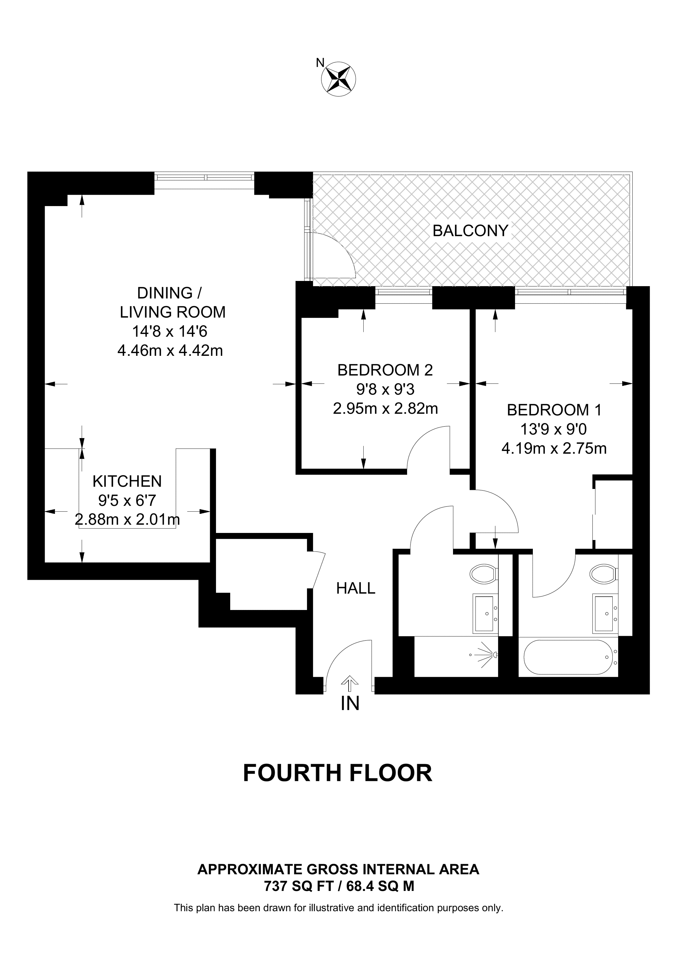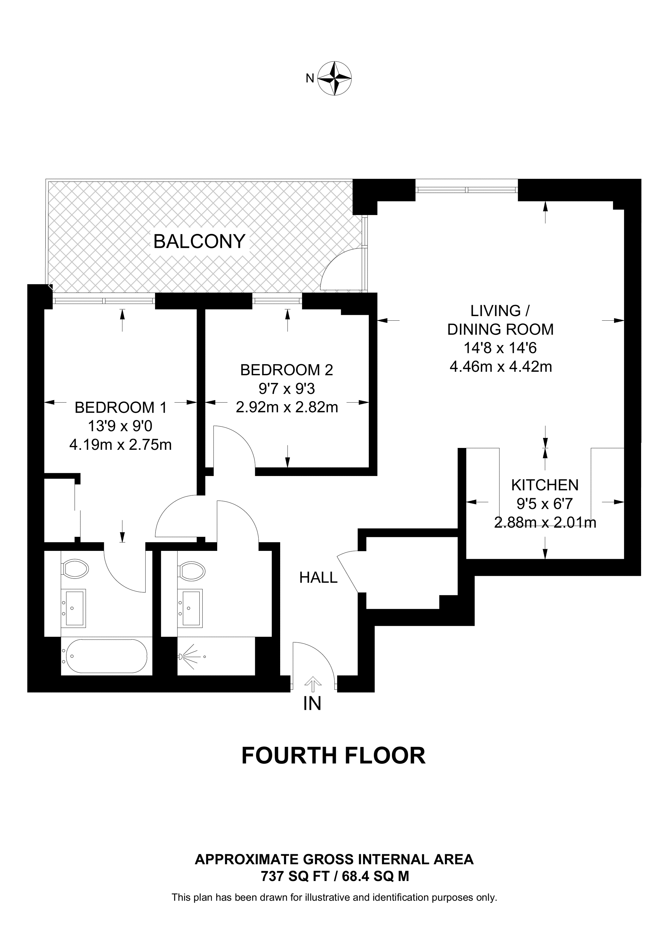 £430,000 East aspect. 4th floor flat | 2 Beds | 737 Sq Ft68 Sq M | ||