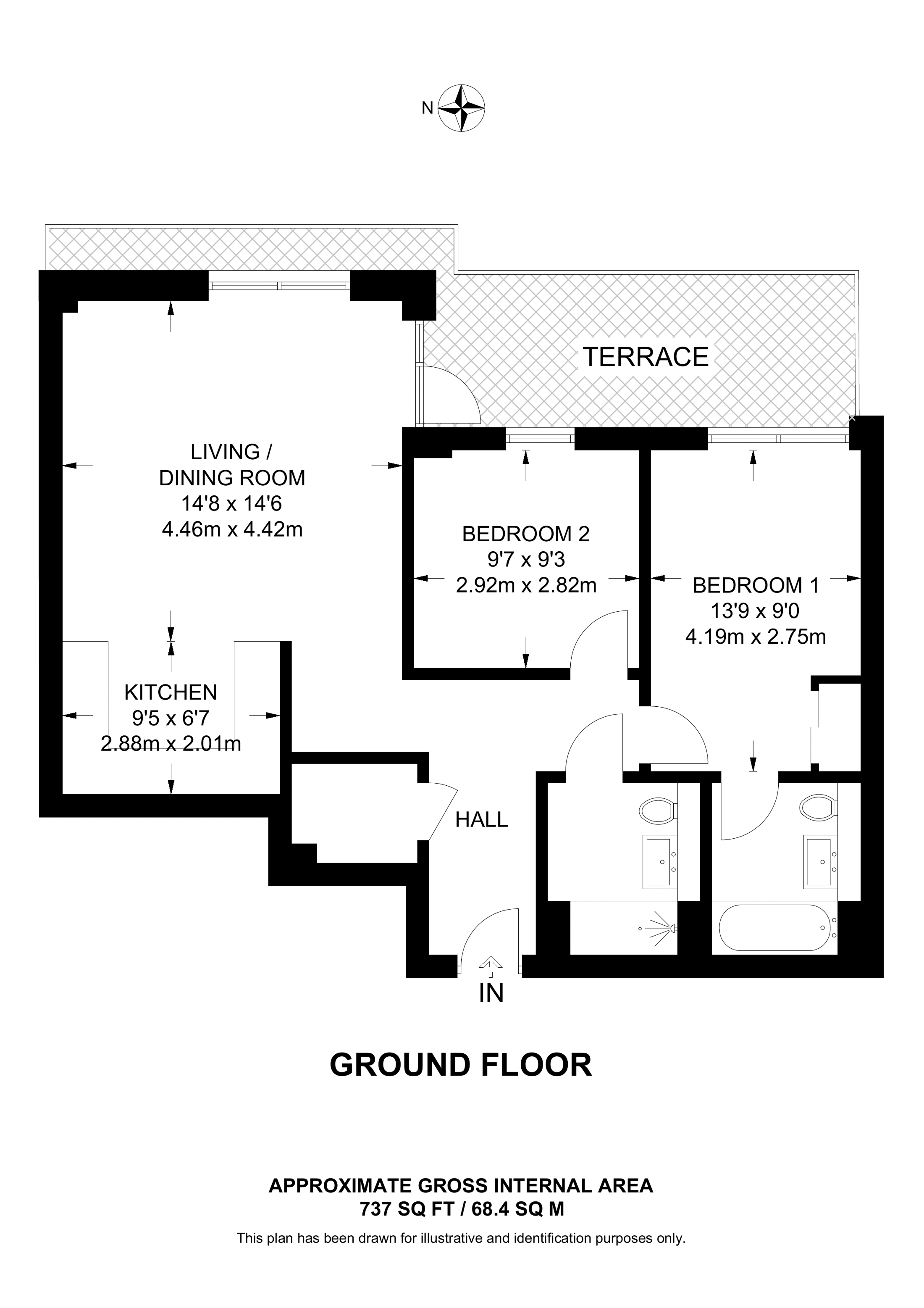 £420,000 East aspect. Ground floor flat | 2 Beds | 737 Sq Ft68 Sq M | ||