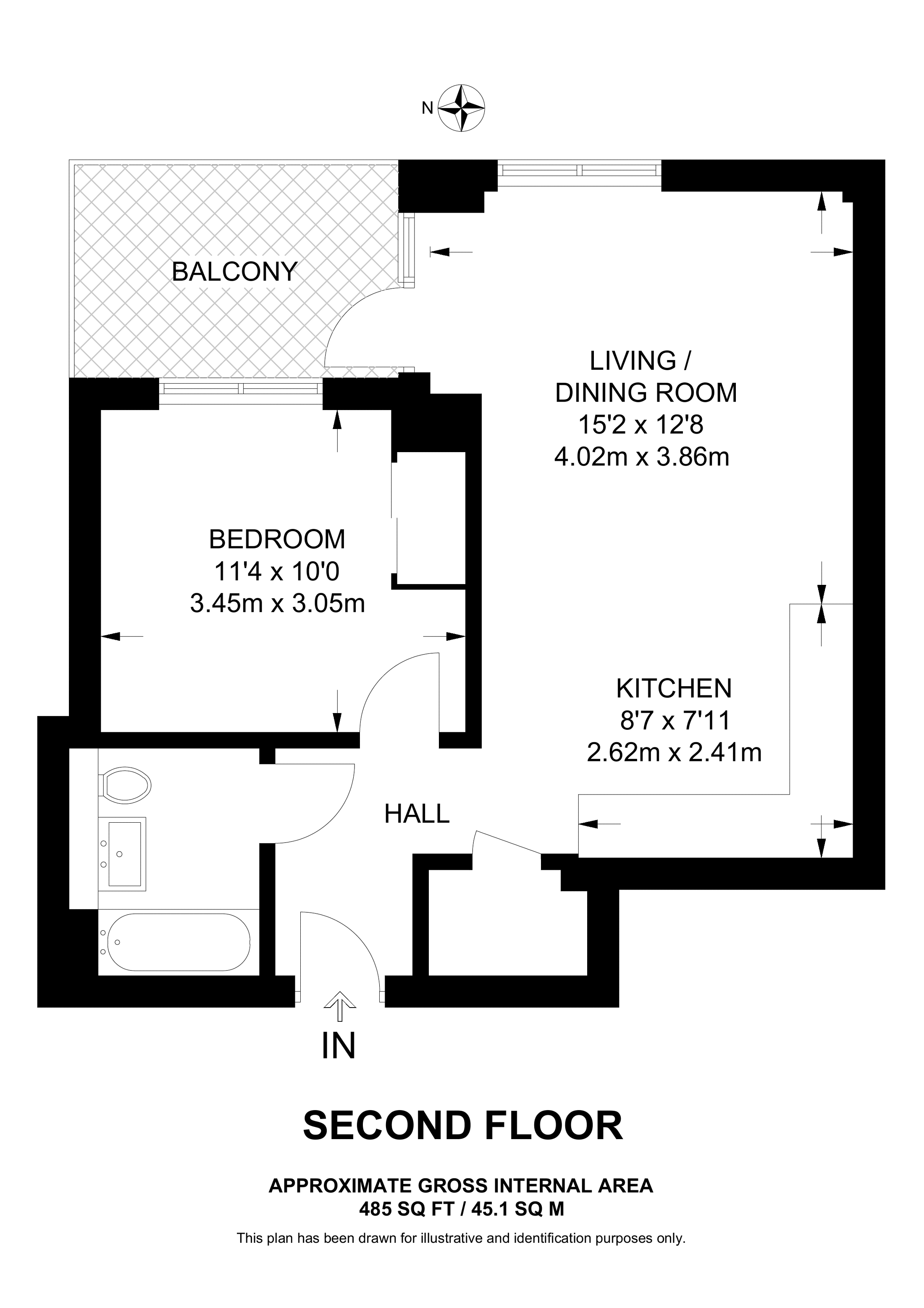 £300,000 2nd floor flat | 1 Bed | 485 Sq Ft45 Sq M | ||
