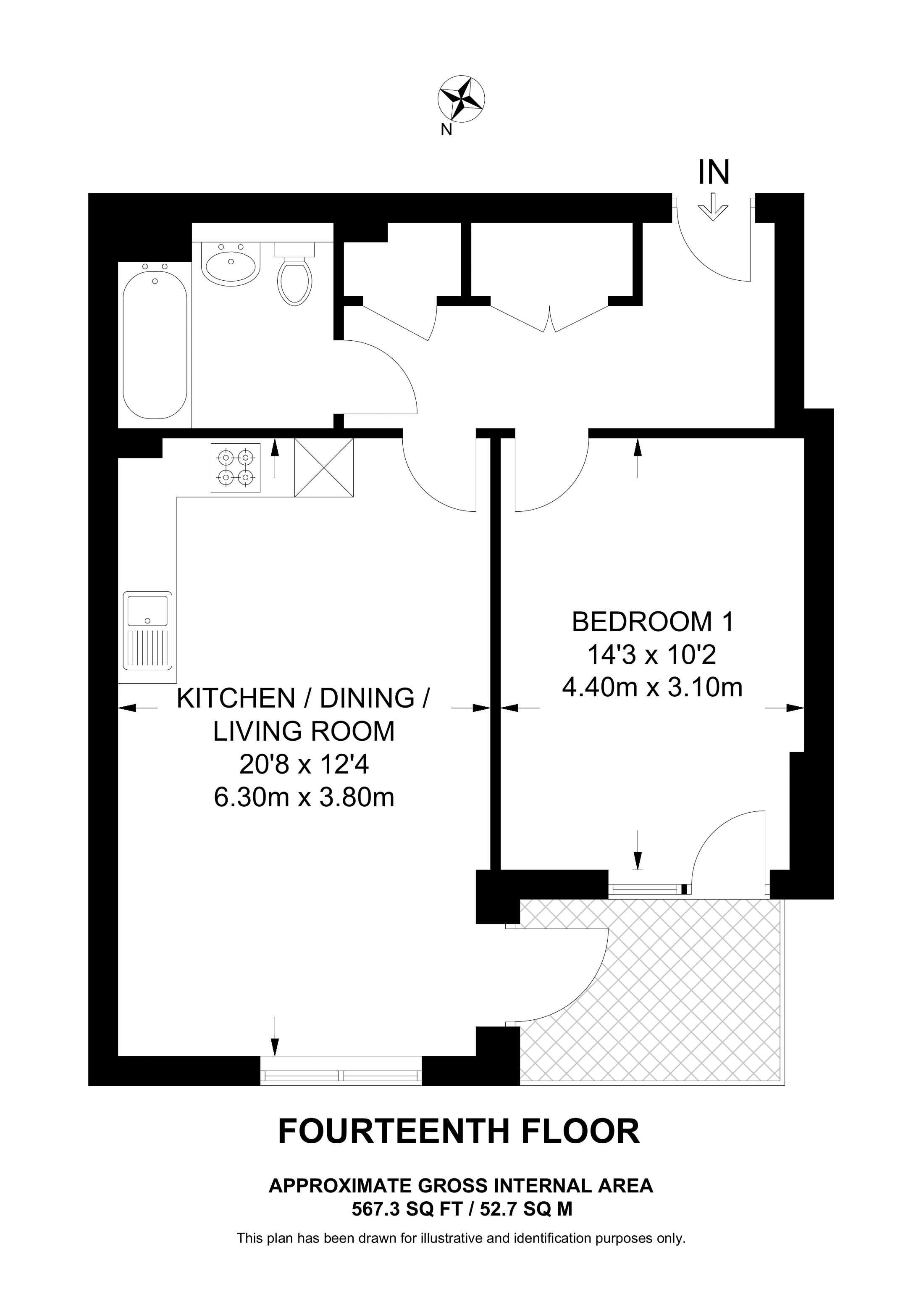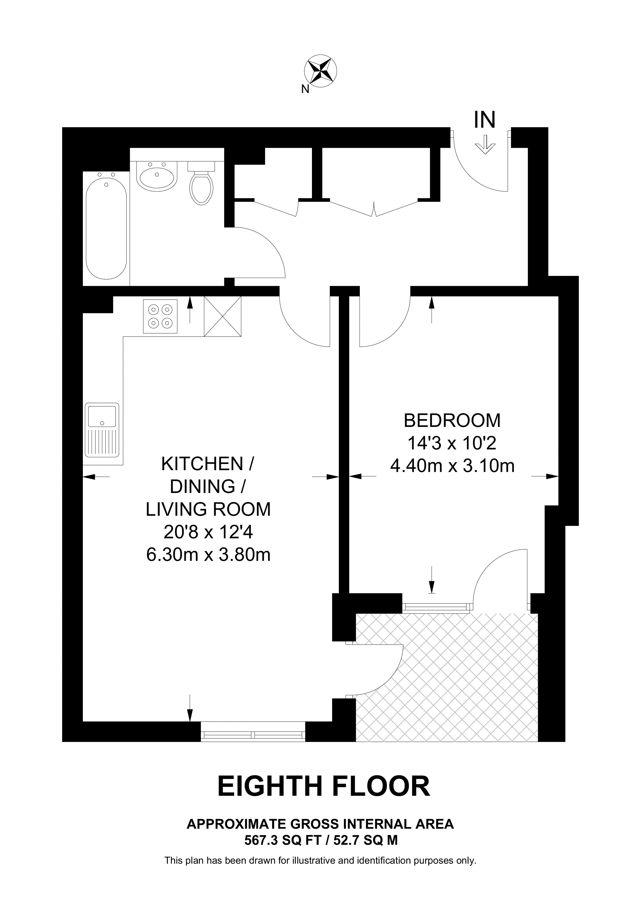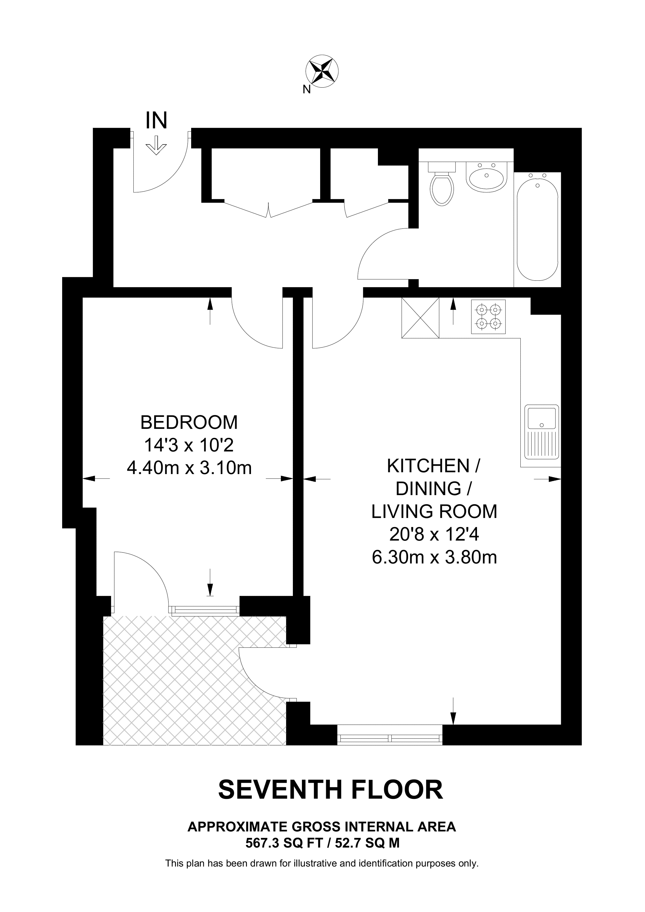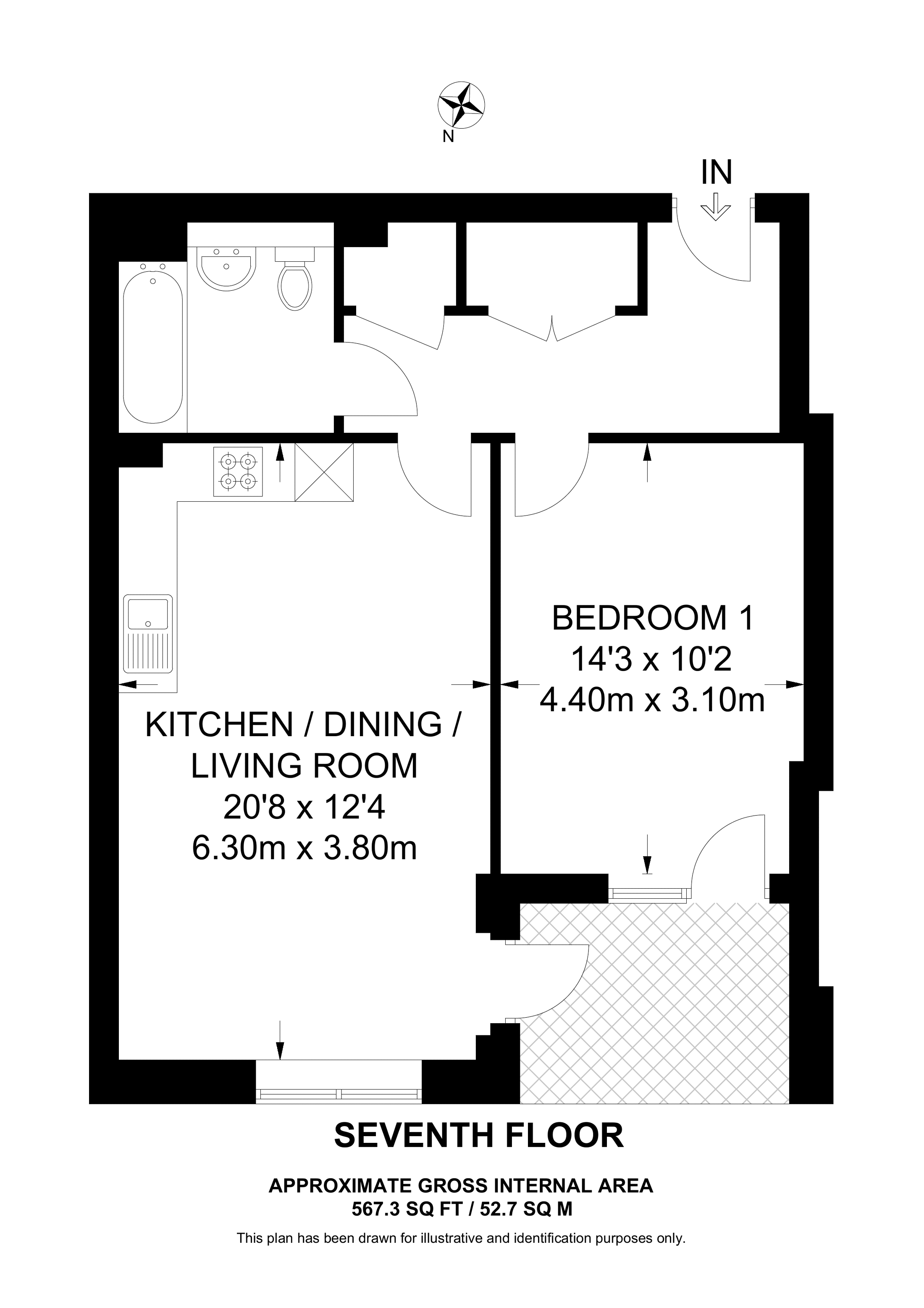 £427,500 4th floor flat | 1 Bed | 567 Sq Ft53 Sq M | ||