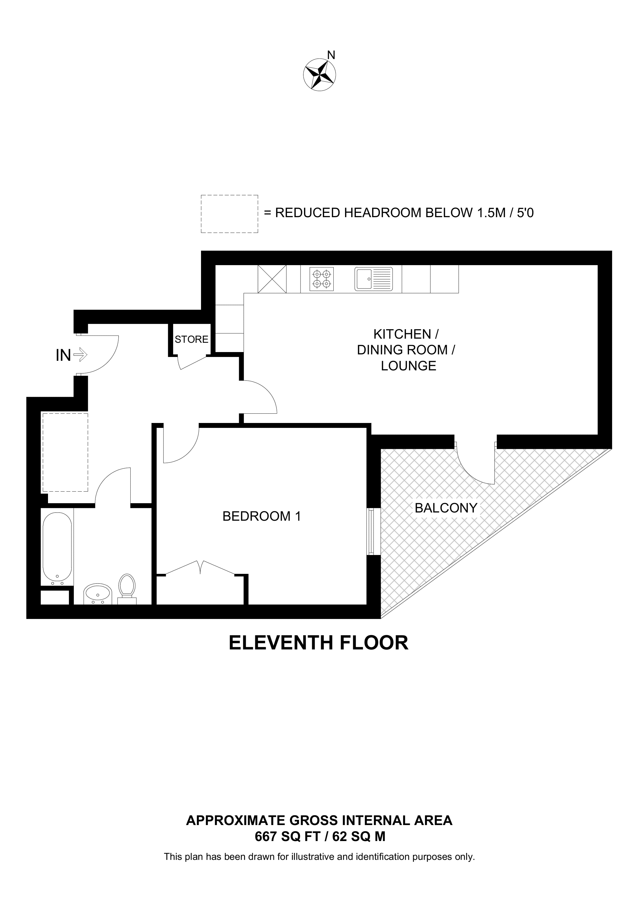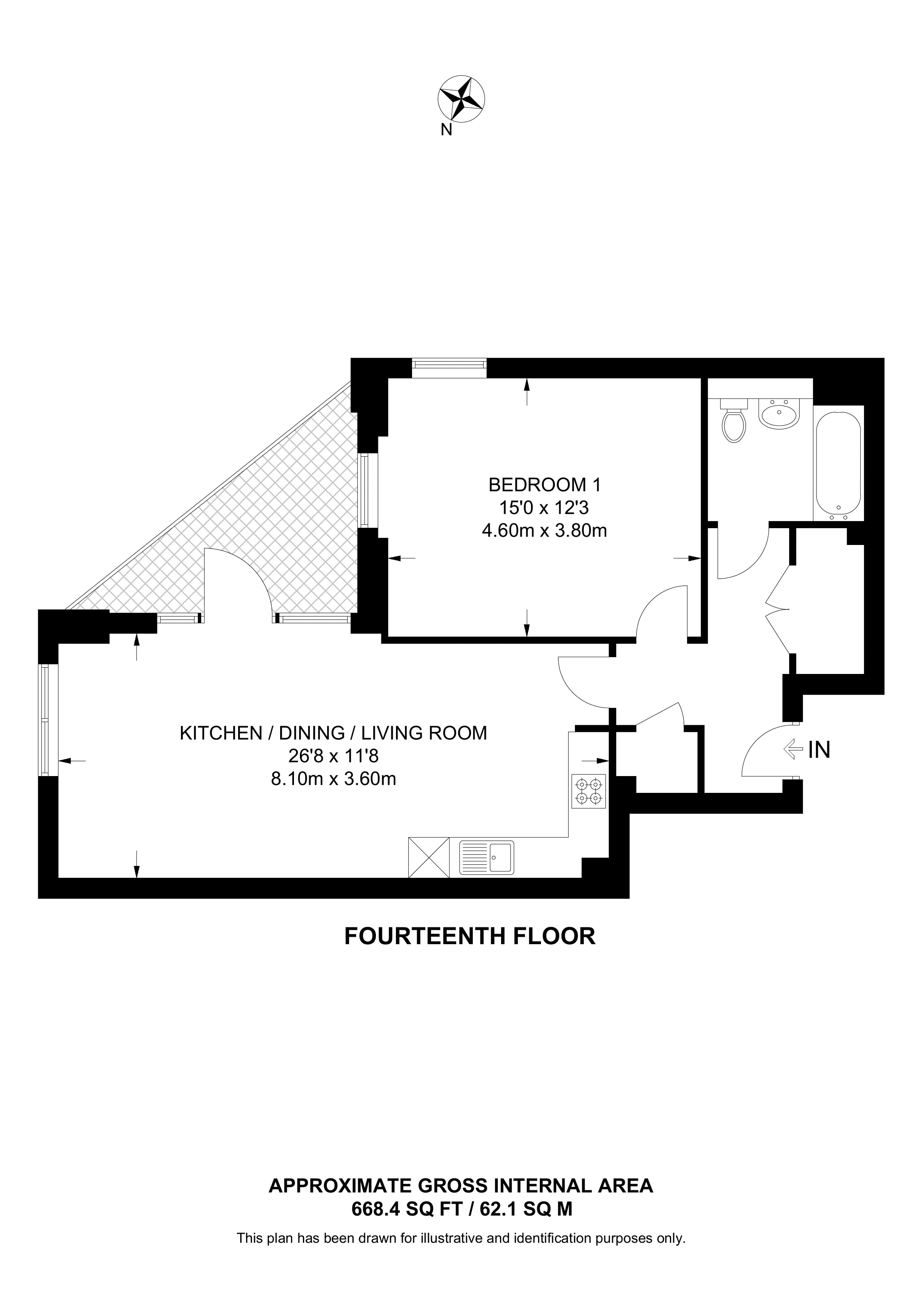 £490,000 North East aspect. 14th floor flat | 1 Bed | 668 Sq Ft62 Sq M | ||