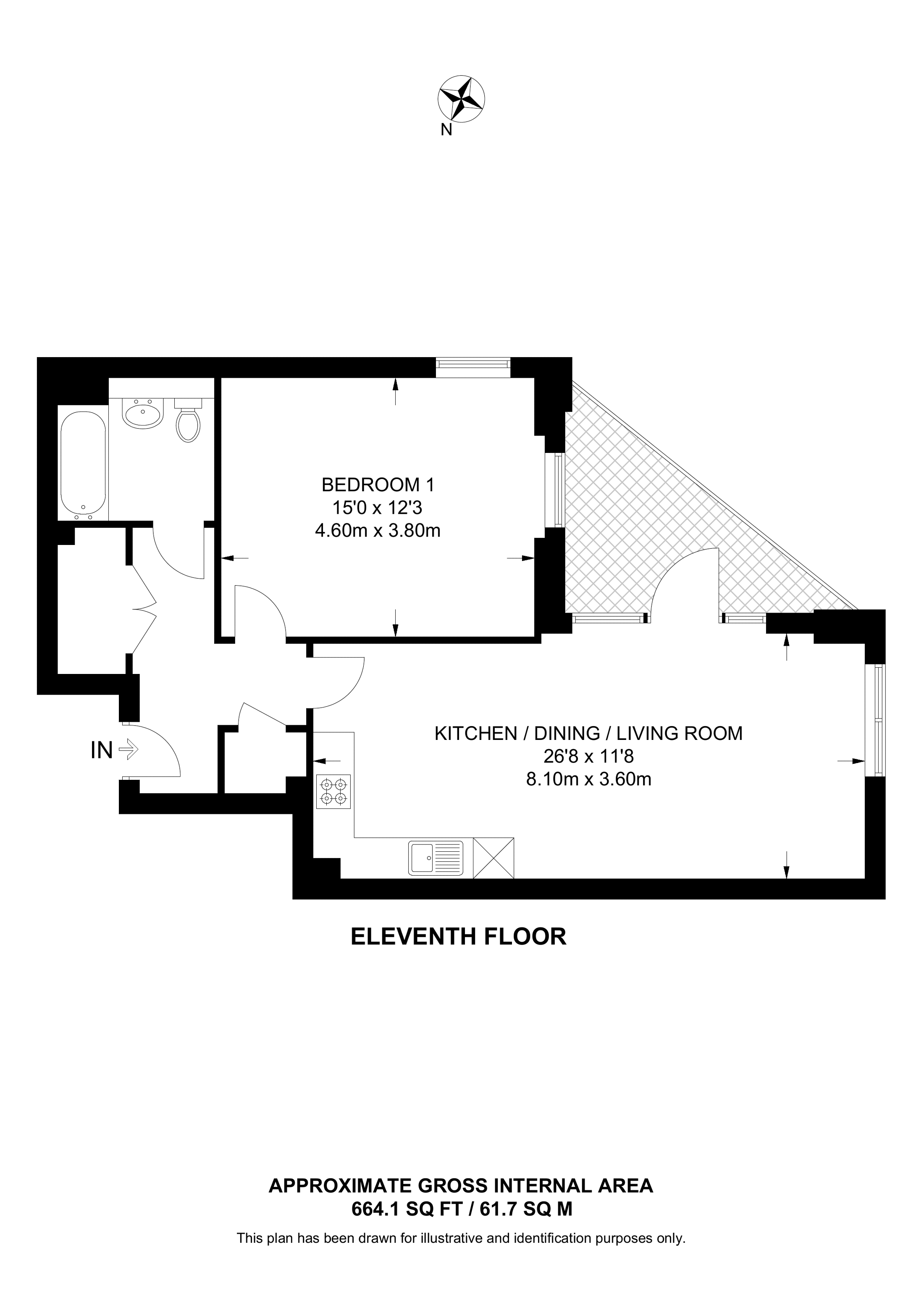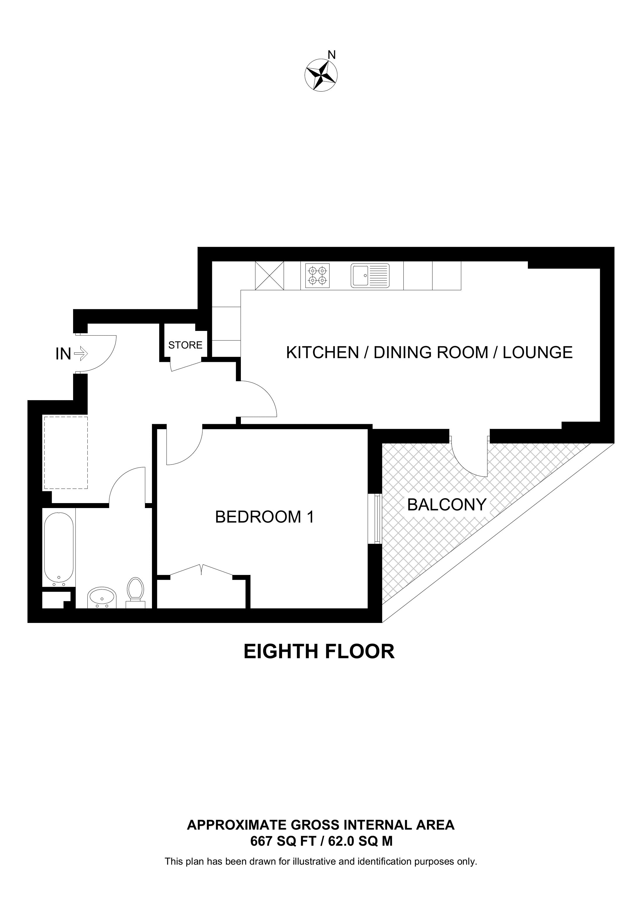 £460,000 North West aspect. 8th floor flat | 1 Bed | 664 Sq Ft62 Sq M | ||