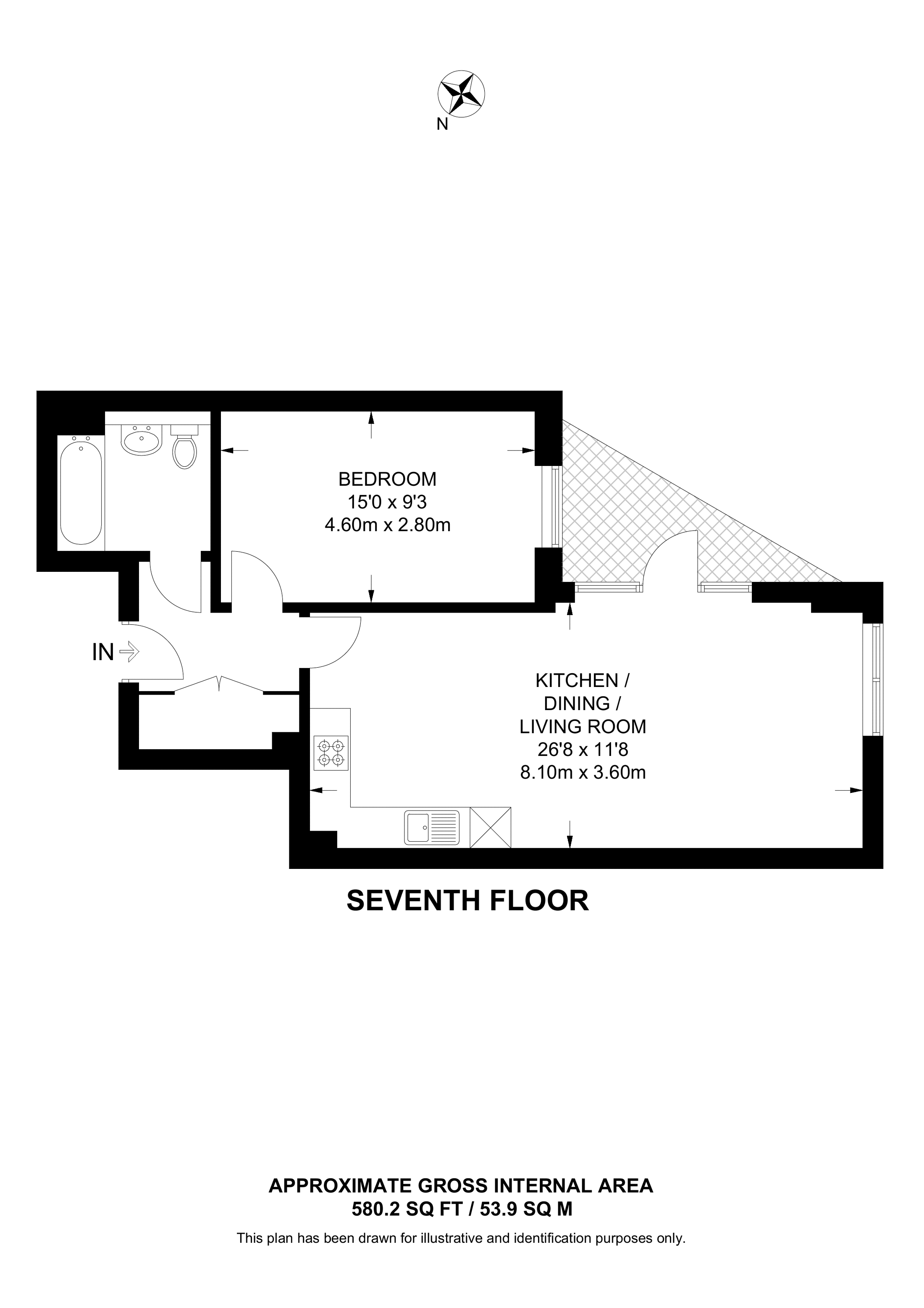 £425,000 3rd floor flat | 1 Bed | 580 Sq Ft54 Sq M | ||