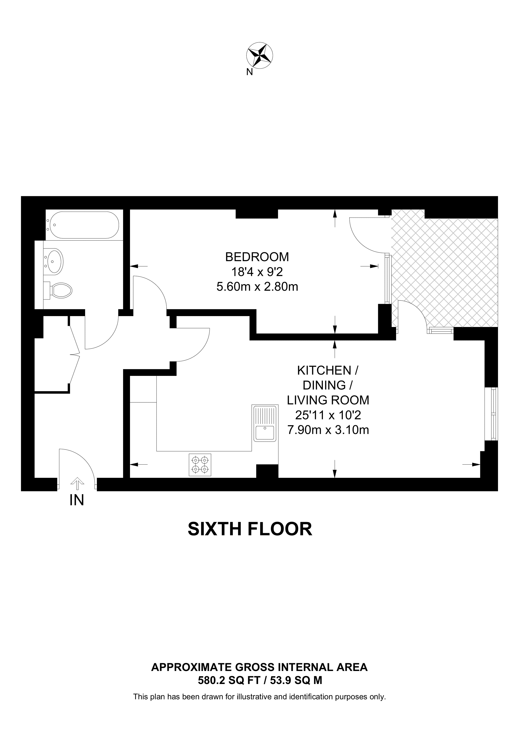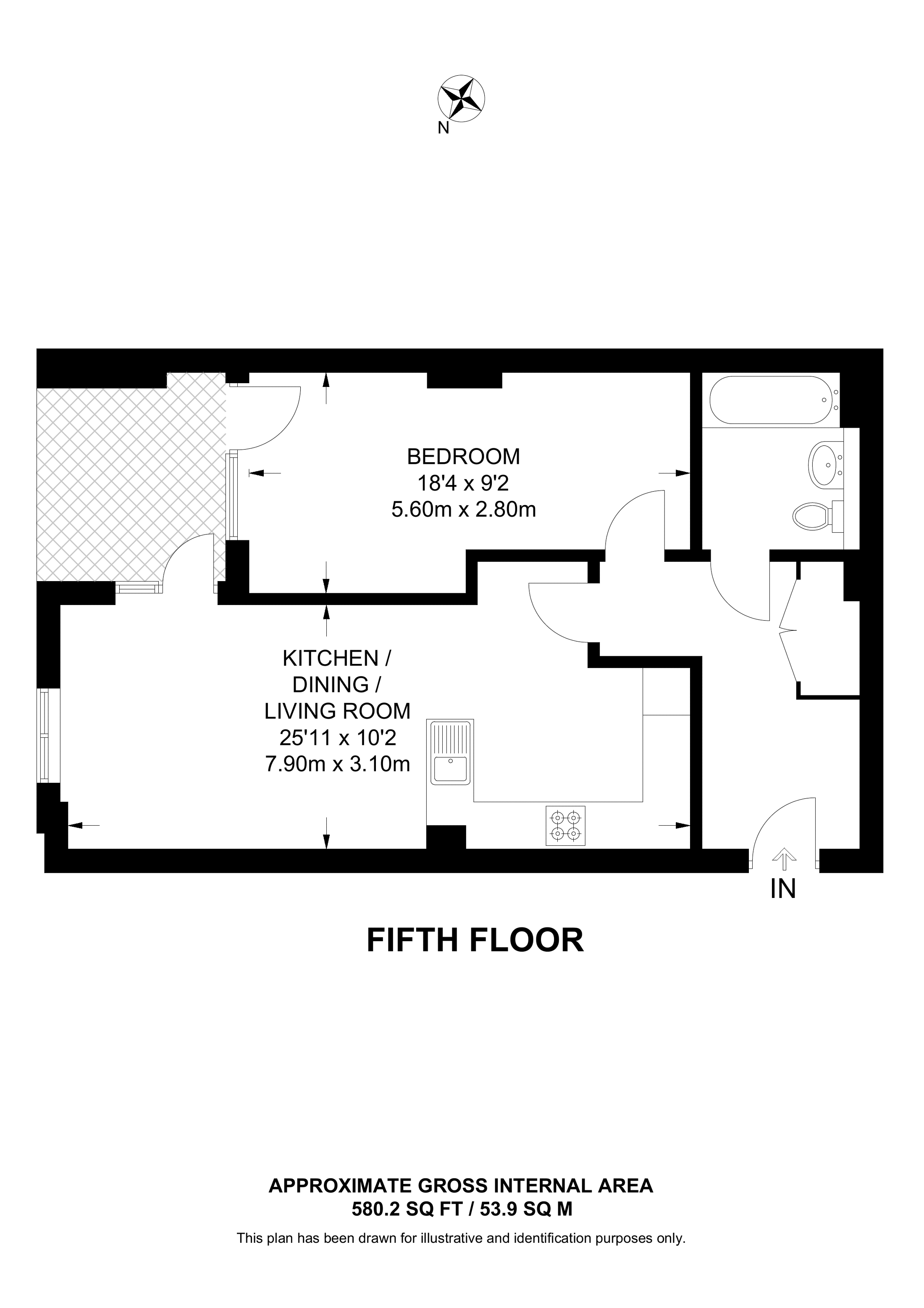 £435,000 North East aspect. 5th floor flat | 1 Bed | 580 Sq Ft54 Sq M | ||