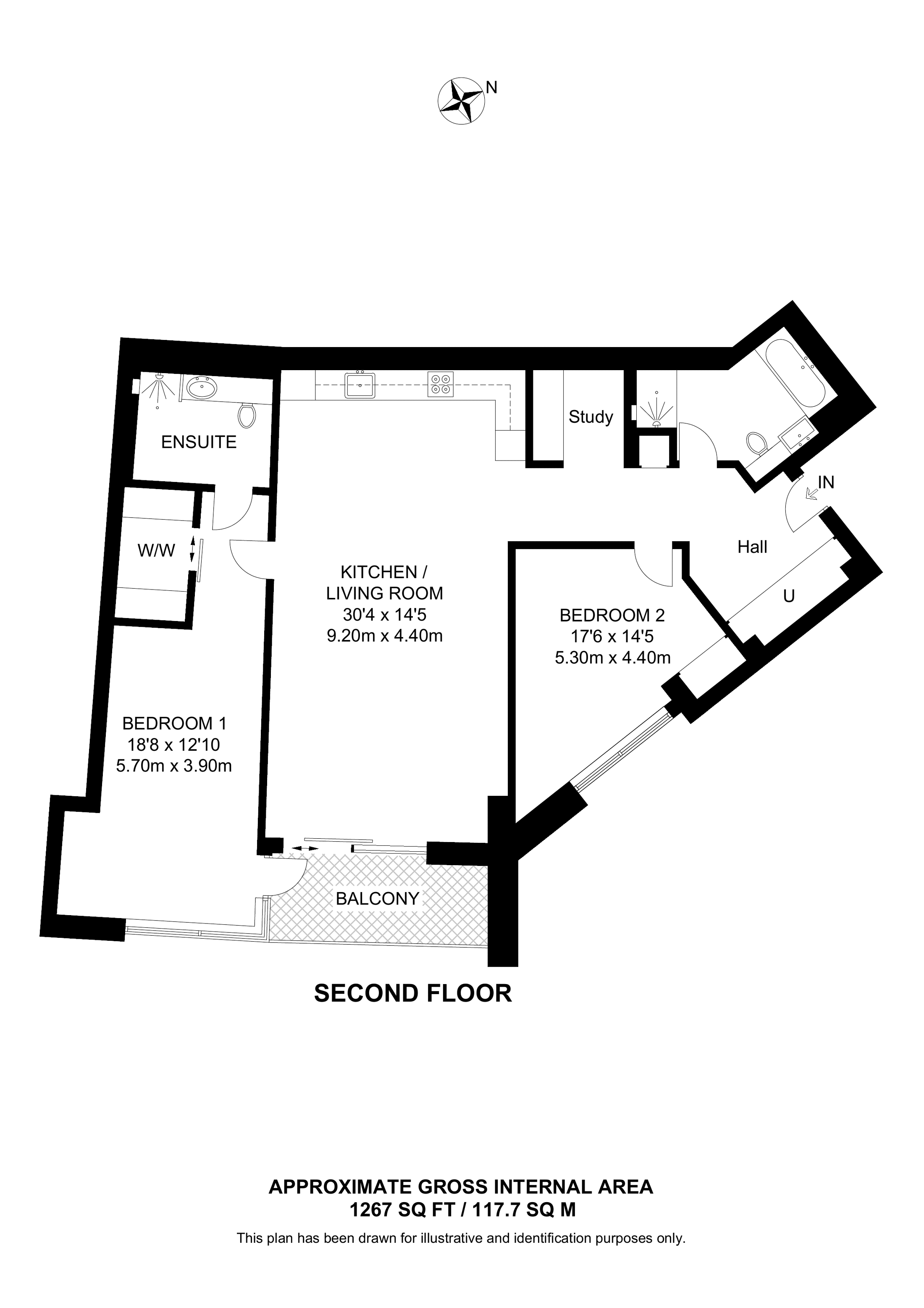 £1,895,000 East aspect. 2nd floor flat | 2 Beds | 1,267 Sq Ft118 Sq M | ||