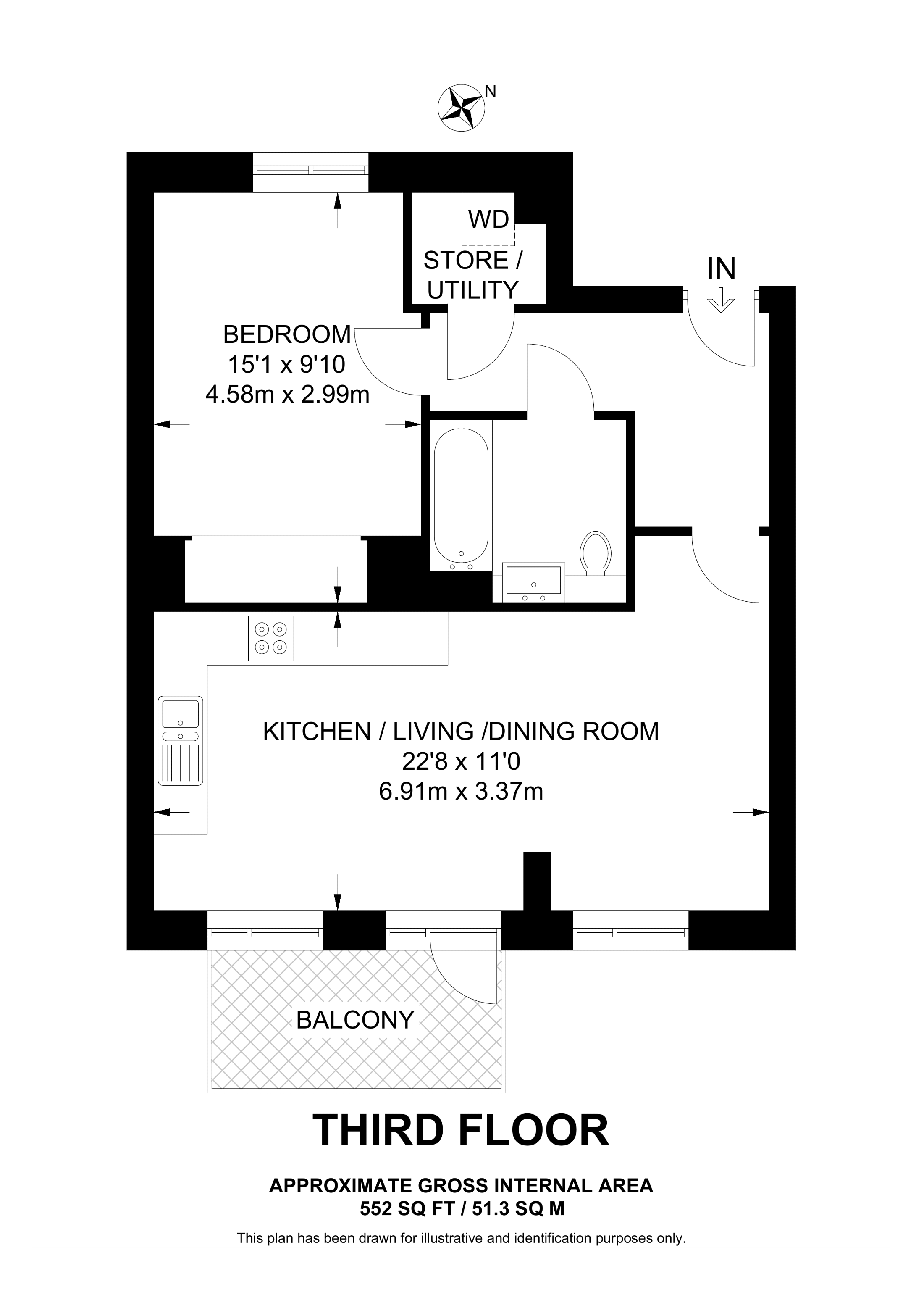 £475,000 3rd floor flat | 1 Bed | 552 Sq Ft51 Sq M | ||