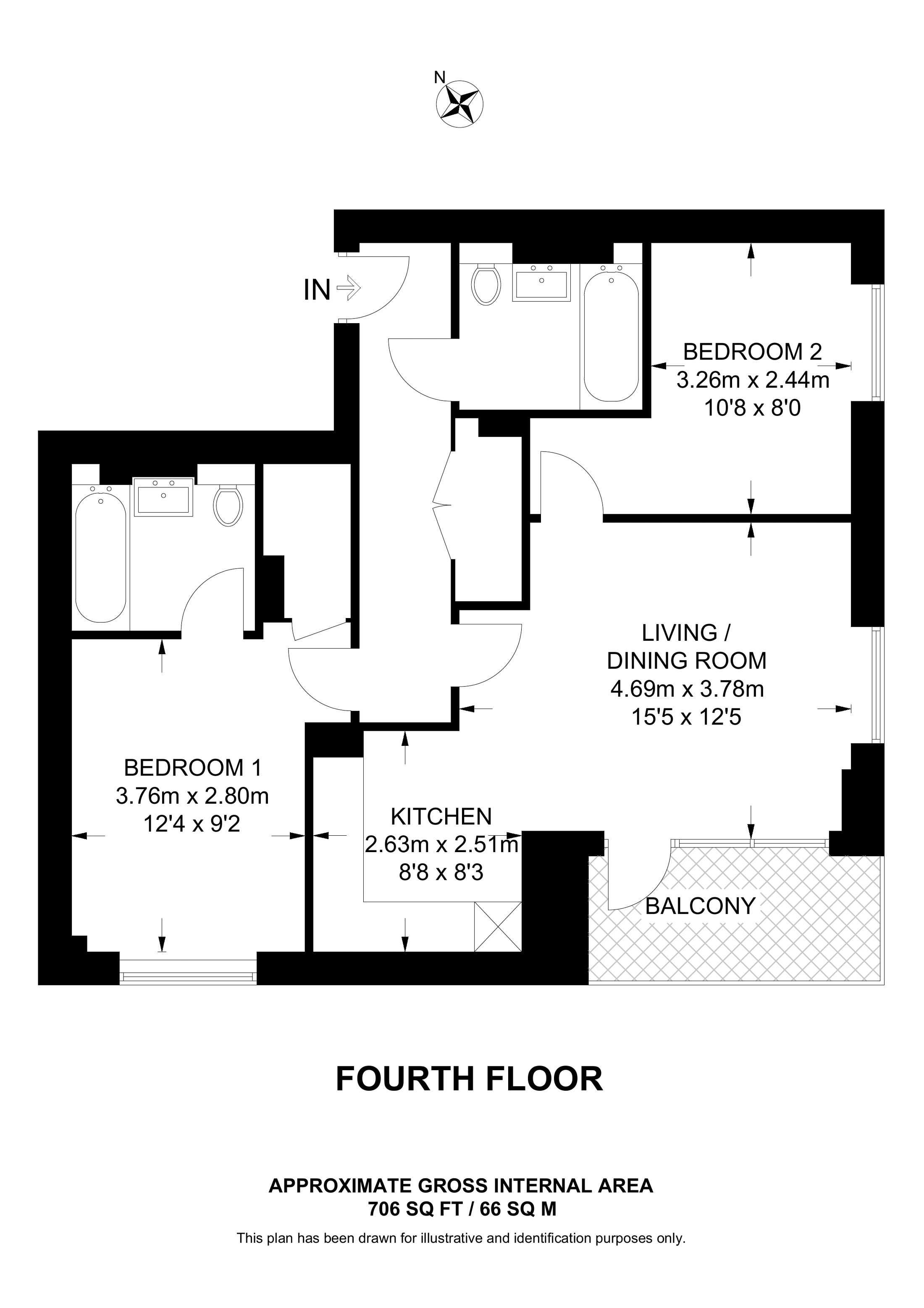 £450,000 South East aspect. 4th floor flat | 2 Beds | 706 Sq Ft66 Sq M | ||