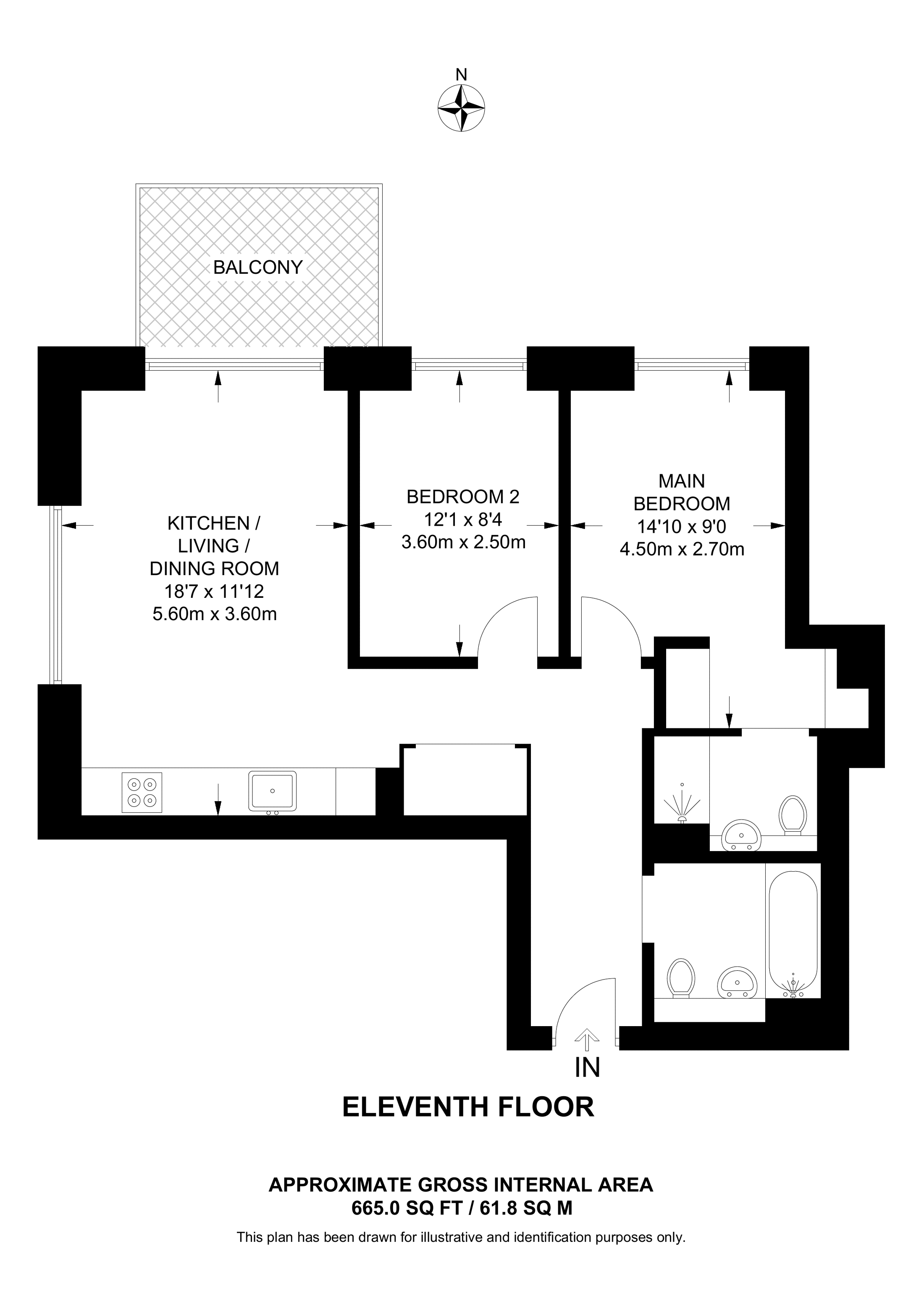 £585,000 North West aspect. 1st floor flat | 2 Beds | 663 Sq Ft62 Sq M | ||