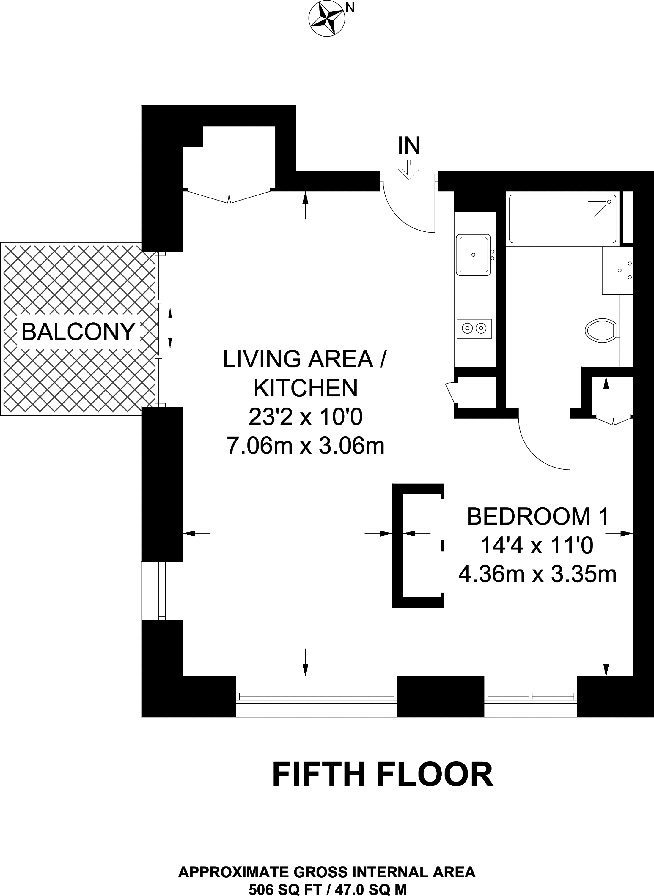 £427,000 South East aspect. 5th floor flat | Studio | 506 Sq Ft47 Sq M | ||