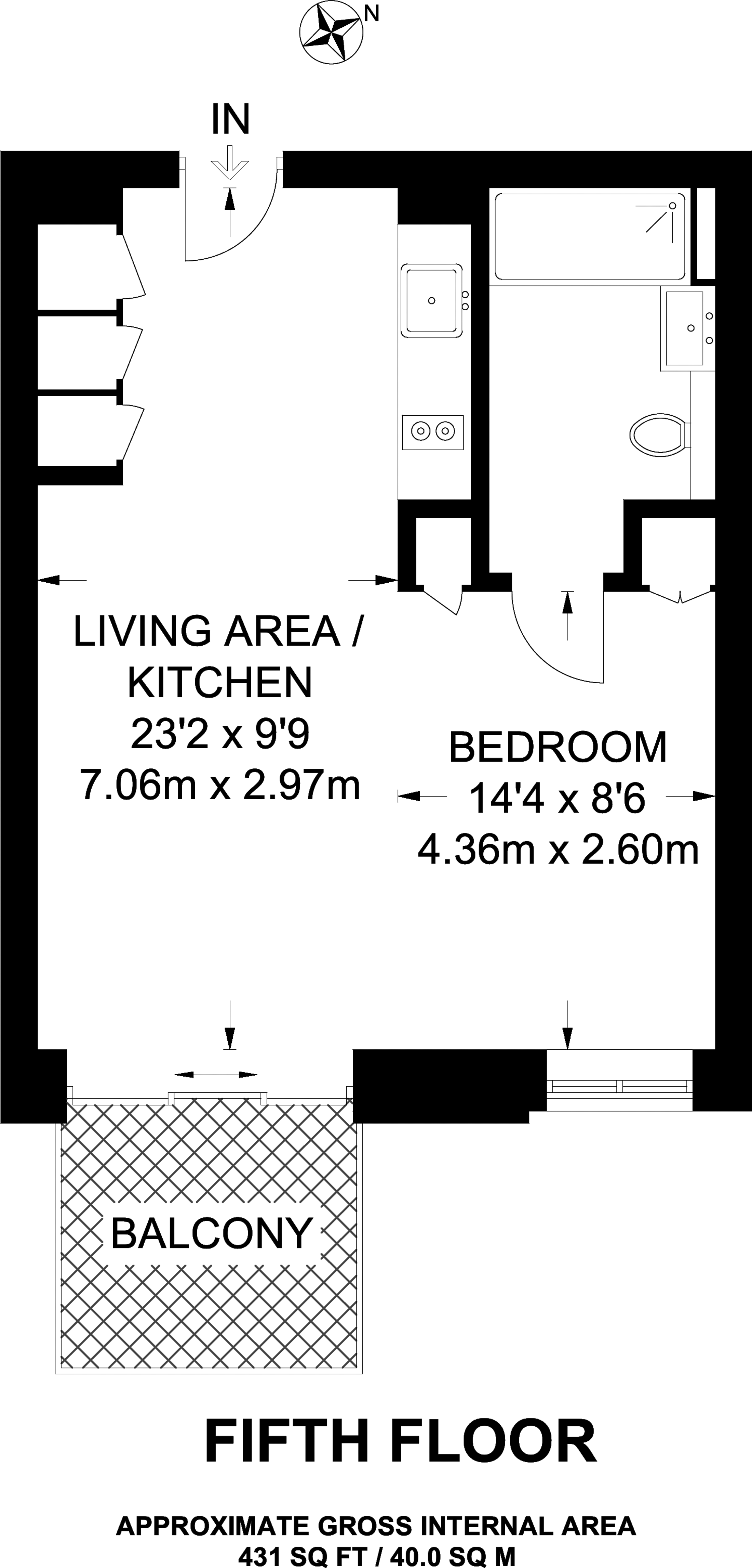 £390,500 East aspect. 5th floor flat | 1 Bed | 431 Sq Ft40 Sq M | ||