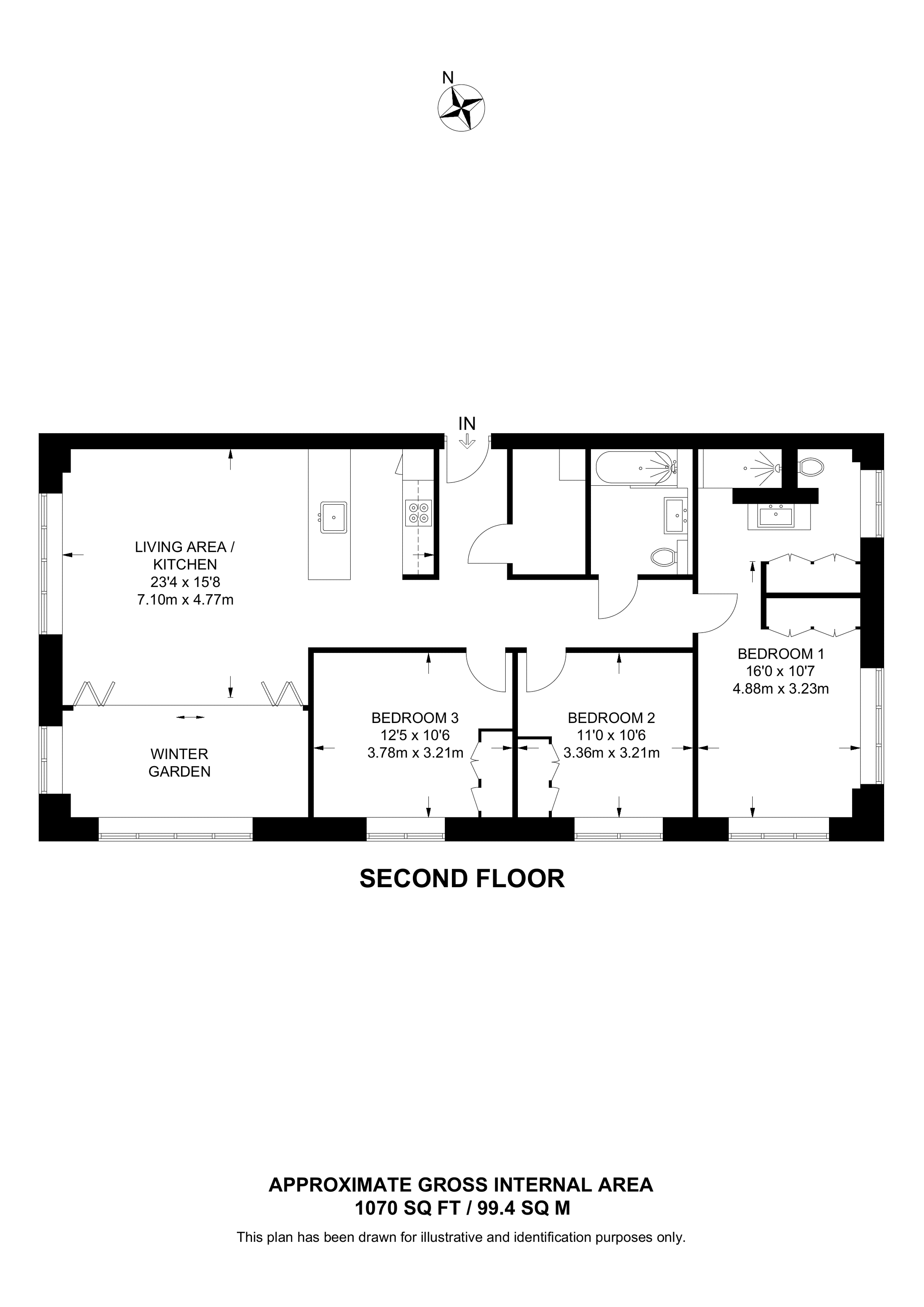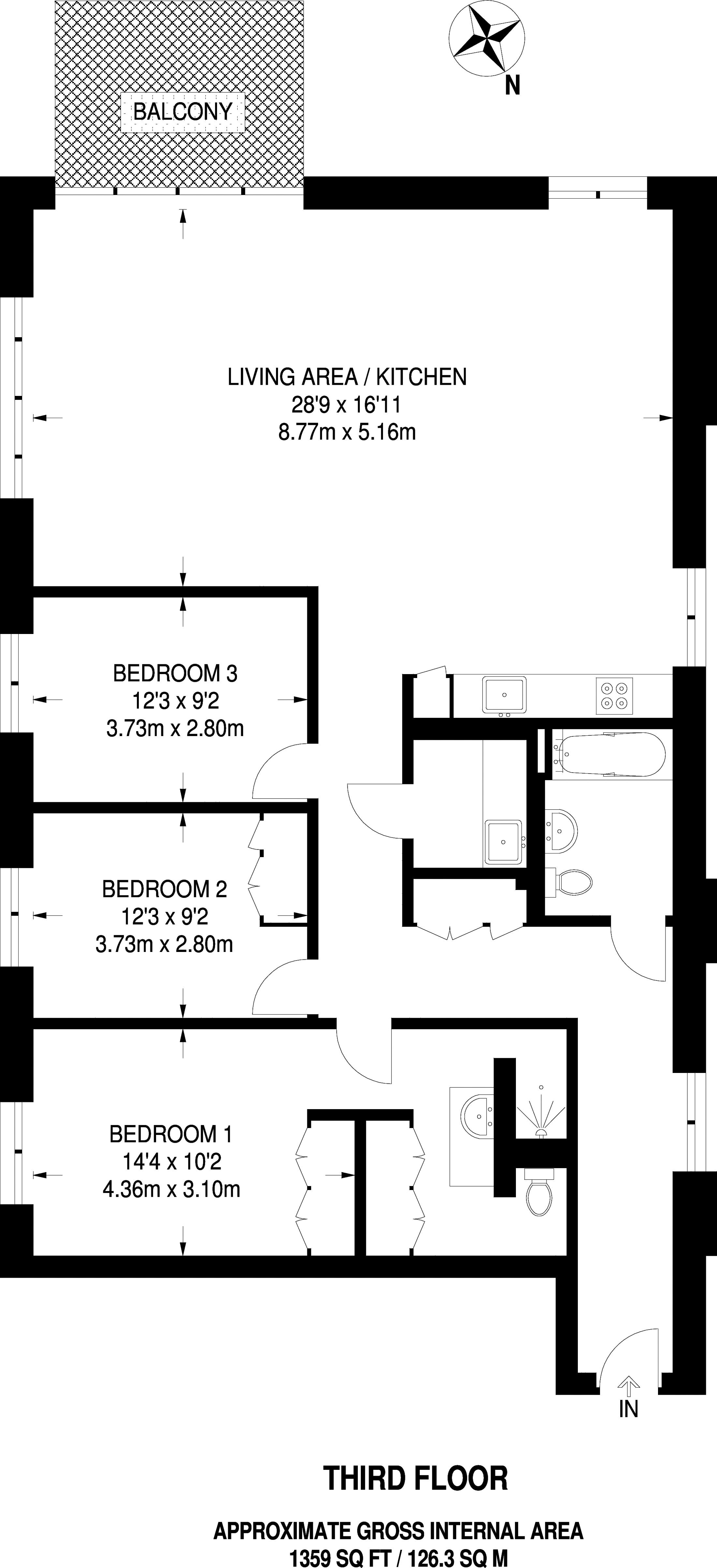 £885,000 North West aspect. 3rd floor flat | 3 Beds | 1,068 Sq Ft99 Sq M | ||