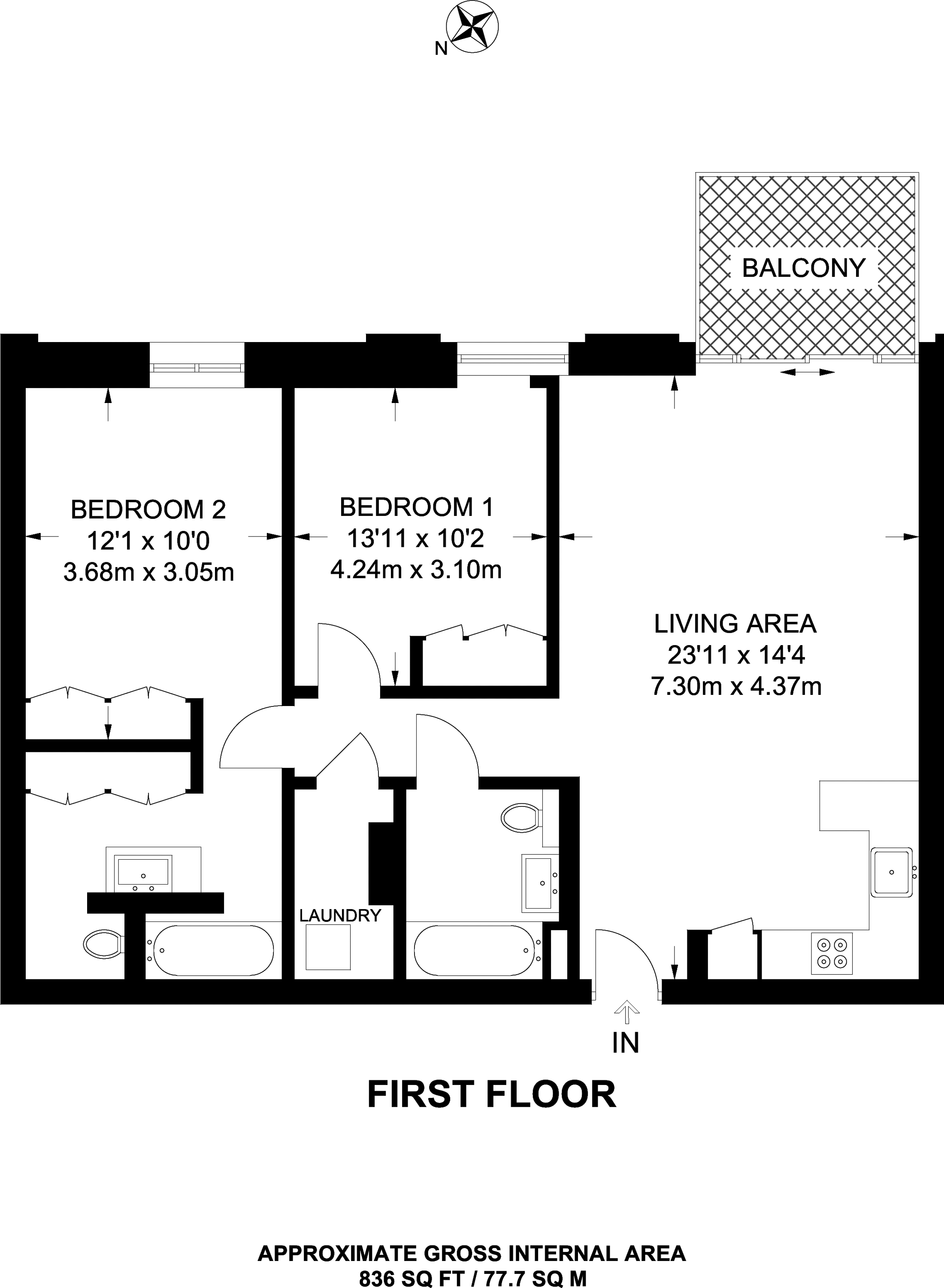 £699,950 South East aspect. 1st floor flat | 2 Beds | 836 Sq Ft78 Sq M | ||