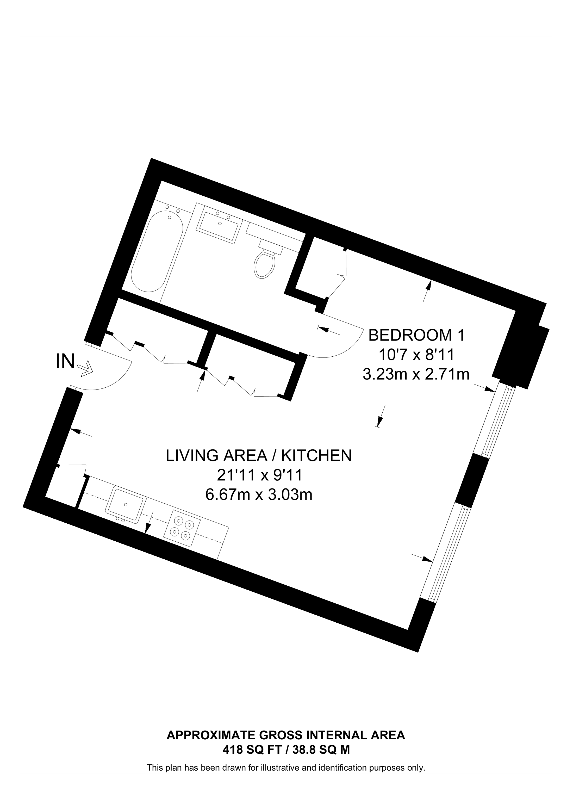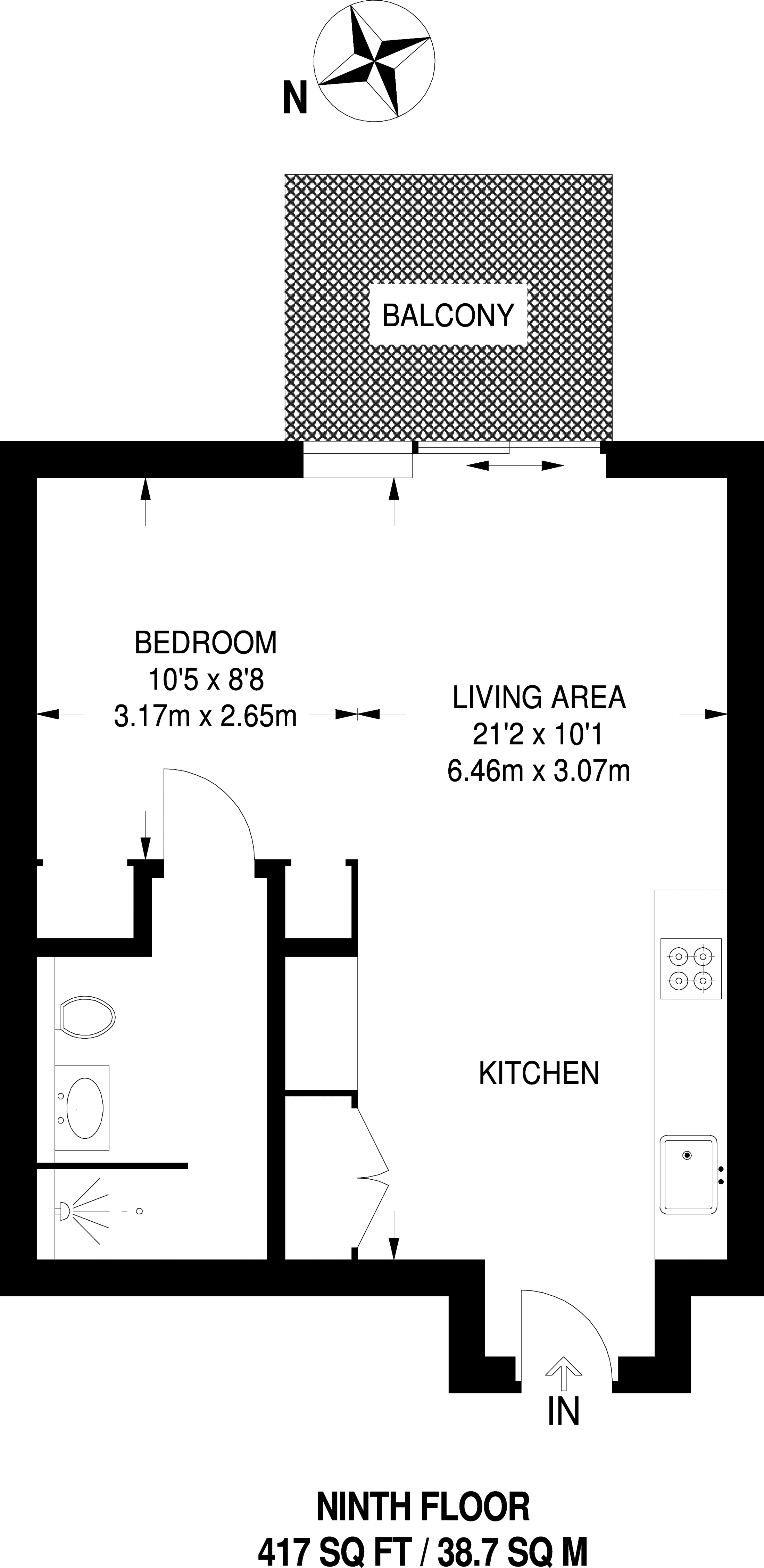 £464,500 South East aspect. 9th floor flat | Studio | 417 Sq Ft39 Sq M | ||