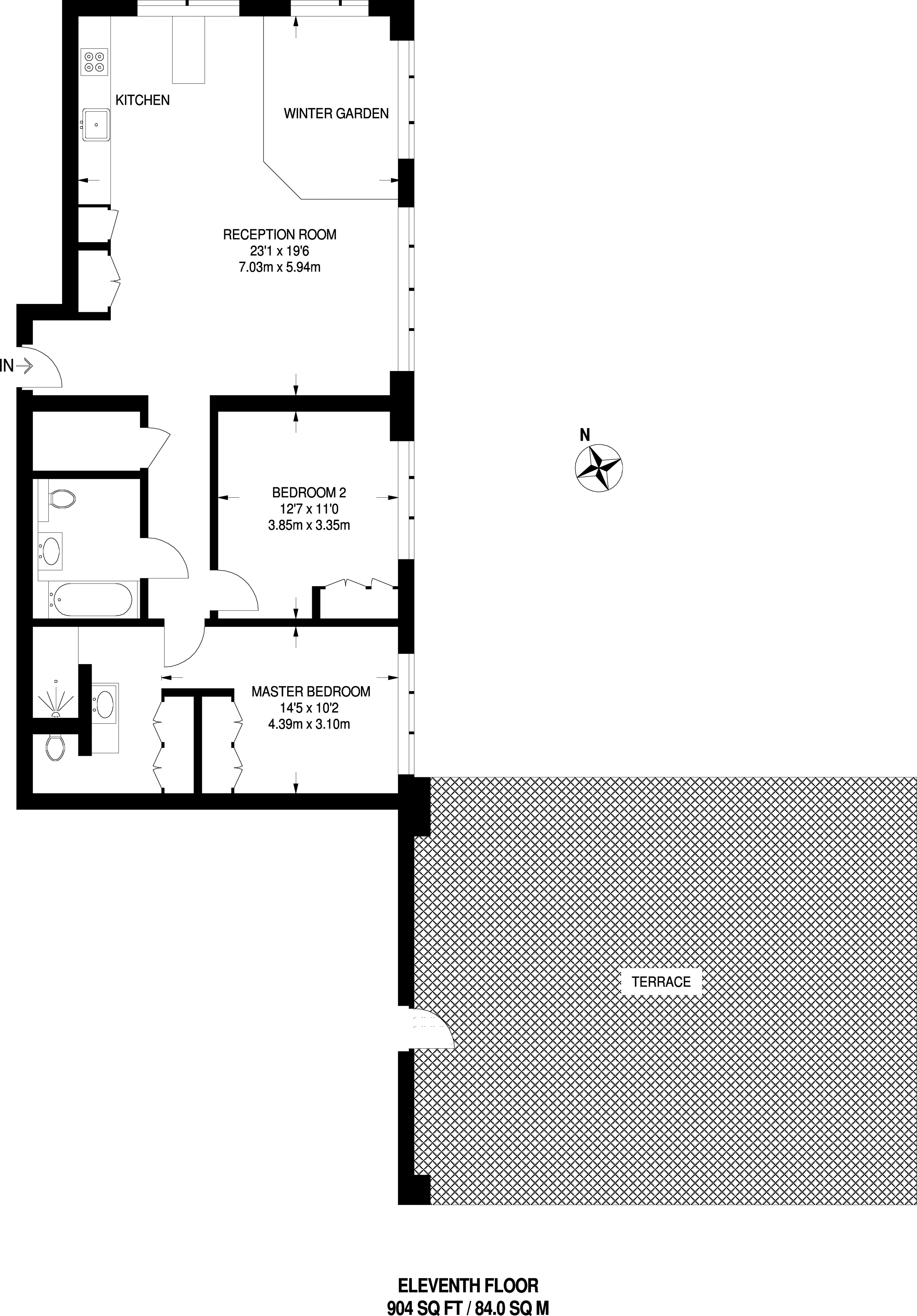 £950,000 South West aspect. 11th floor flat | 2 Beds | 904 Sq Ft84 Sq M | ||