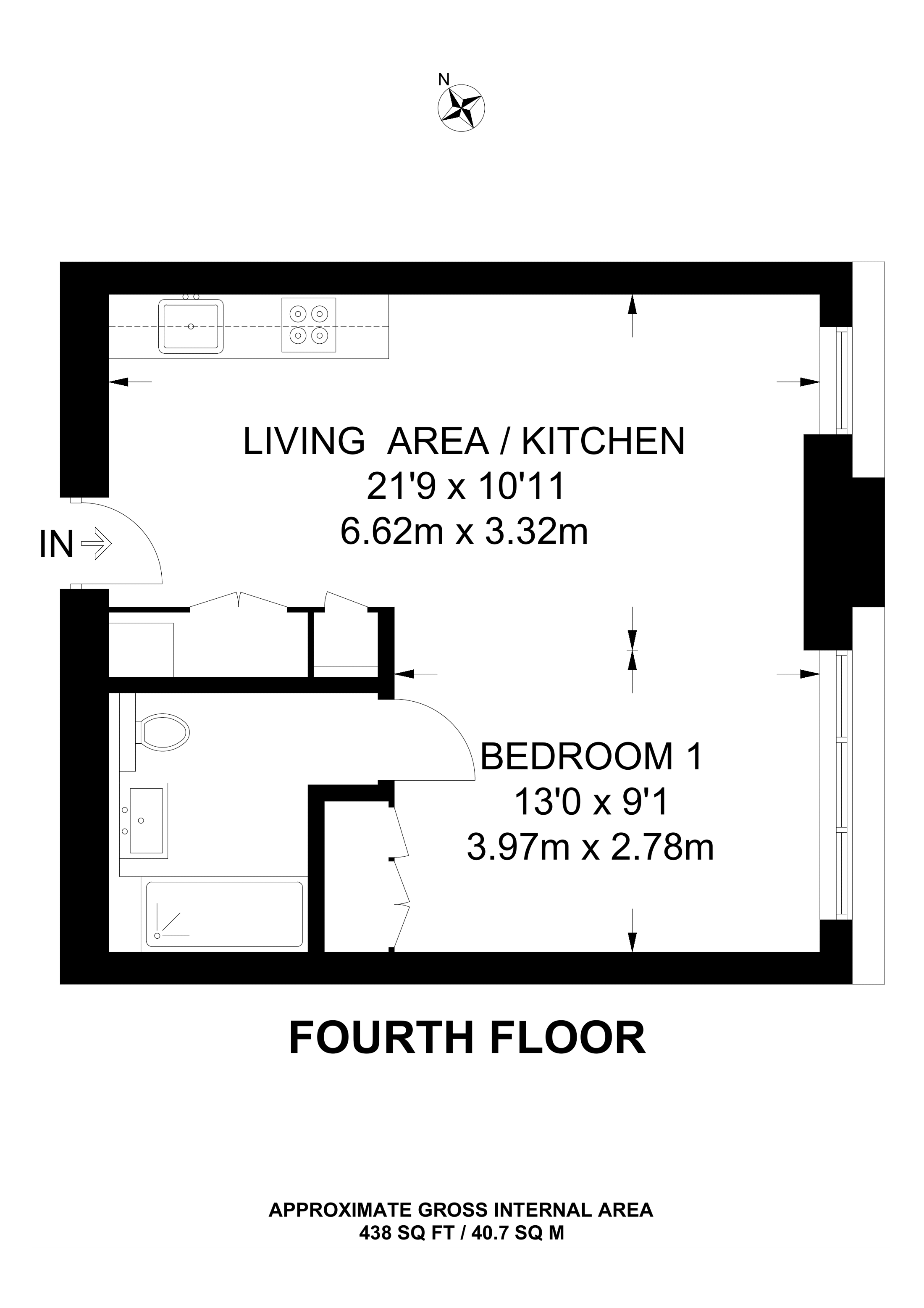 £419,000 East aspect. 4th floor flat | Studio | 438 Sq Ft41 Sq M | ||
