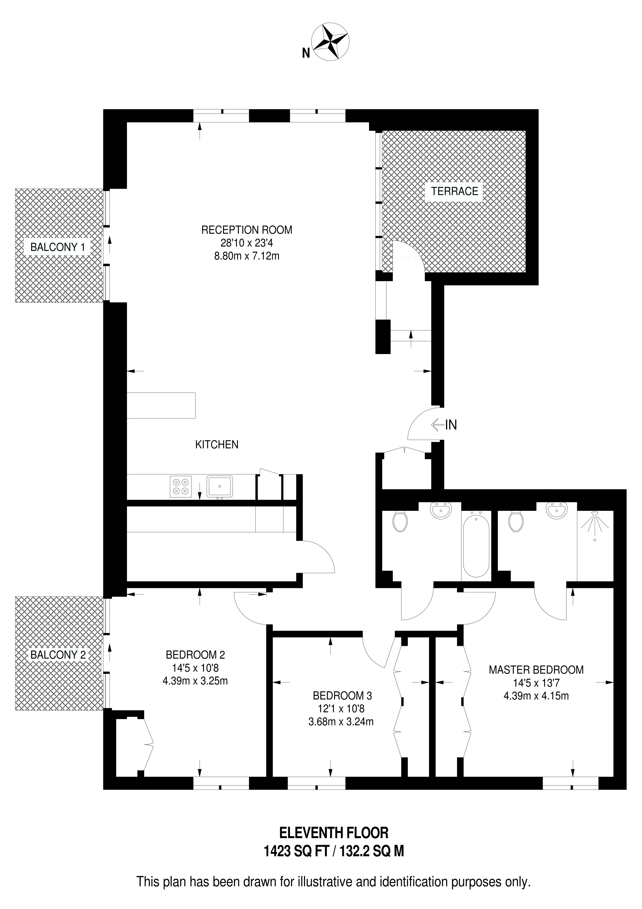 £1,990,900 South West aspect. 11th floor flat | 3 Beds | 1,423 Sq Ft132 Sq M |