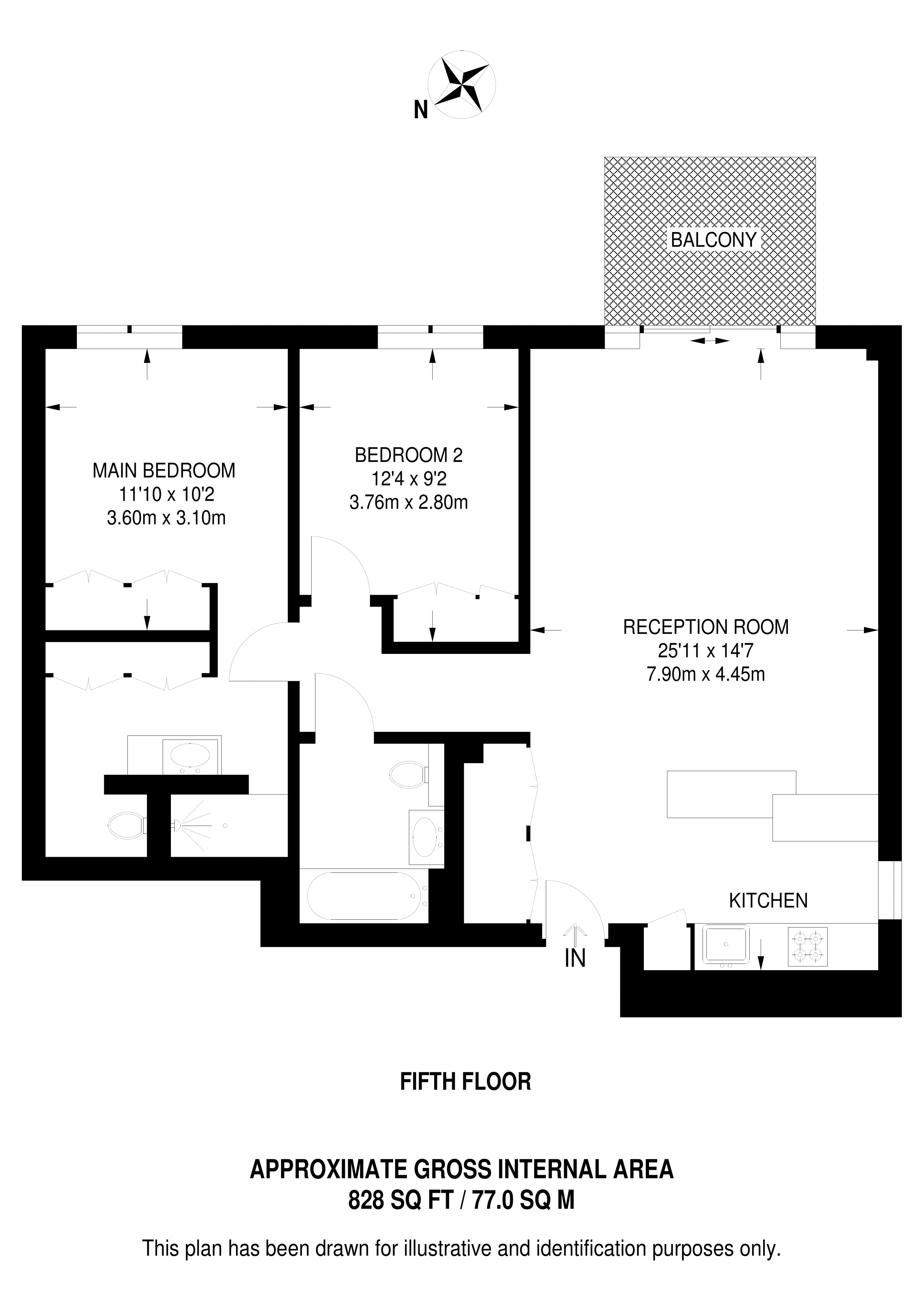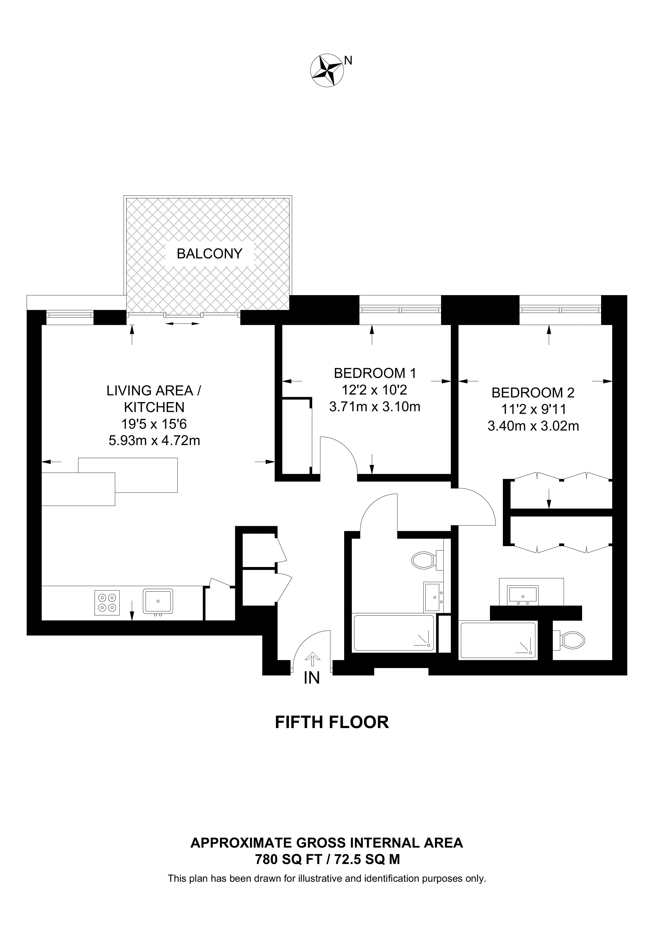 £585,600 West aspect. 5th floor flat | 2 Beds | 780 Sq Ft72 Sq M | ||
