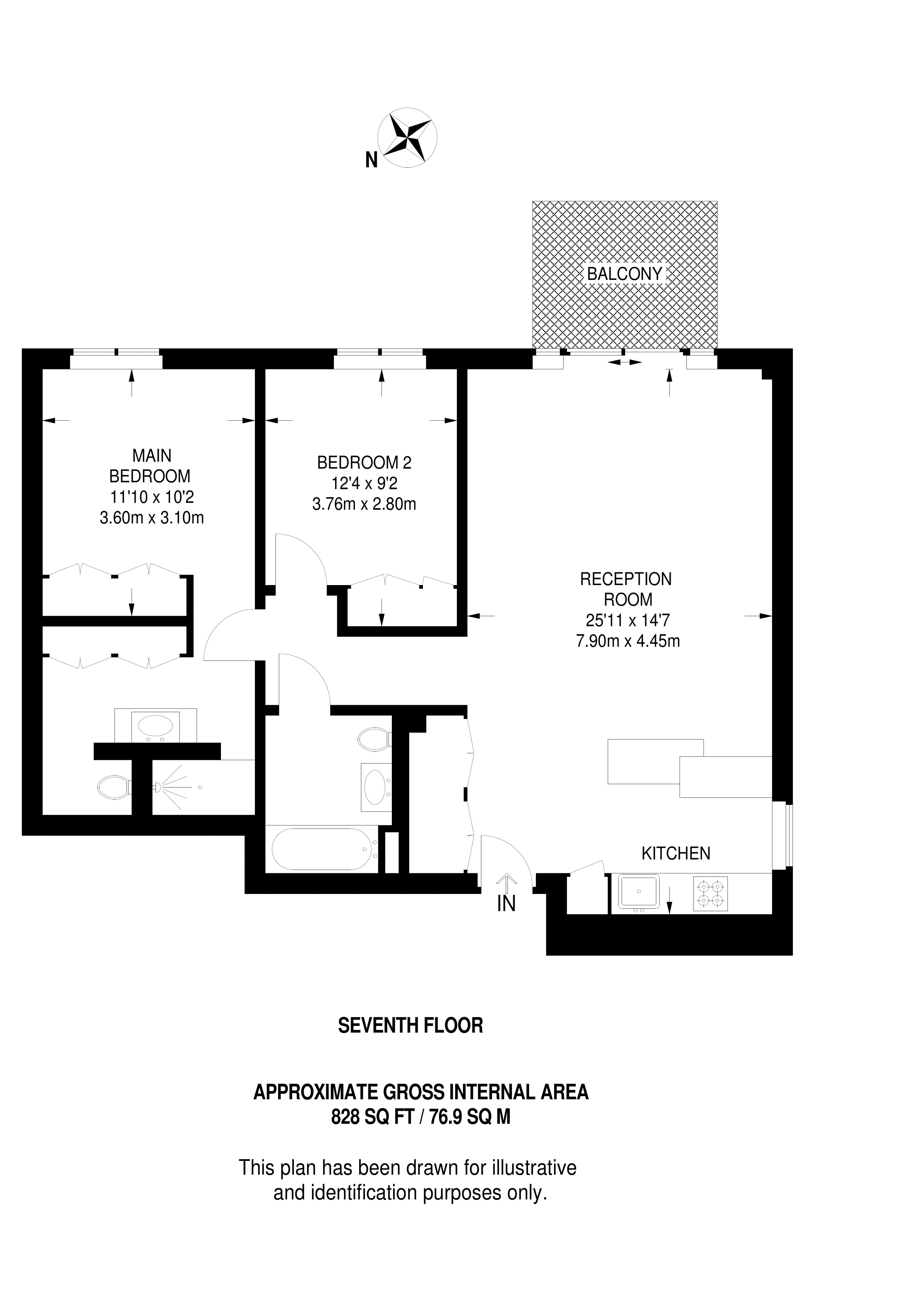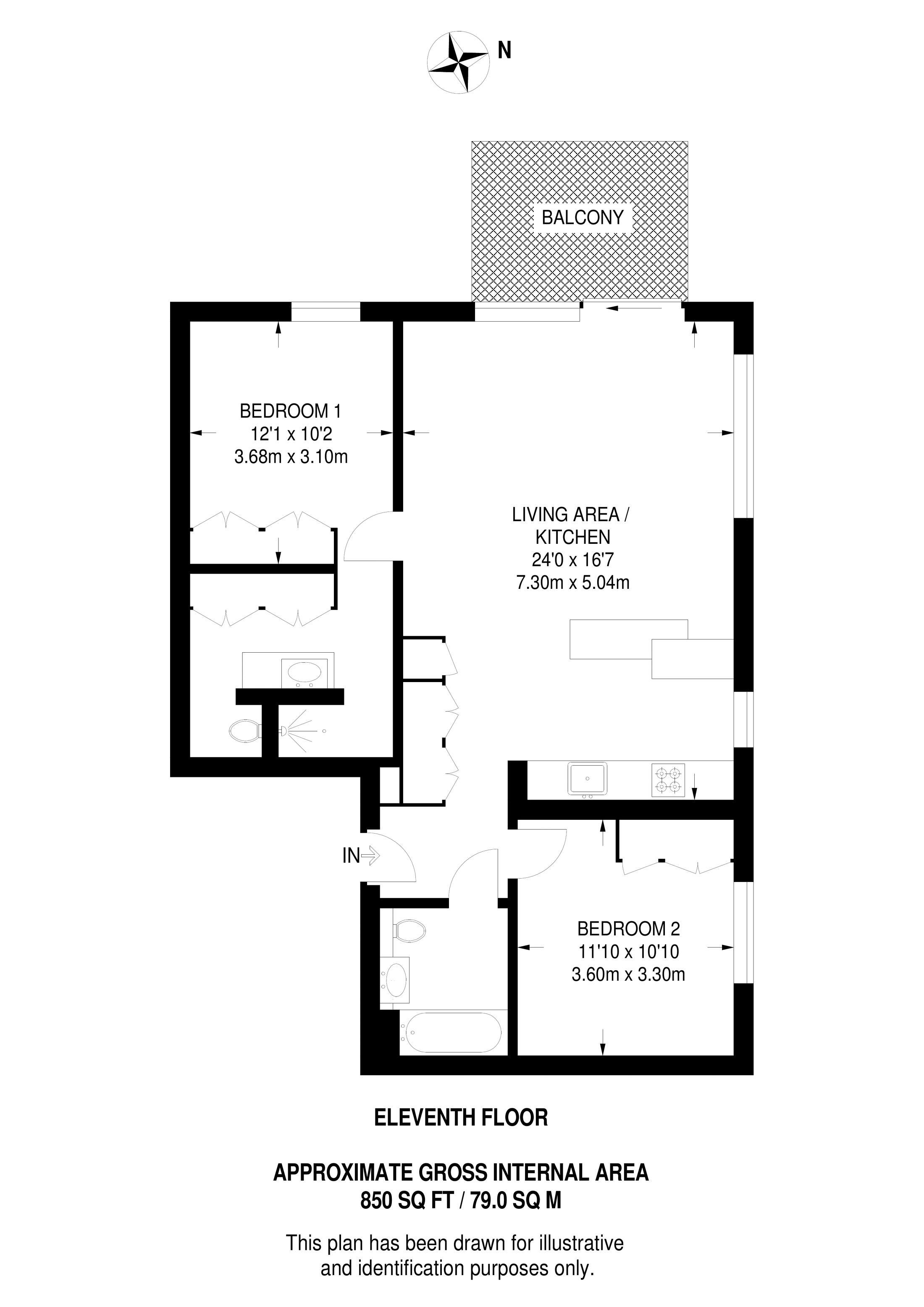 £789,500 South East aspect. 7th floor flat | 2 Beds | 828 Sq Ft77 Sq M | ||