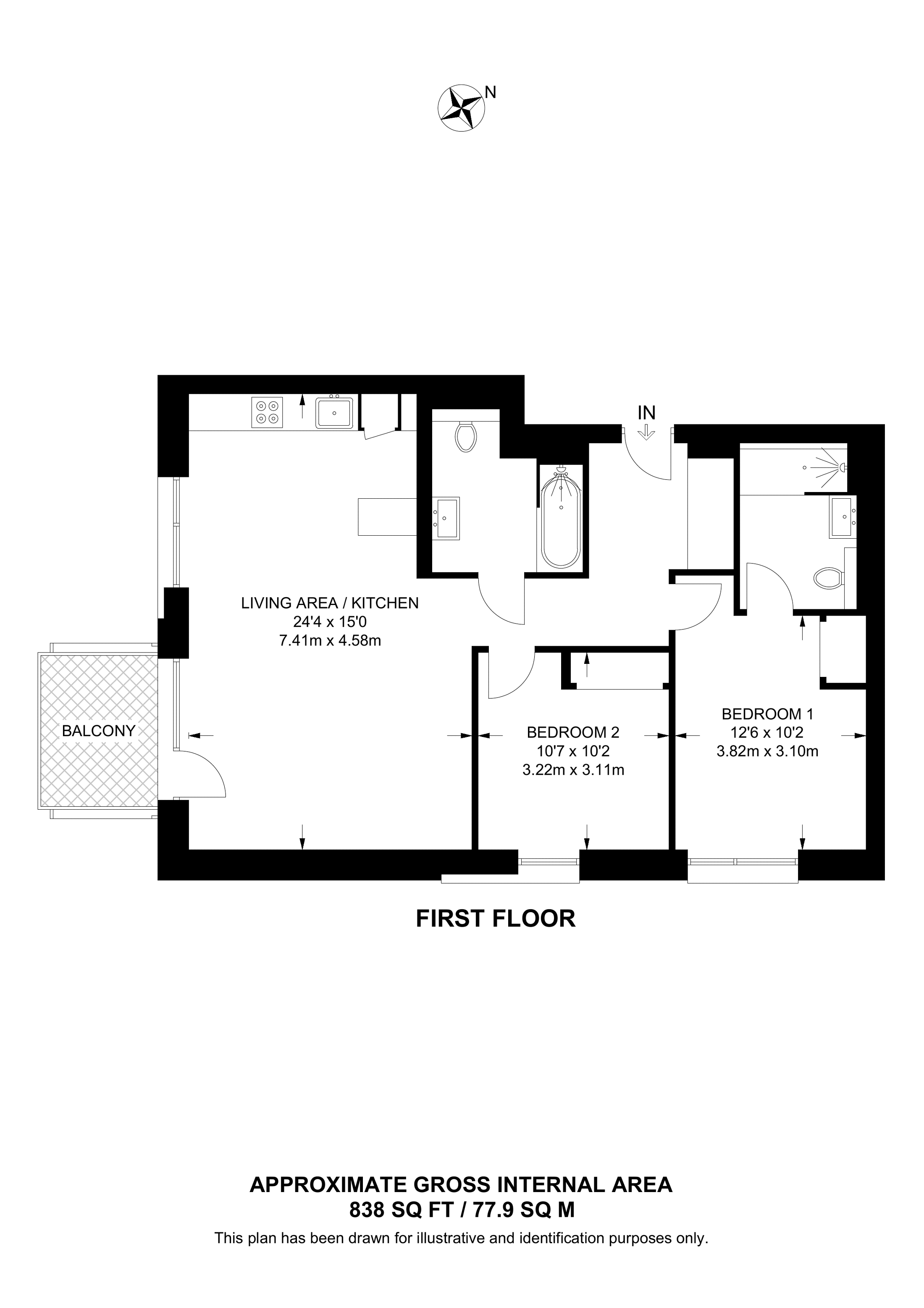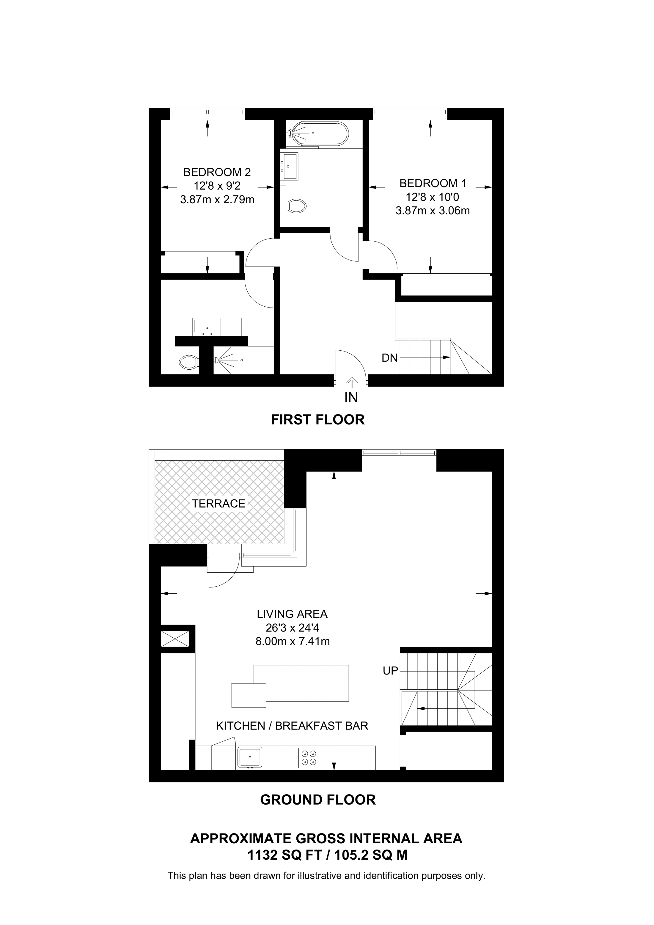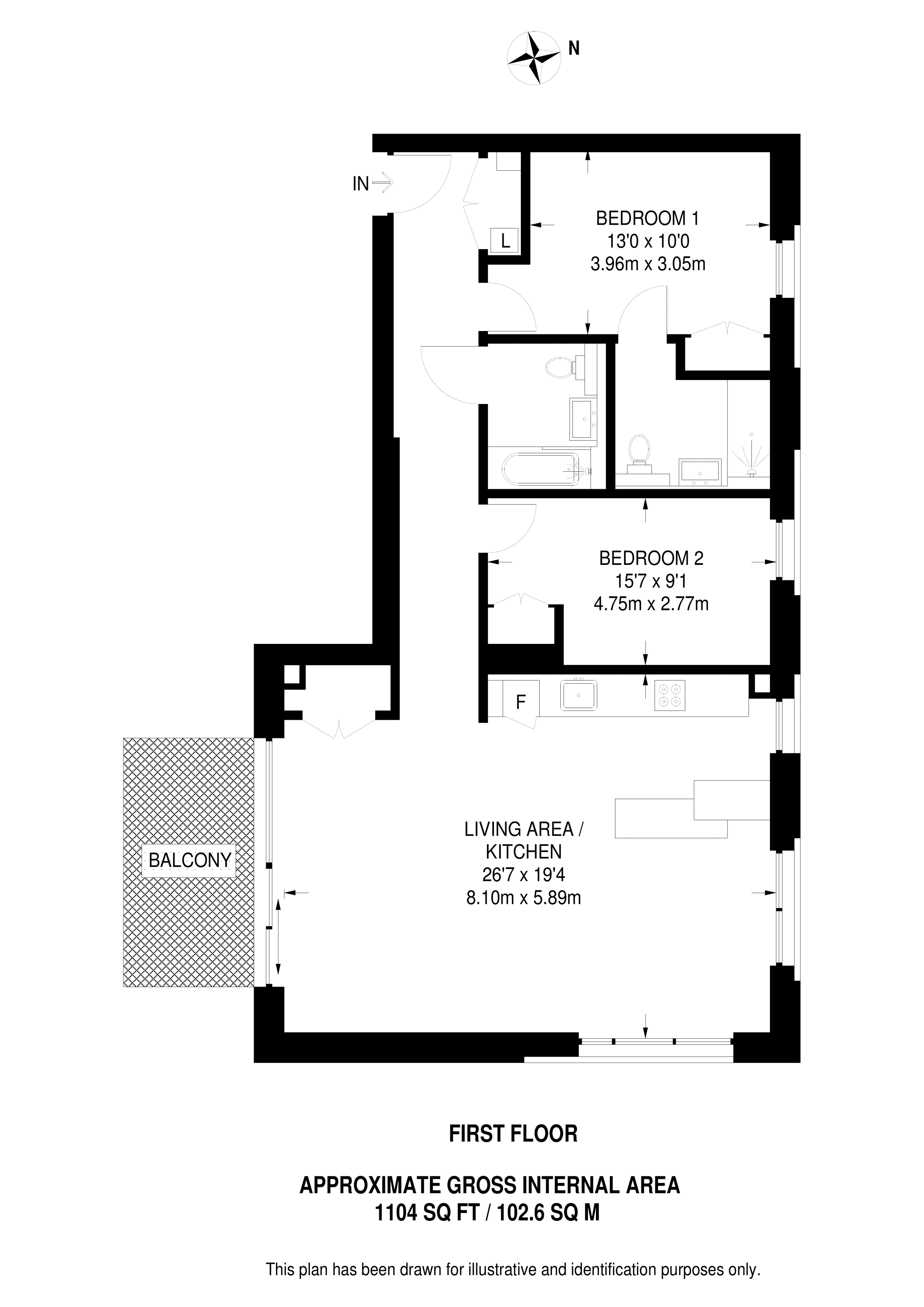 £830,000 South aspect. 1st floor flat | 2 Beds | 1,104 Sq Ft103 Sq M | ||