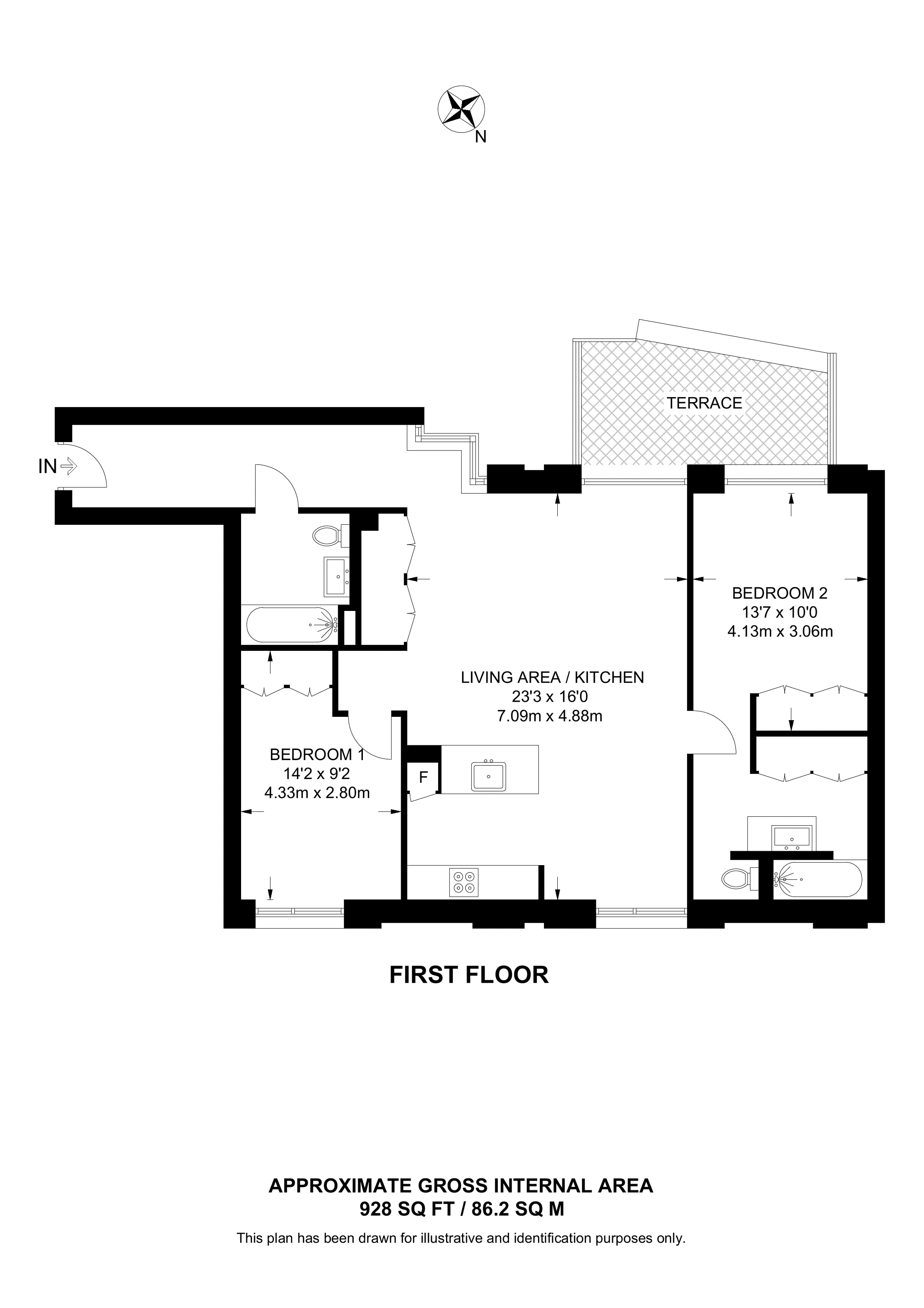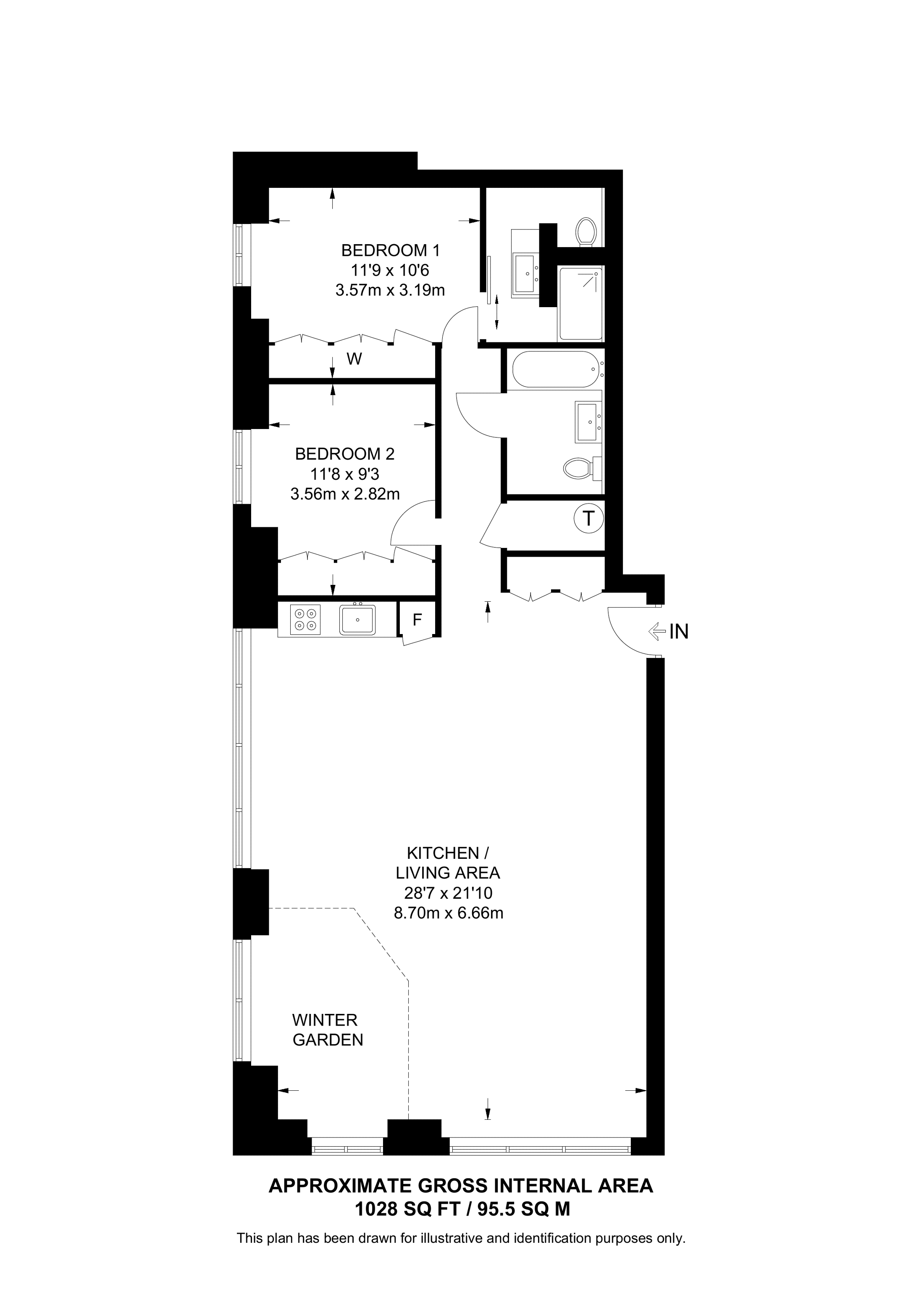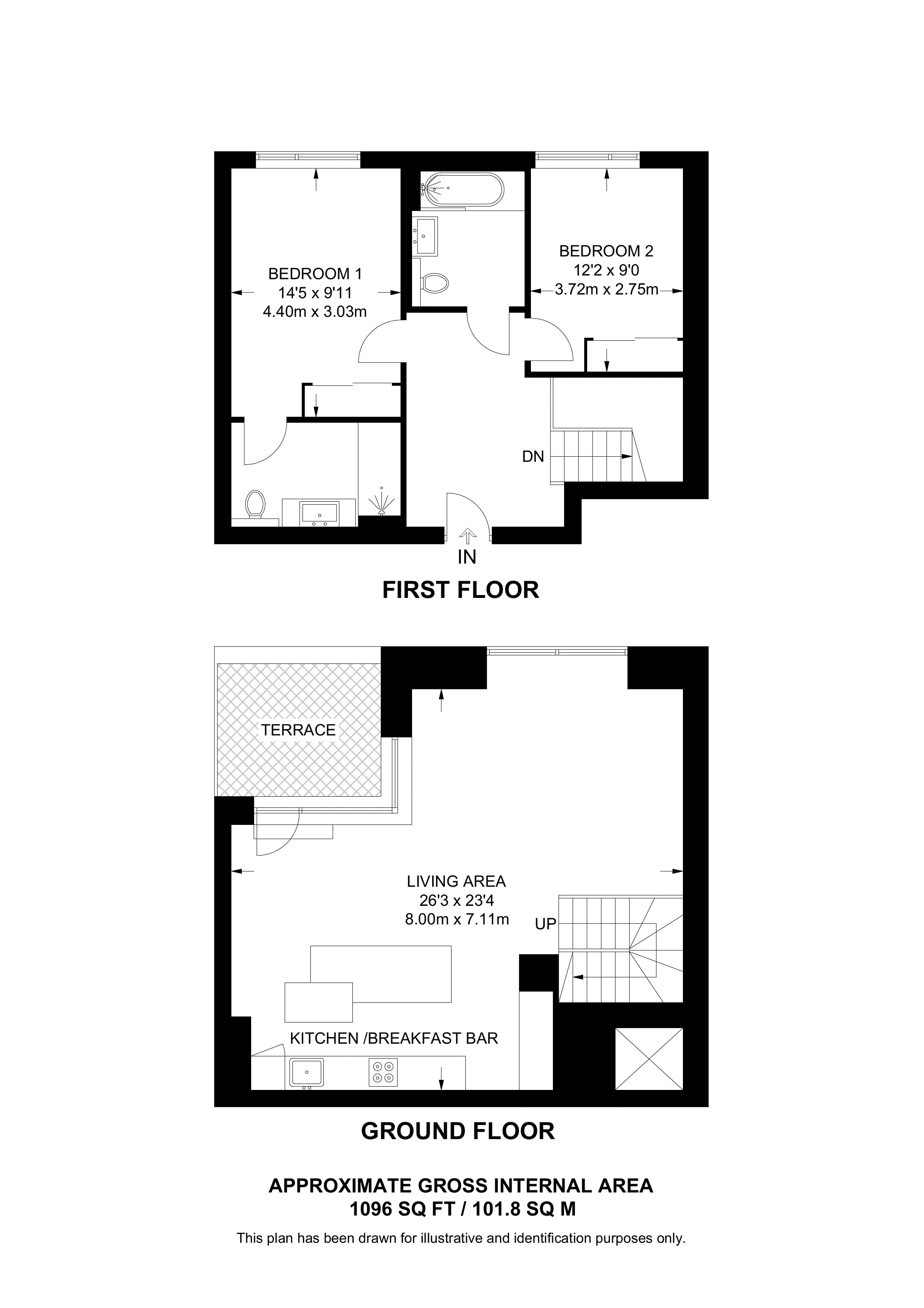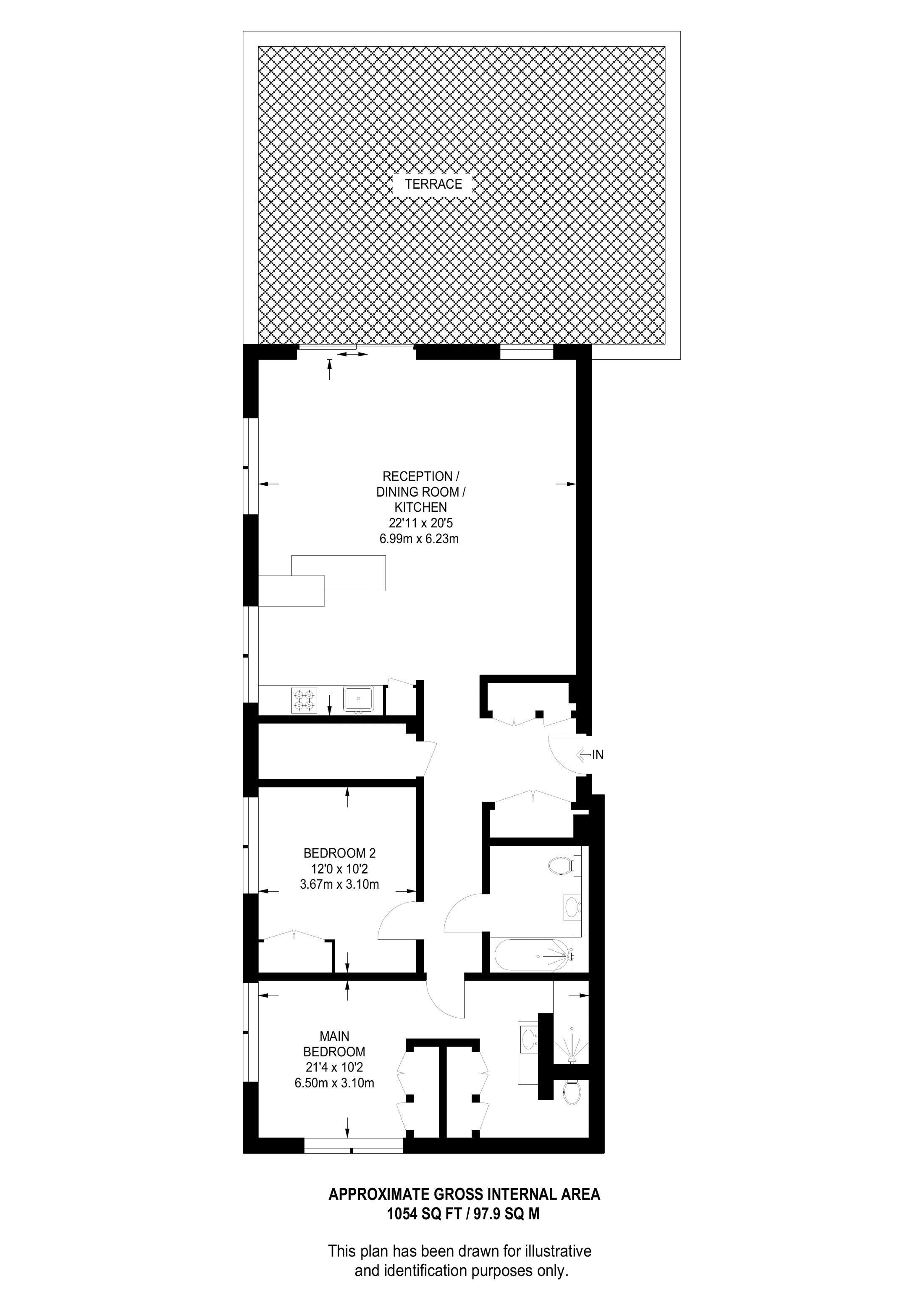 £830,000 South aspect. 1st floor flat | 2 Beds | 1,104 Sq Ft103 Sq M | ||