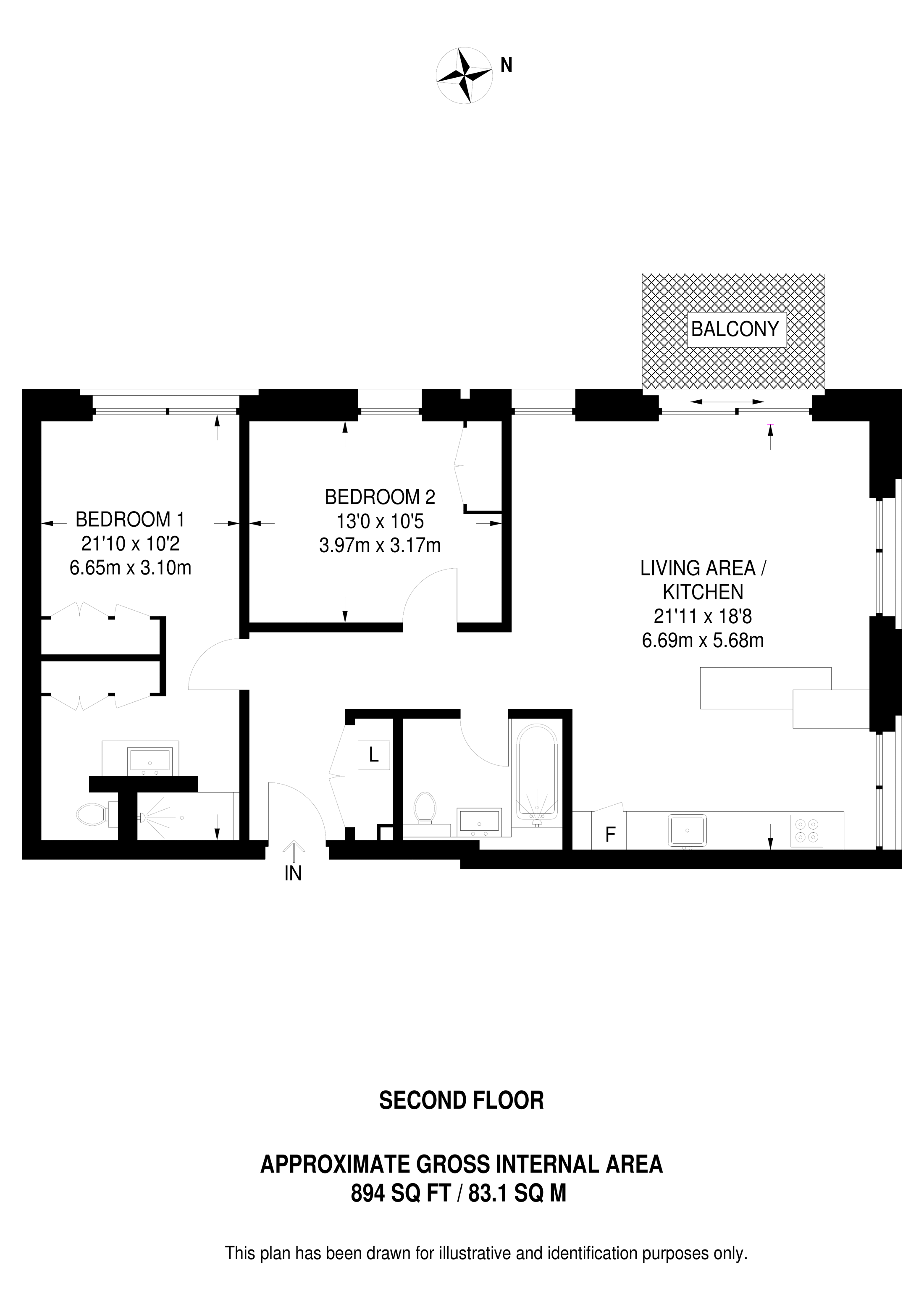 £742,500 North West aspect. 2nd floor flat | 2 Beds | 894 Sq Ft83 Sq M | ||