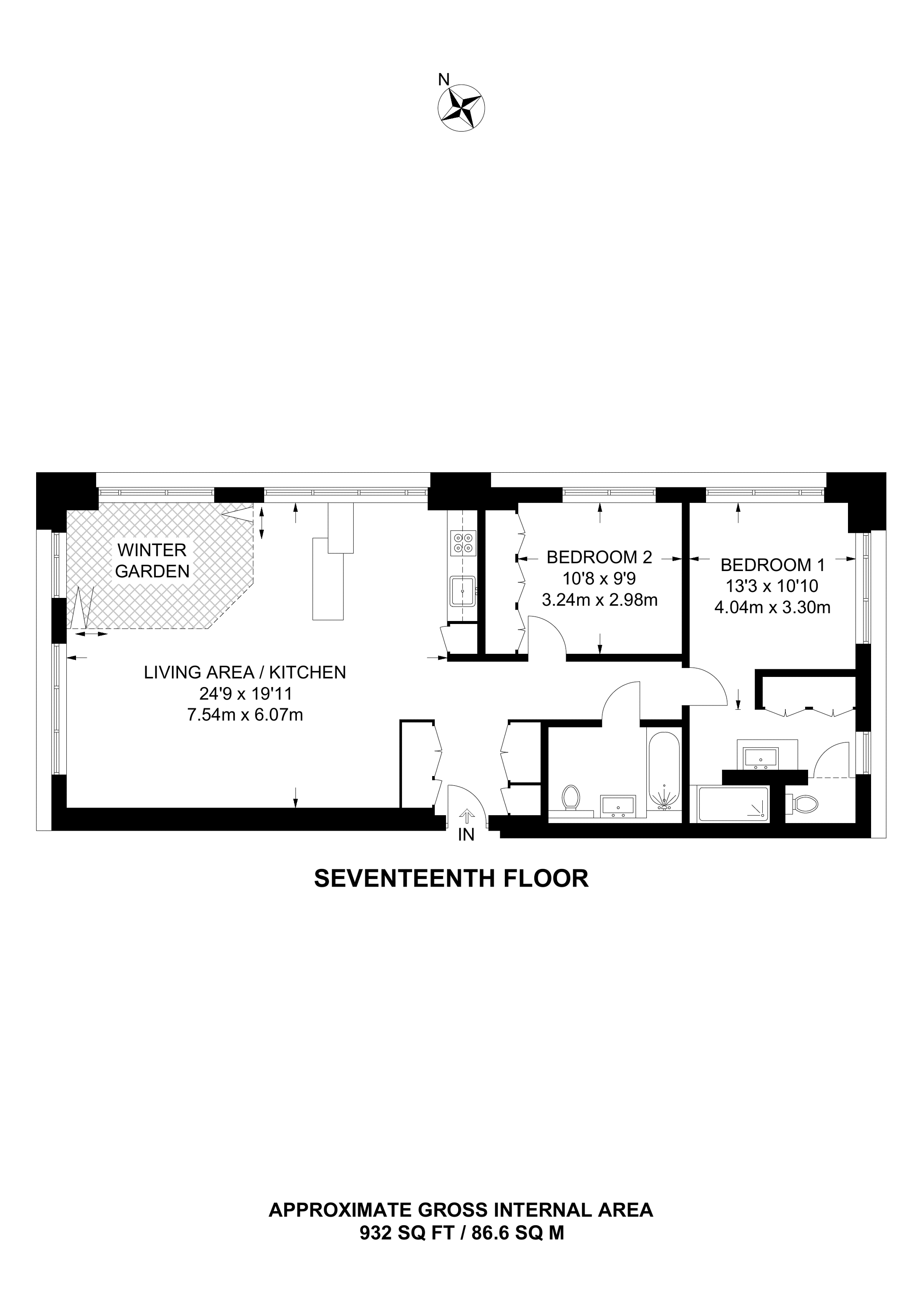 £857,000 North aspect. 17th floor flat | 2 Beds | 932 Sq Ft87 Sq M | ||