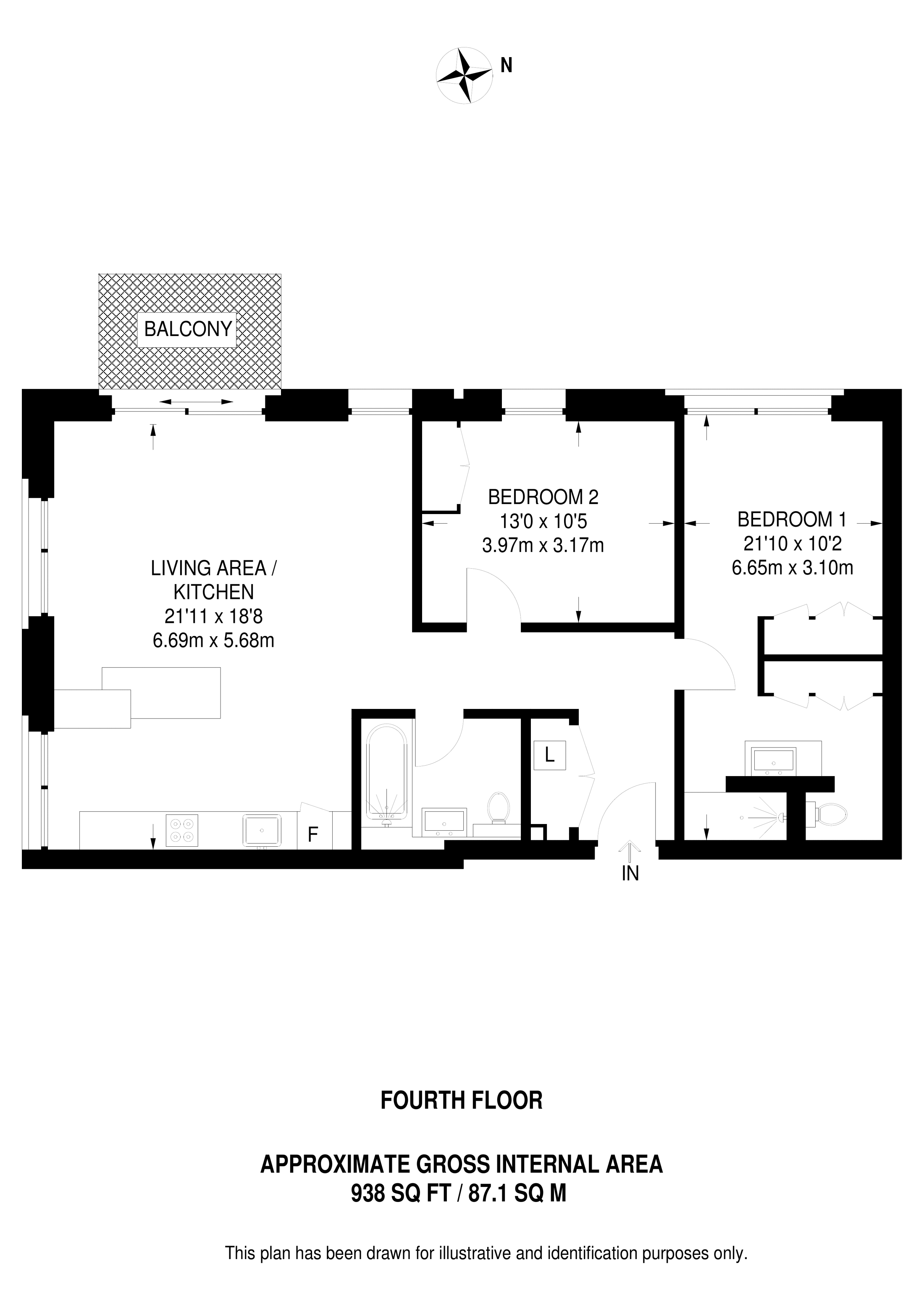 £807,500 West aspect. 4th floor flat | 2 Beds | 938 Sq Ft87 Sq M | ||