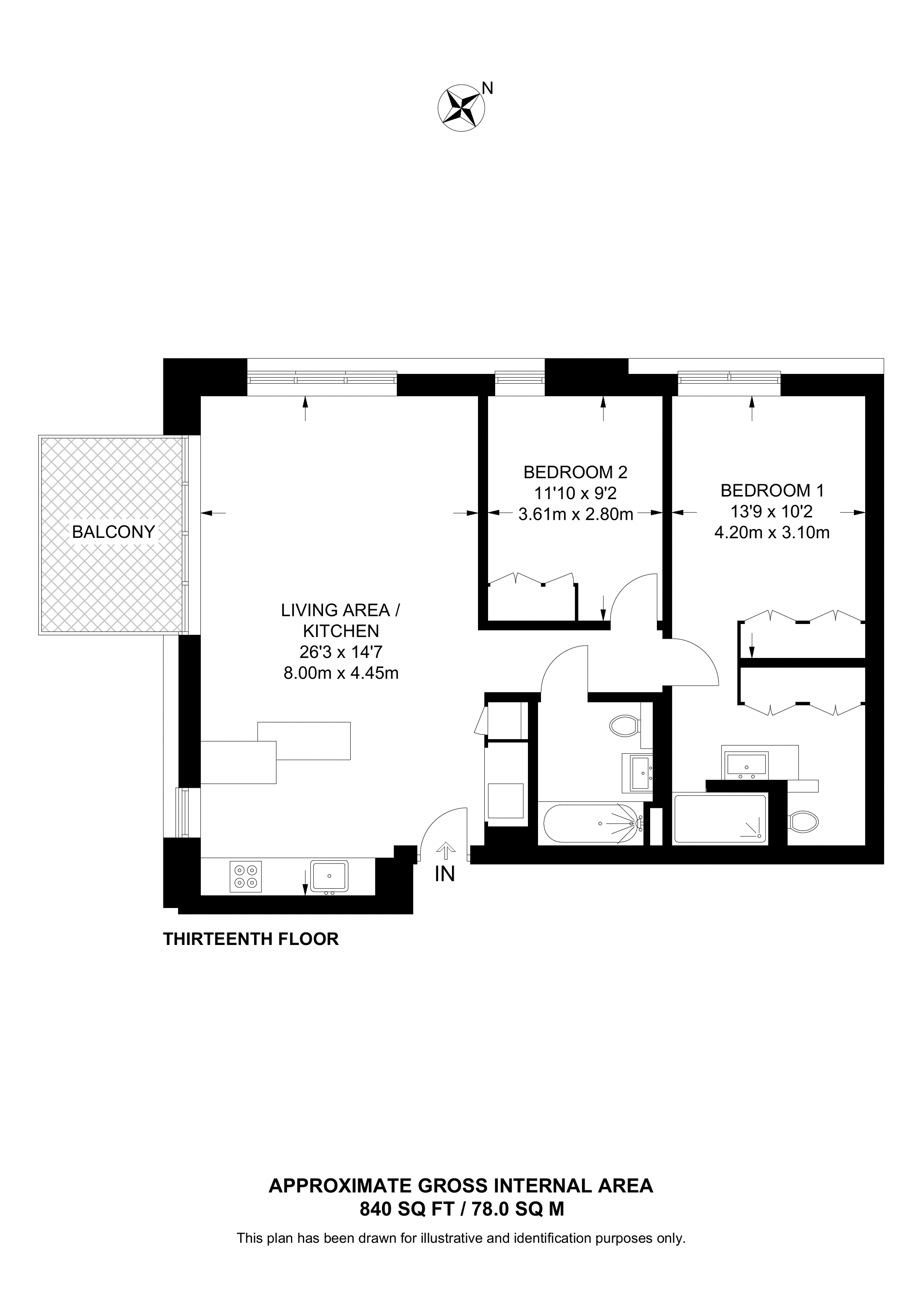 £880,000 South aspect. 13th floor flat | 2 Beds | 907 Sq Ft84 Sq M | ||
