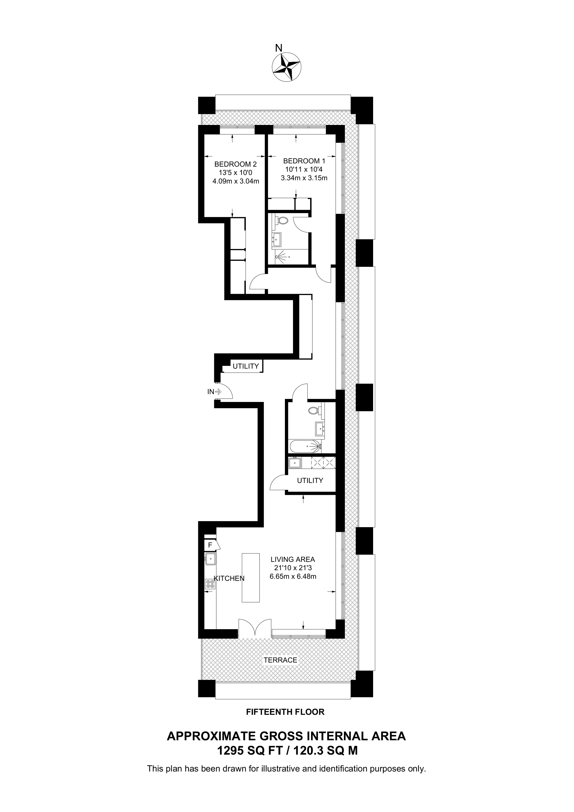 £1,195,000 South aspect. 15th floor flat | 2 Beds | 1,295 Sq Ft120 Sq M | ||