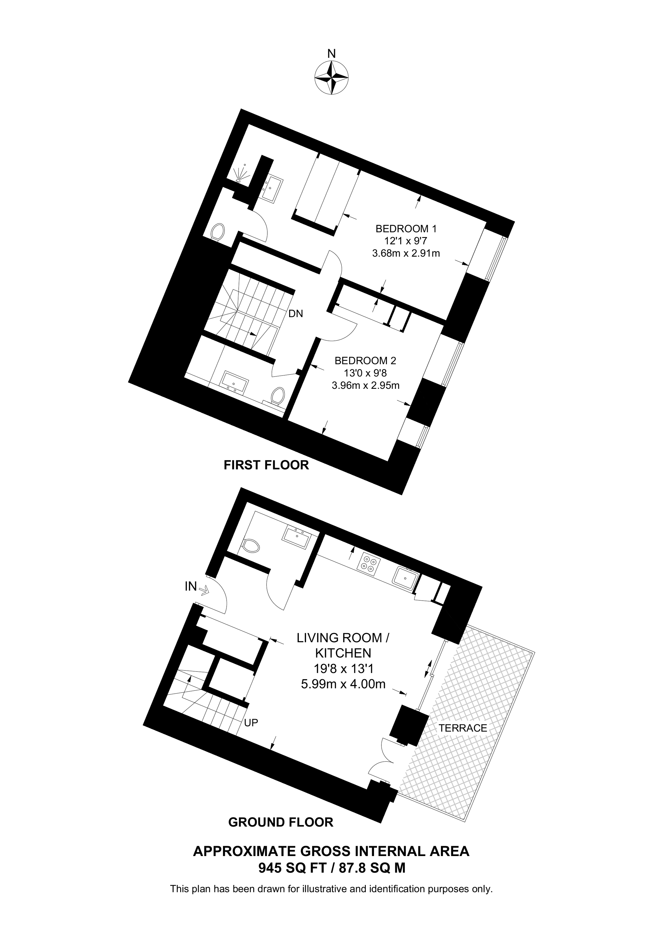 £755,000 East aspect. Raised Ground floor flat | 2 Beds | 945 Sq Ft88 Sq M | ||