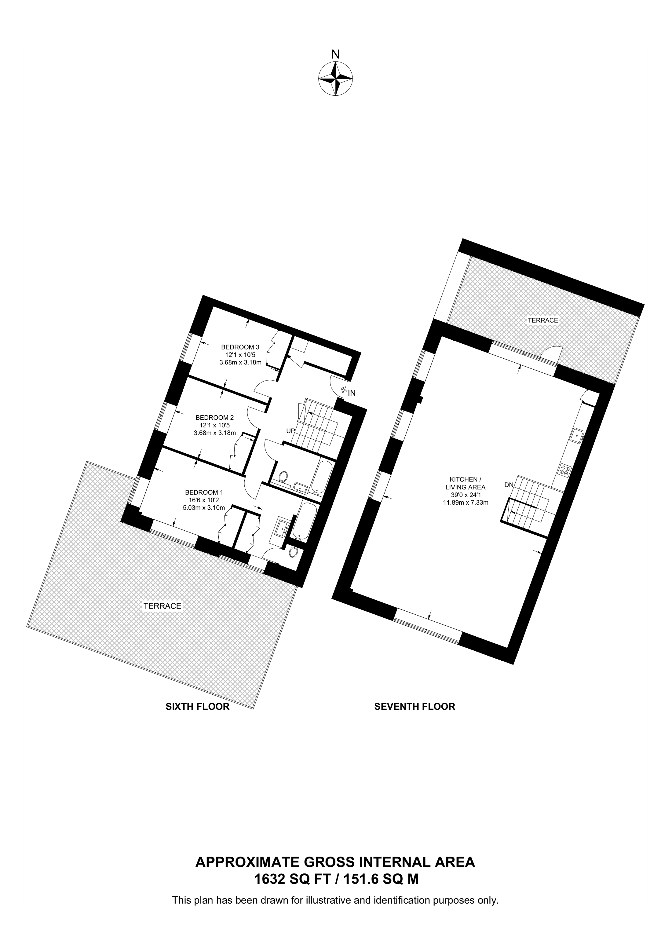 £1,499,000 South aspect. 6th floor flat | 3 Beds | 1,632 Sq Ft152 Sq M | ||
