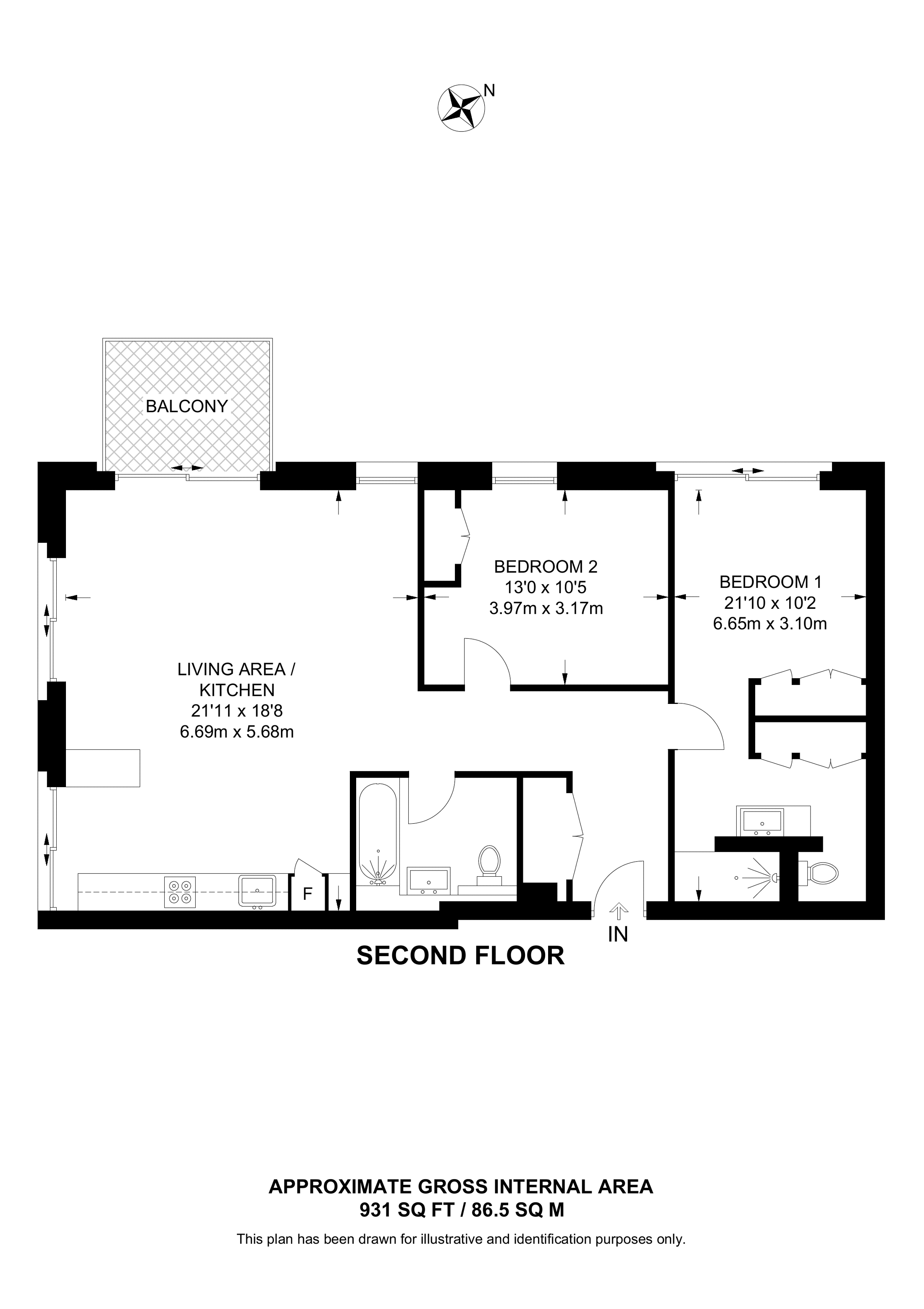 £732,500 South aspect. 2nd floor flat | 2 Beds | 931 Sq Ft86 Sq M | ||