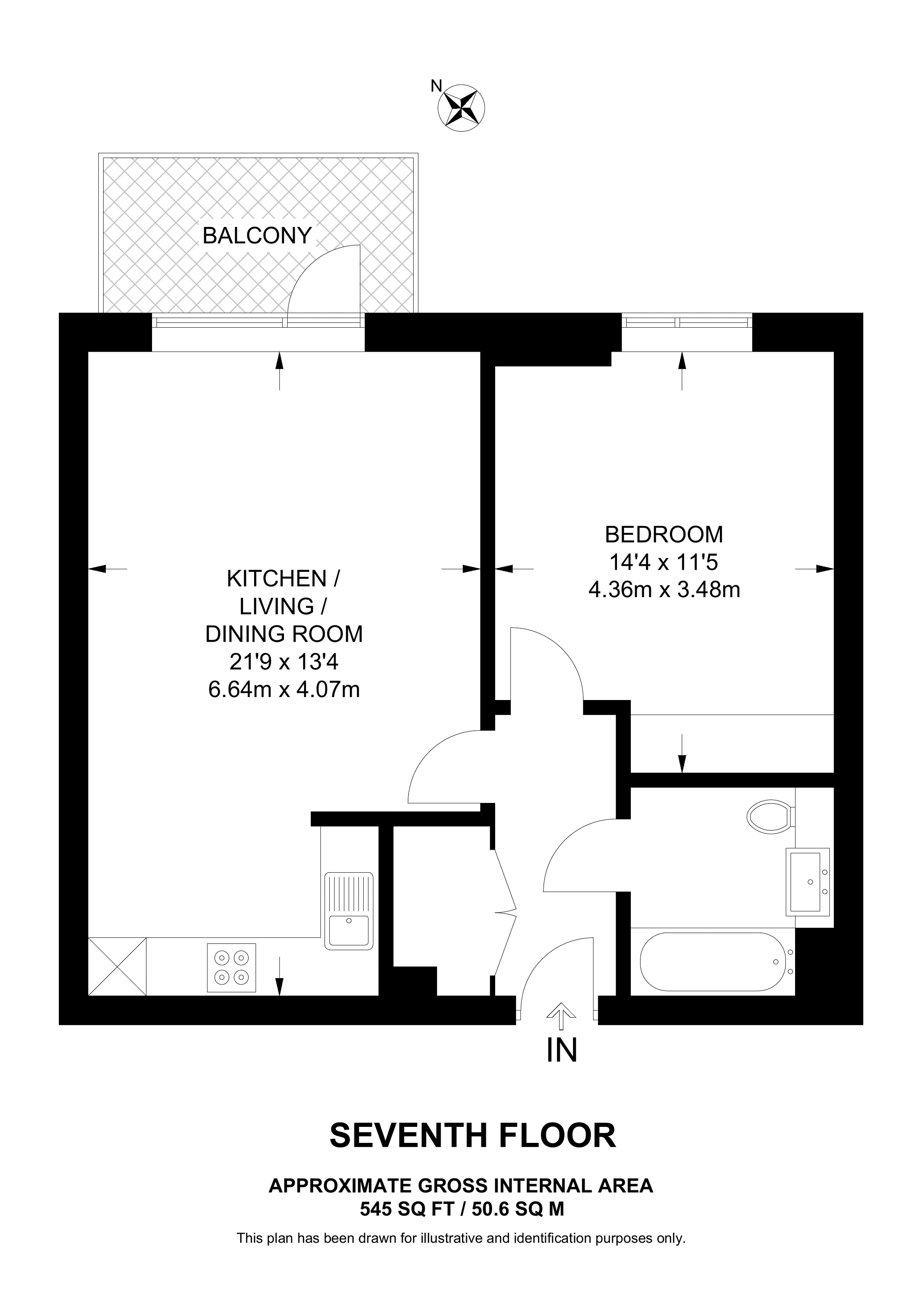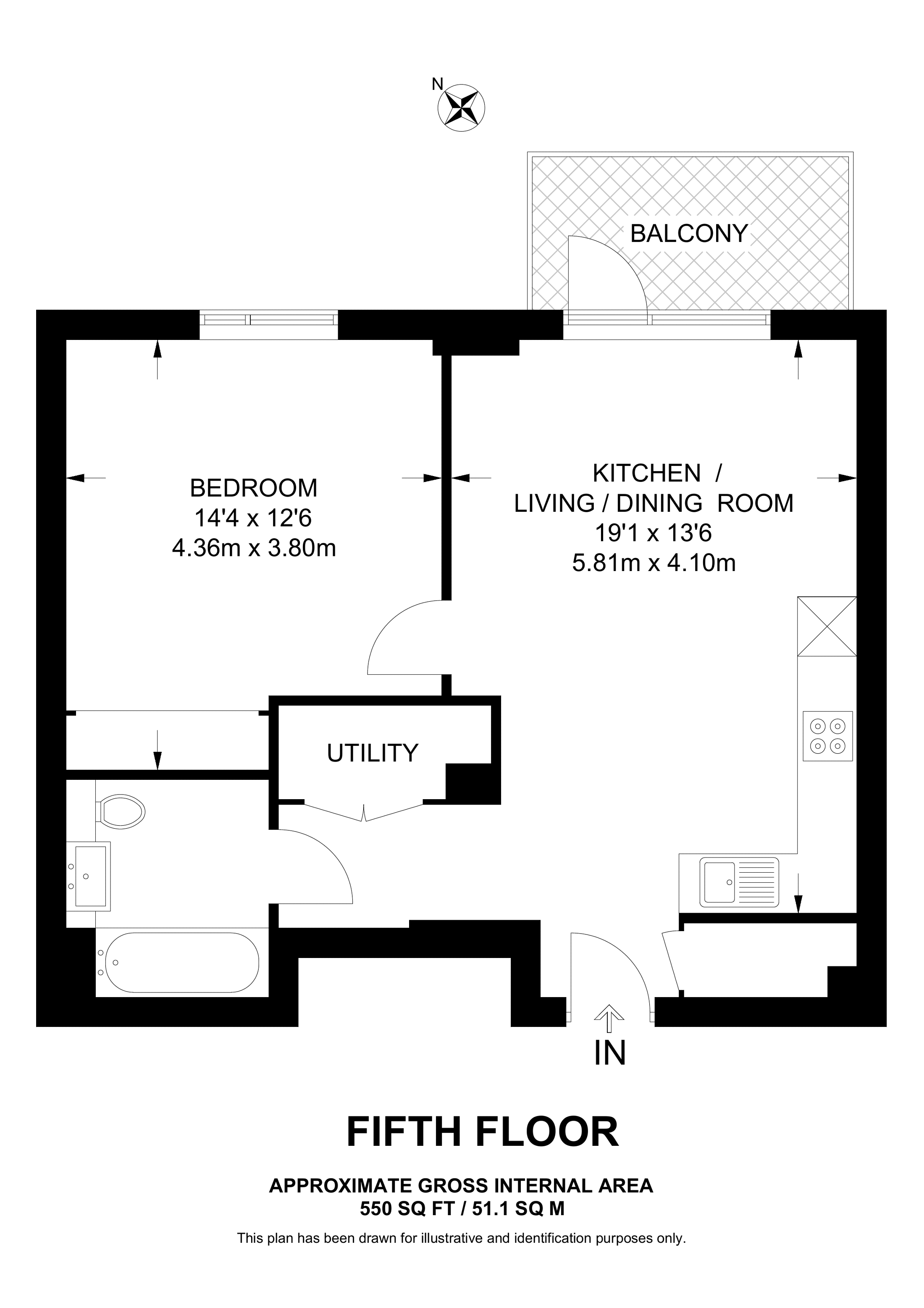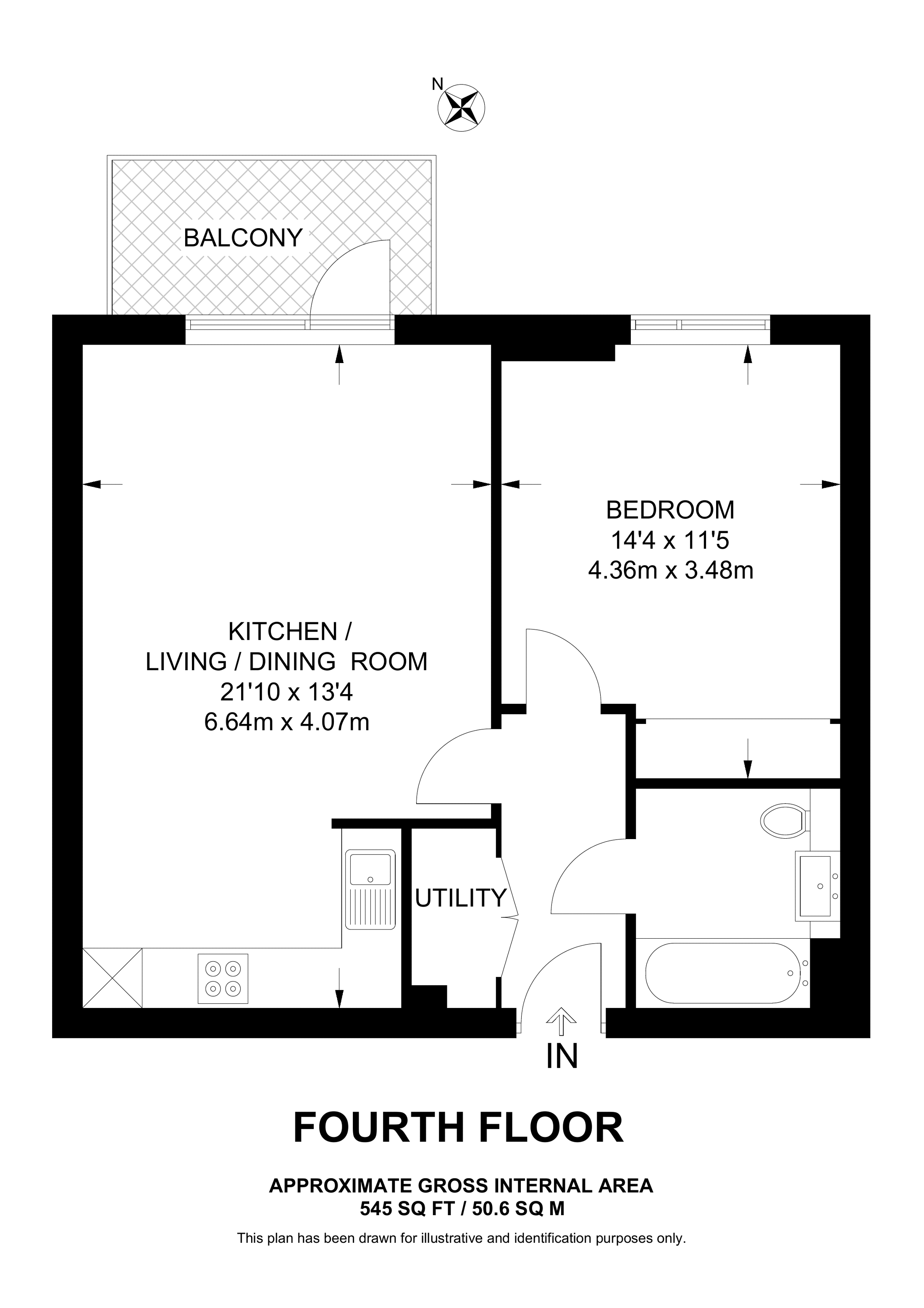£371,500 North West aspect. 4th floor flat | 1 Bed | 549 Sq Ft51 Sq M | ||