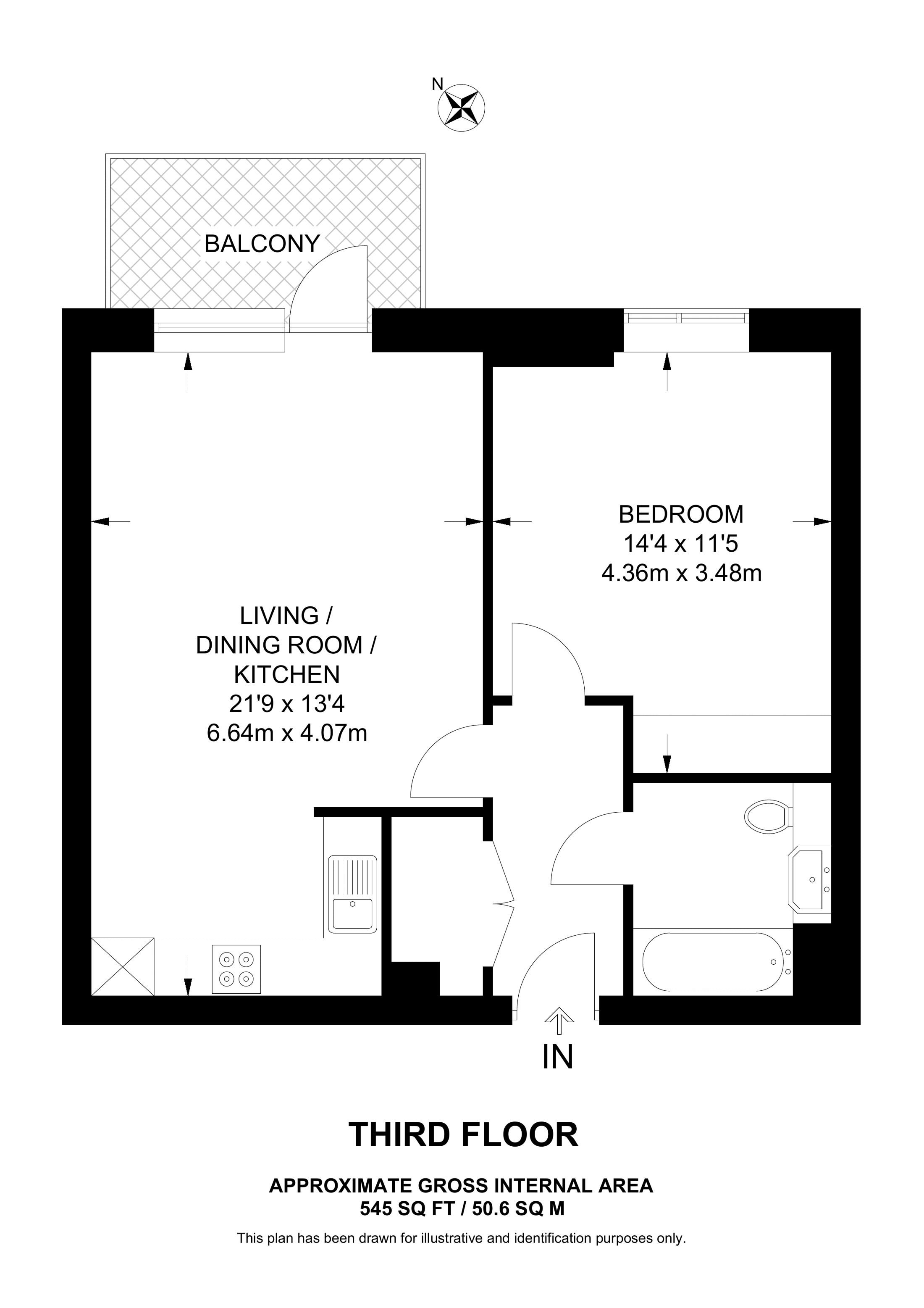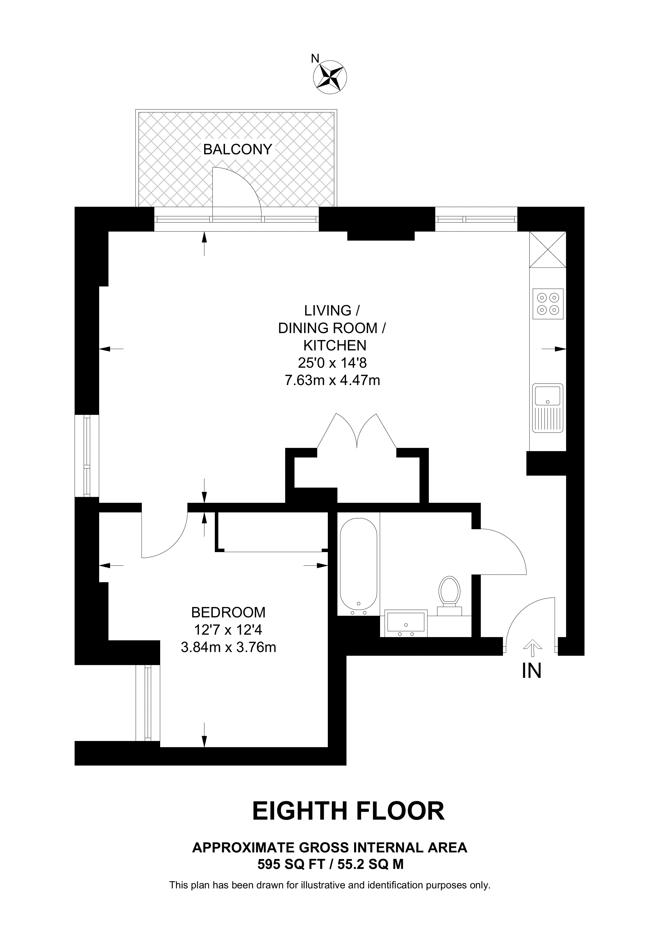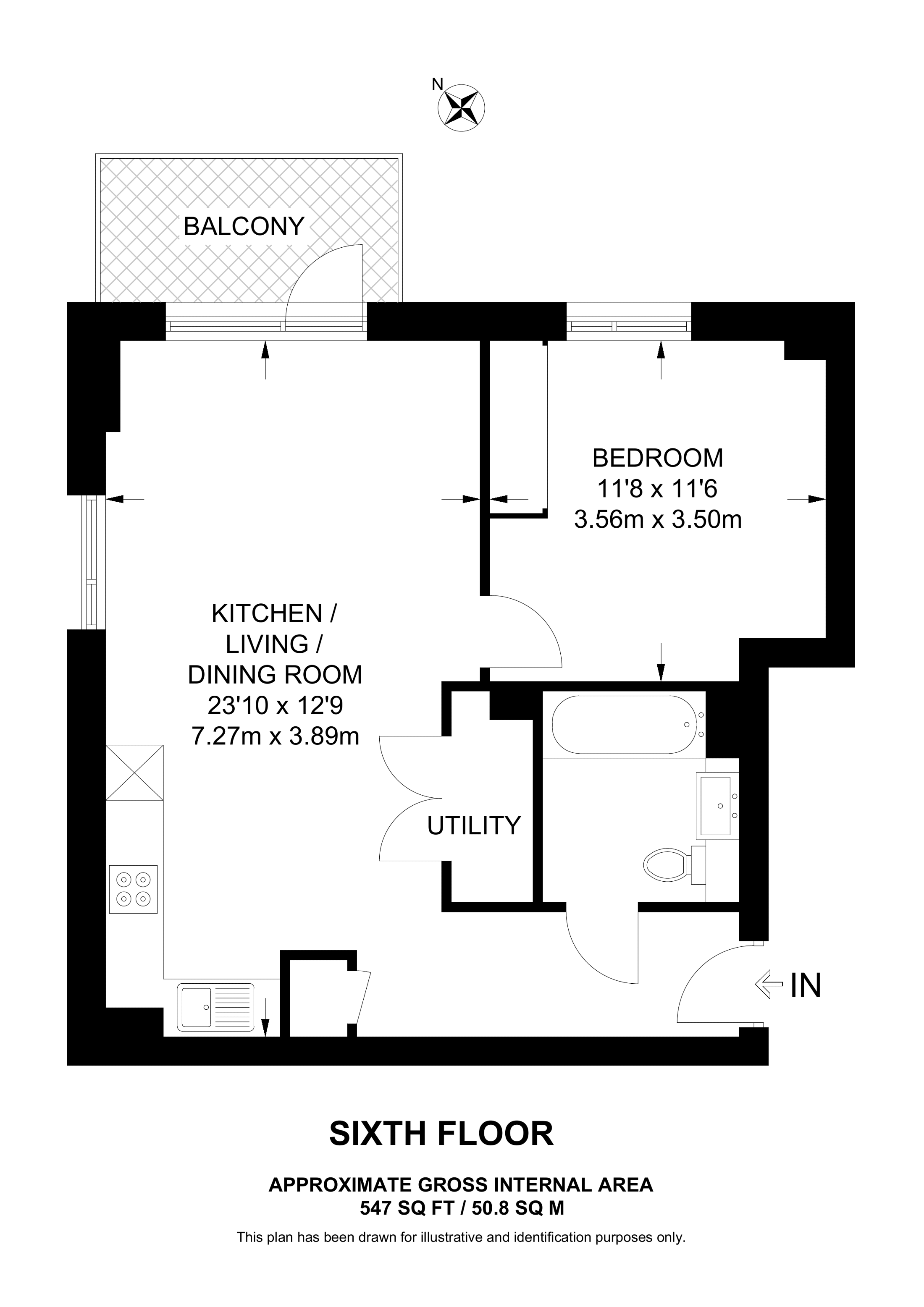 £371,500 North West aspect. 4th floor flat | 1 Bed | 549 Sq Ft51 Sq M | ||