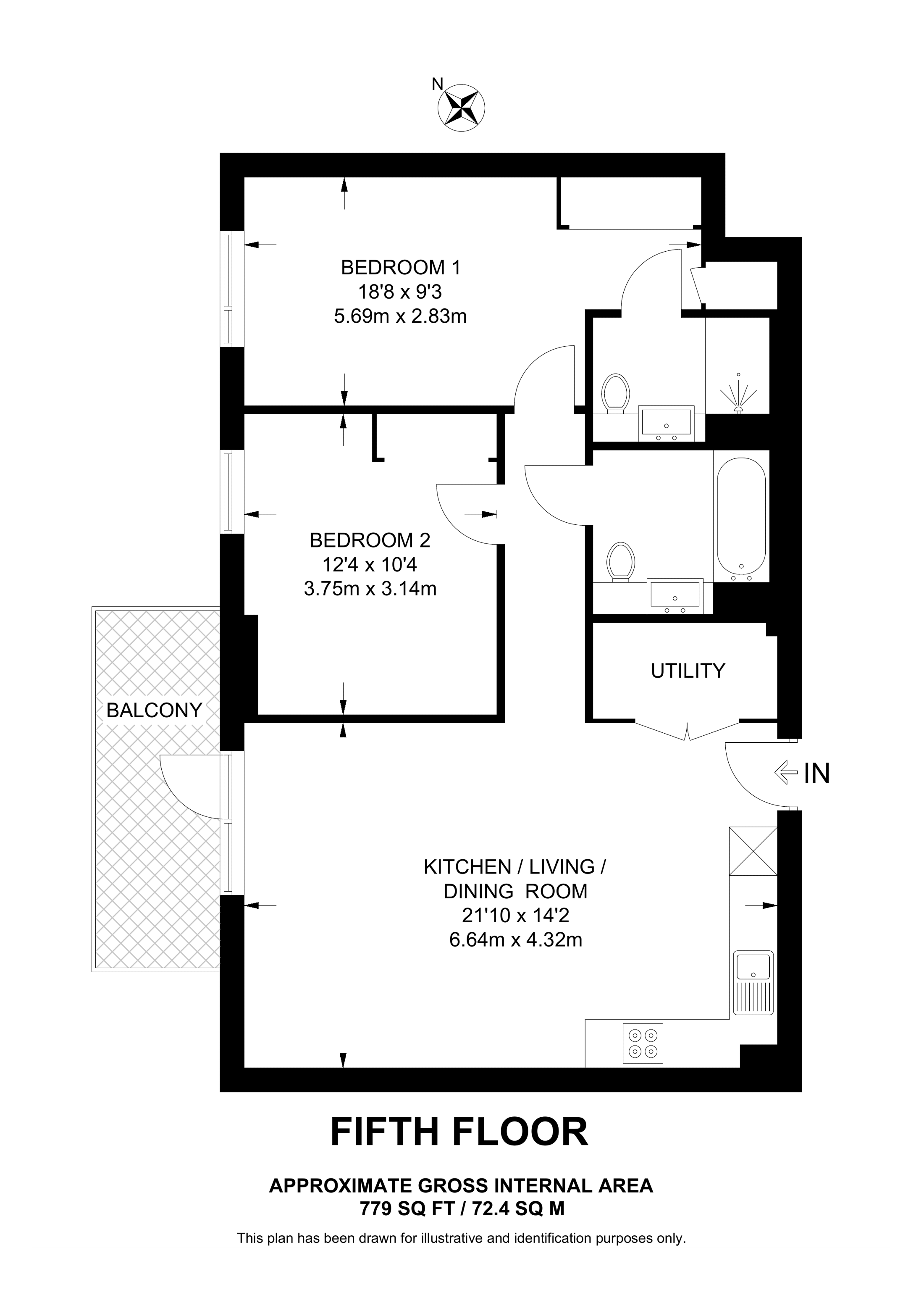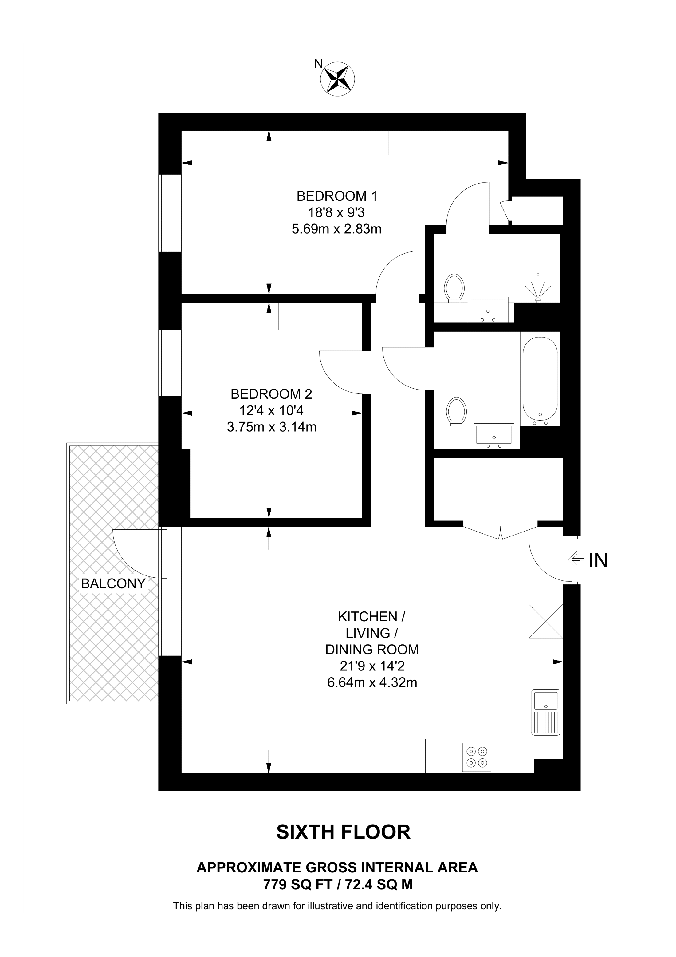 £446,000 West aspect. 4th floor flat | 2 Beds | 714 Sq Ft66 Sq M | ||