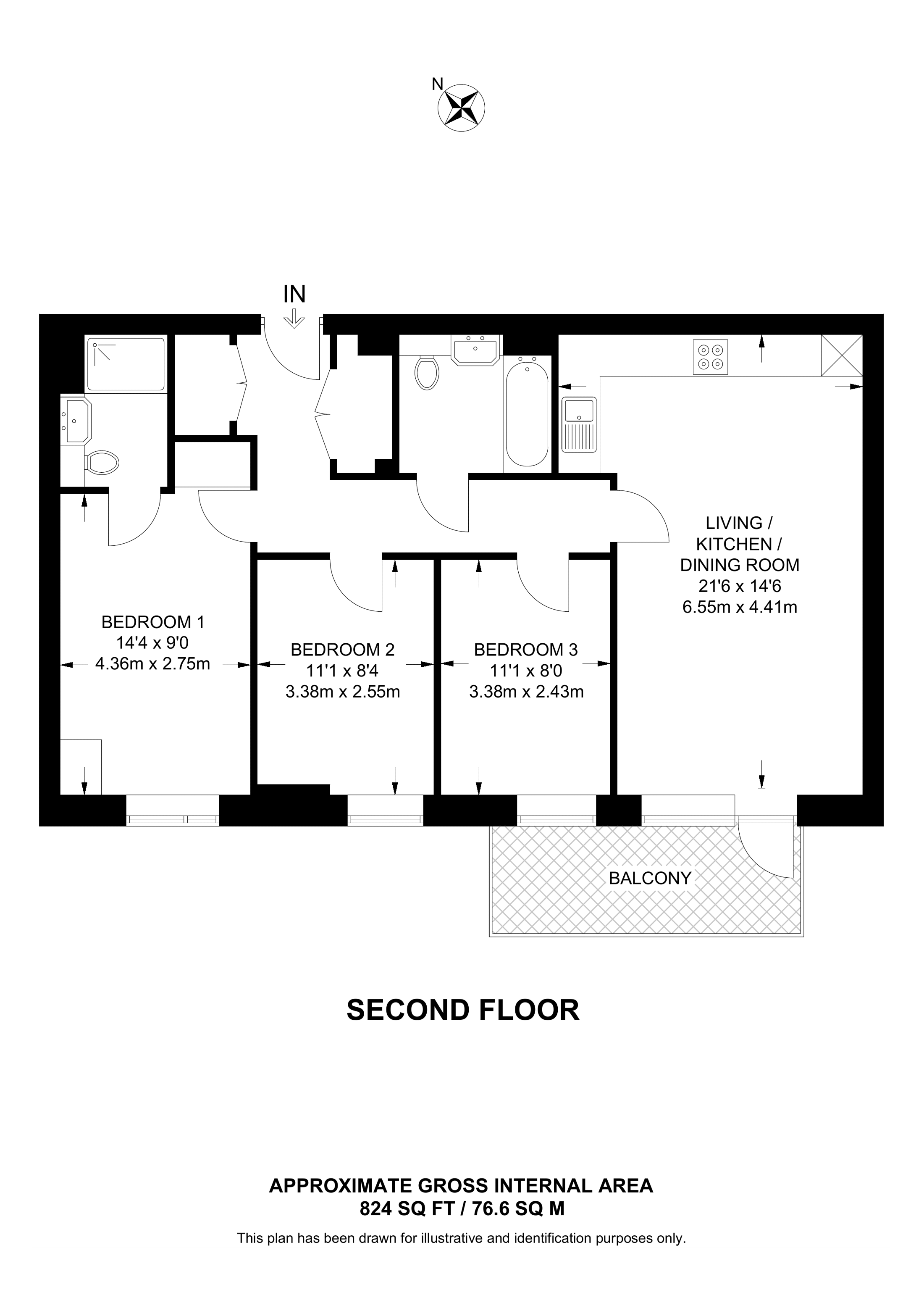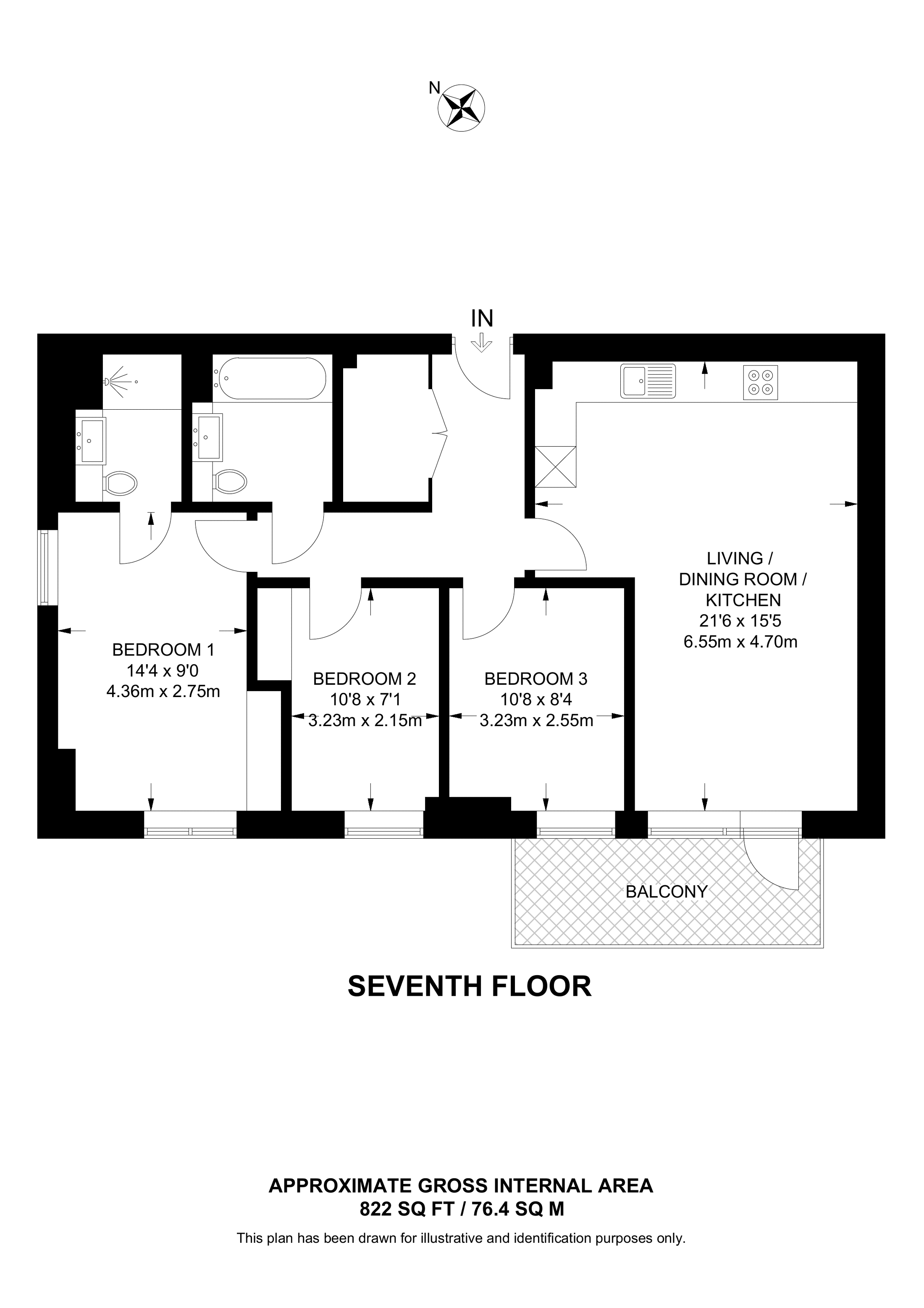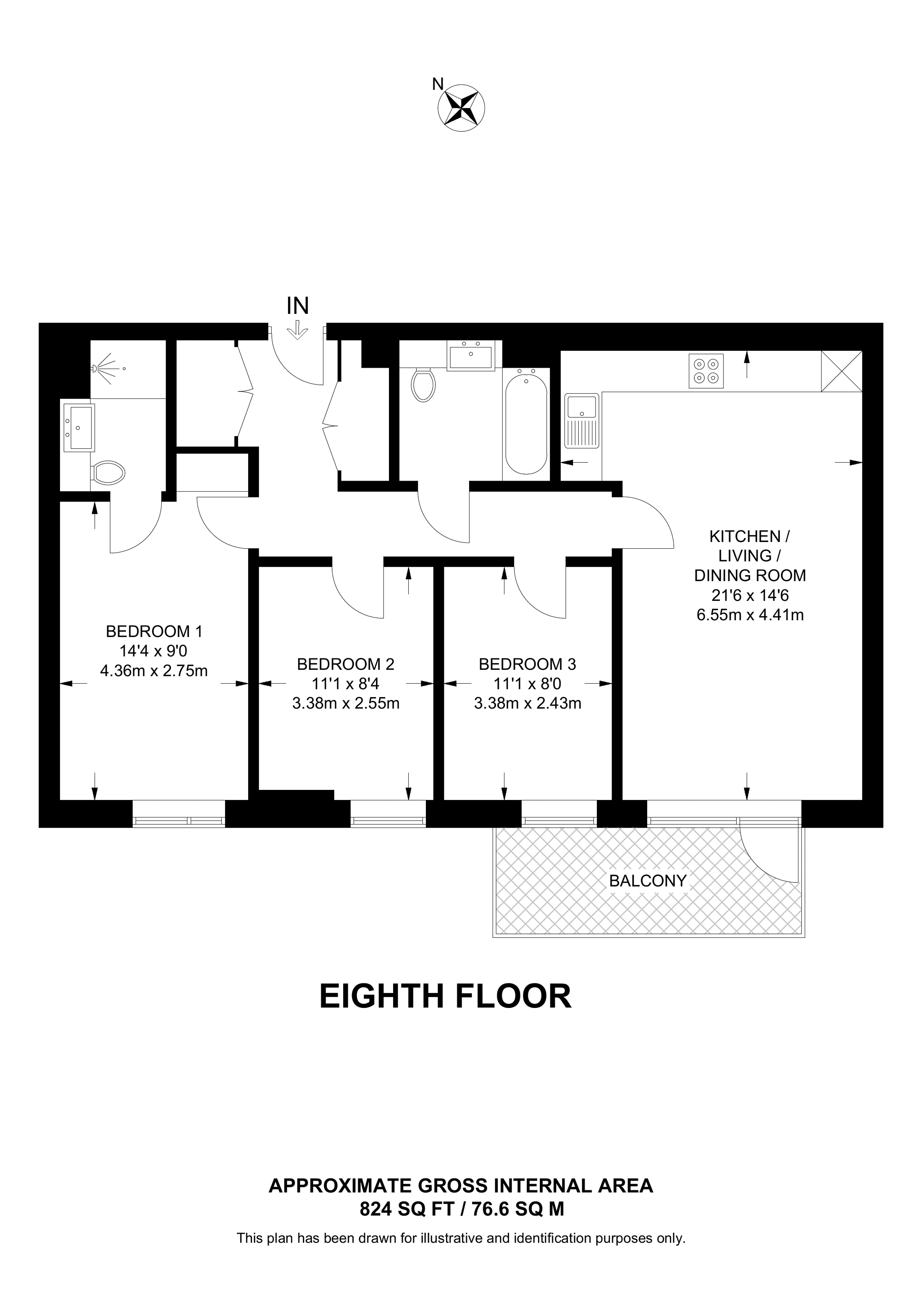 £605,000 South West aspect. 7th floor flat | 3 Beds | 824 Sq Ft77 Sq M |