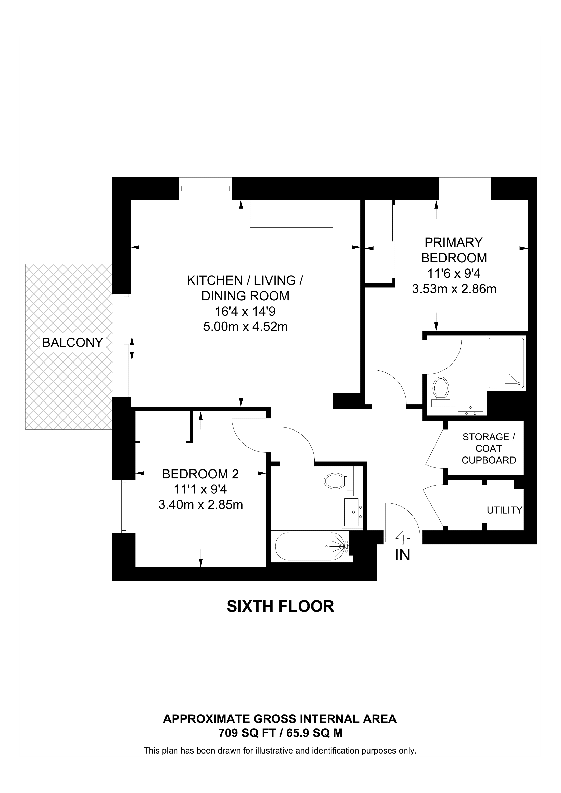 £643,000 North West aspect. 6th floor flat | 2 Beds | 709 Sq Ft66 Sq M | ||