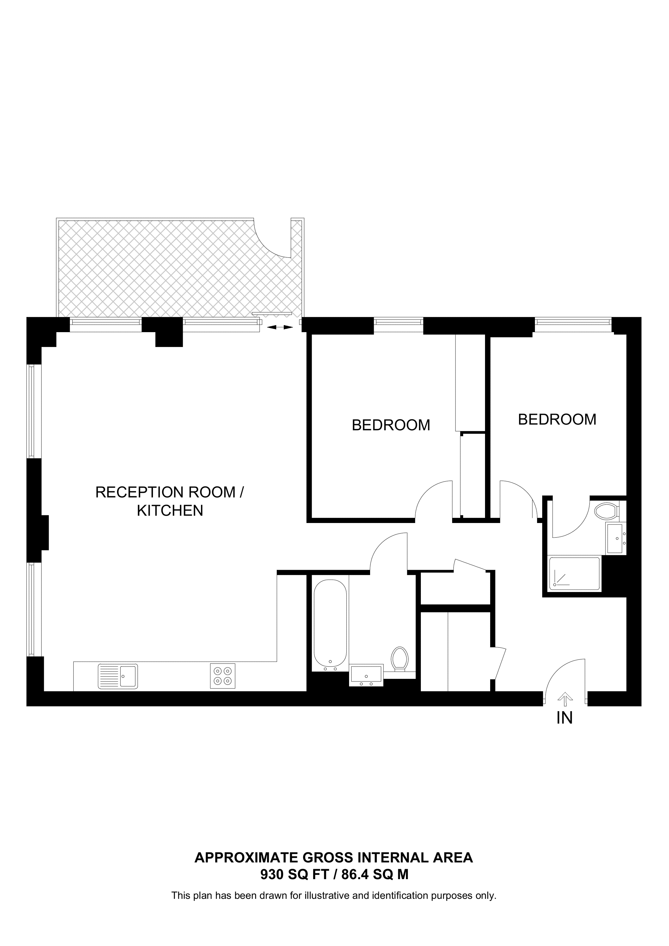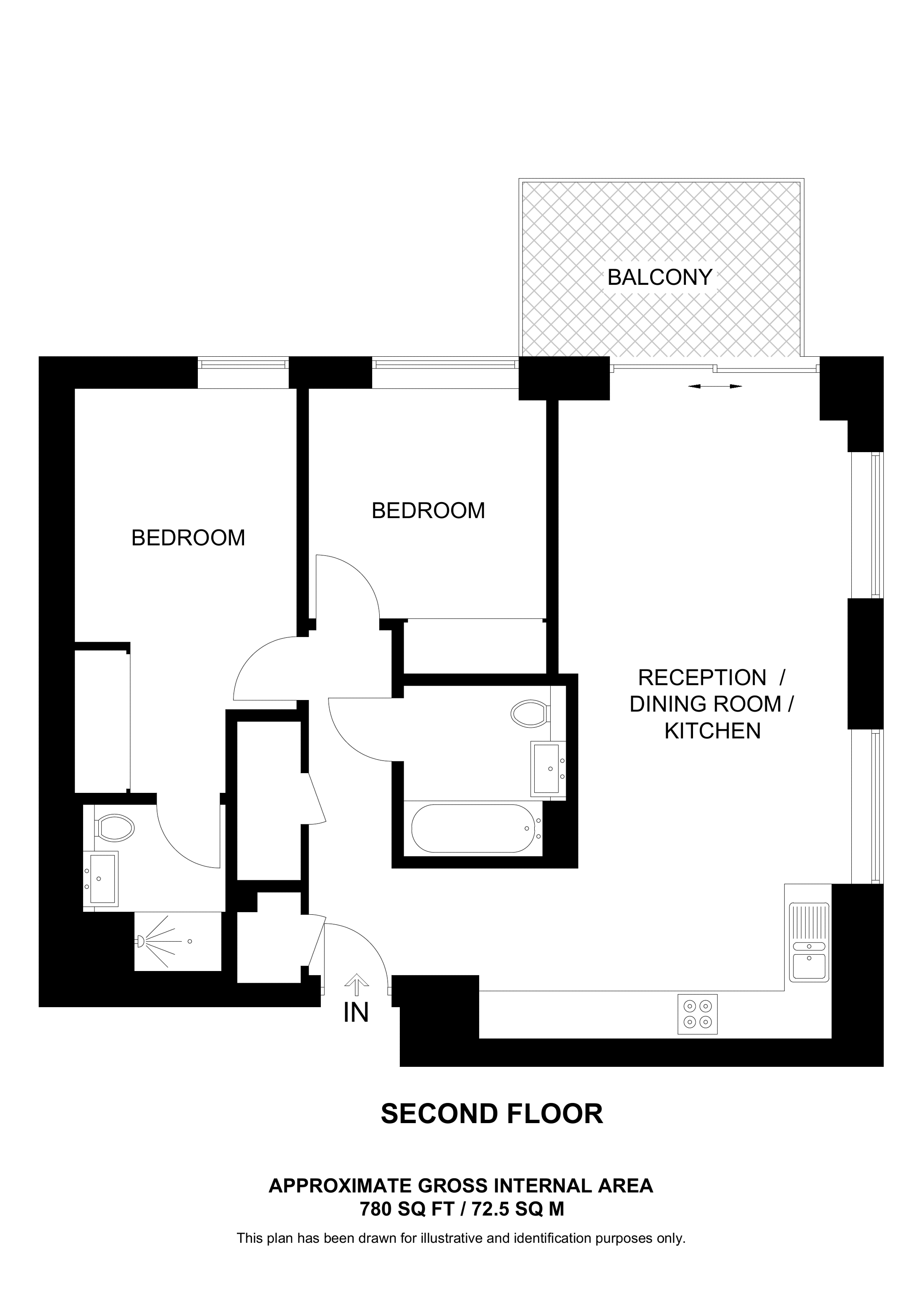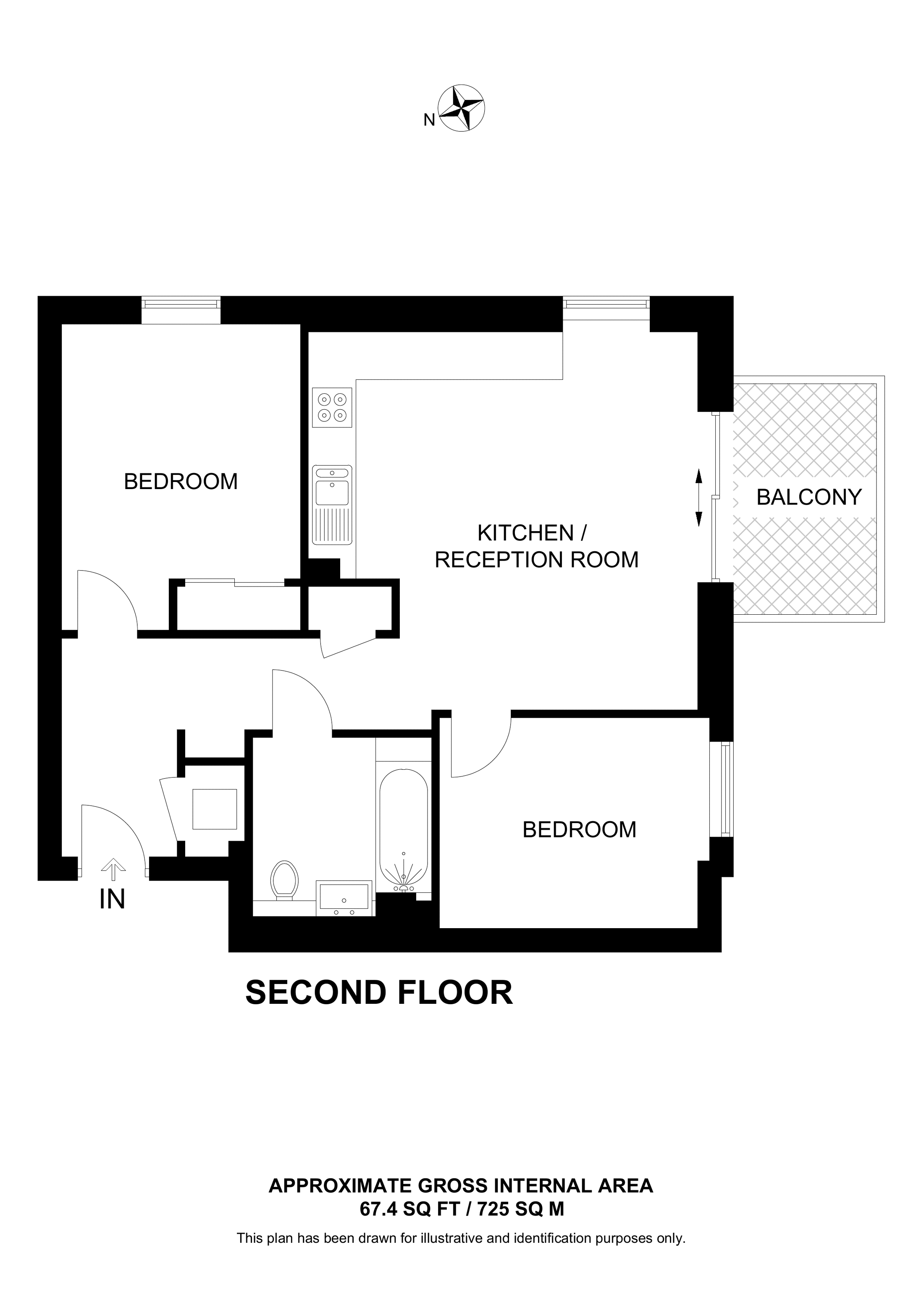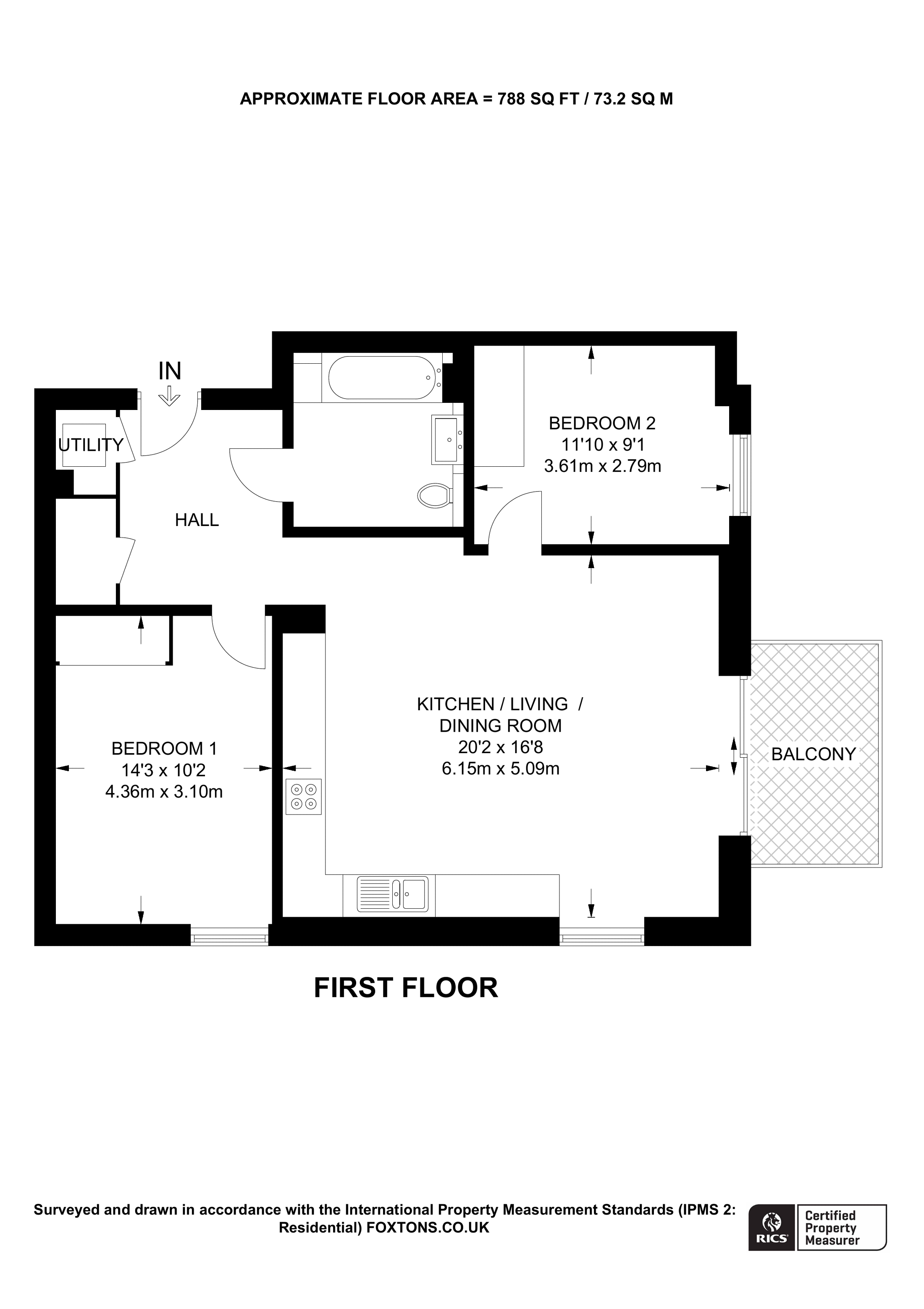 £555,000 South aspect. 1st floor flat | 2 Beds | 788 Sq Ft73 Sq M | ||
