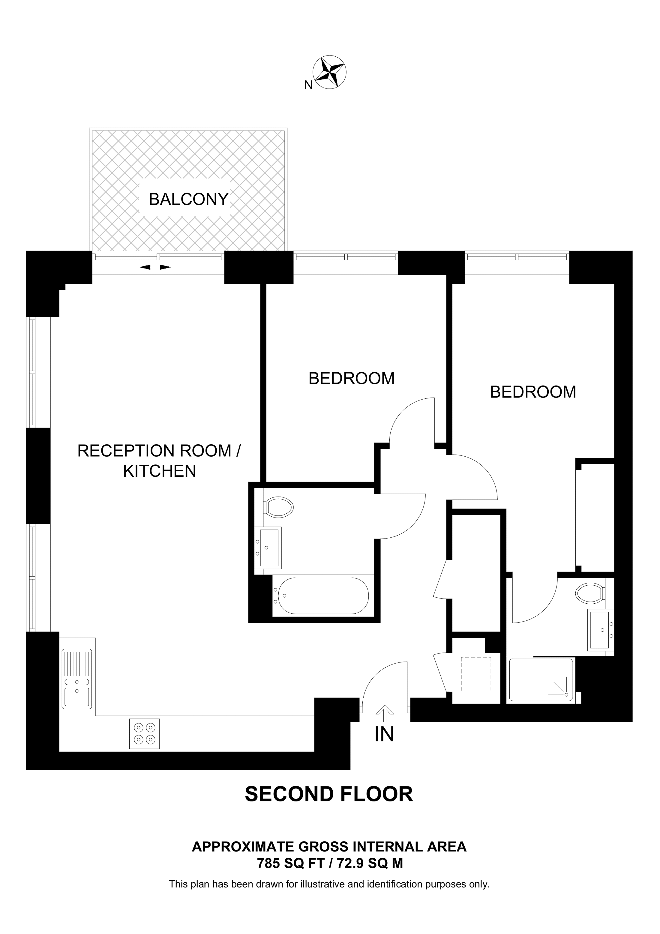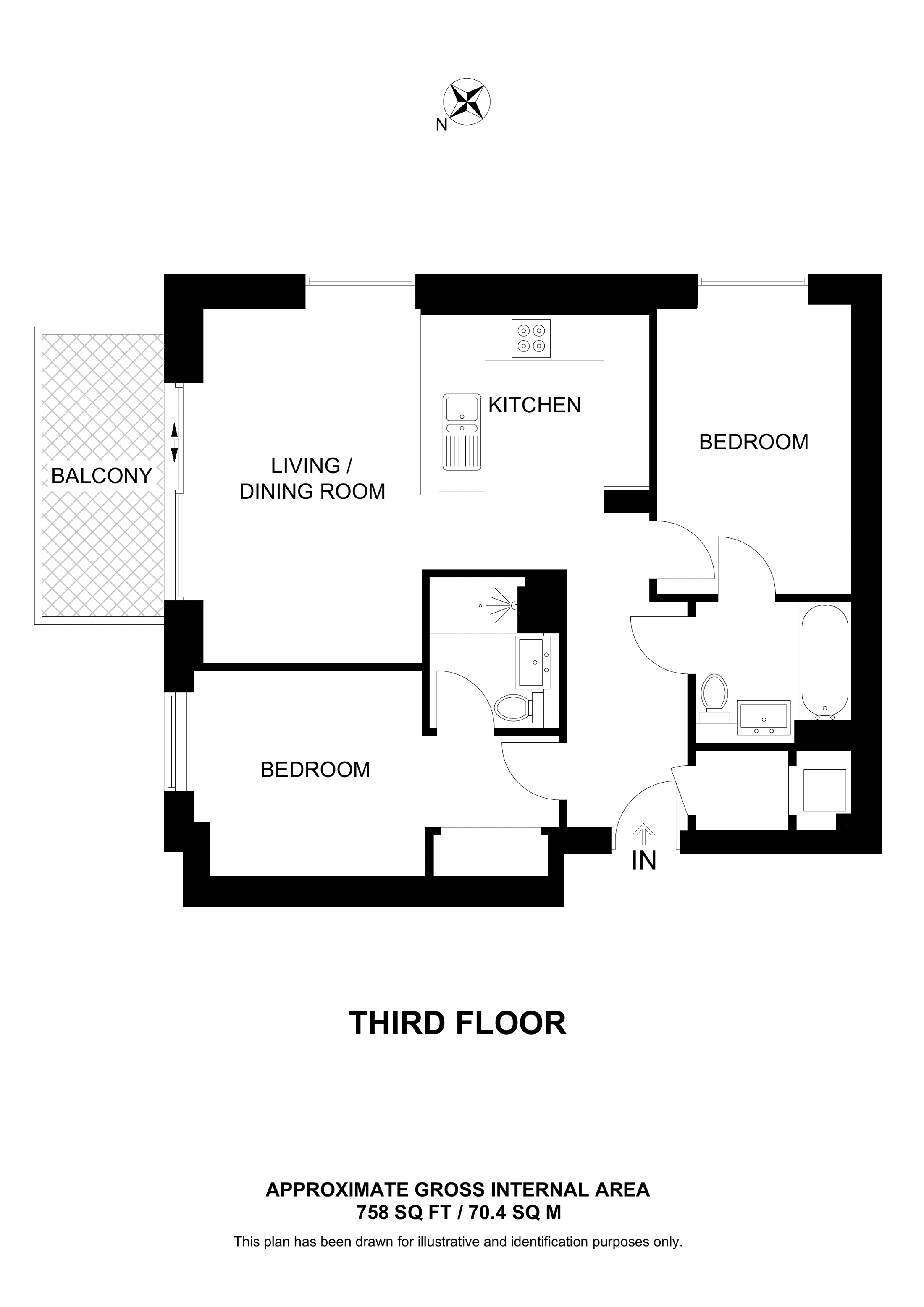 £630,000 North aspect. 3rd floor flat | 2 Beds | 758 Sq Ft70 Sq M | ||