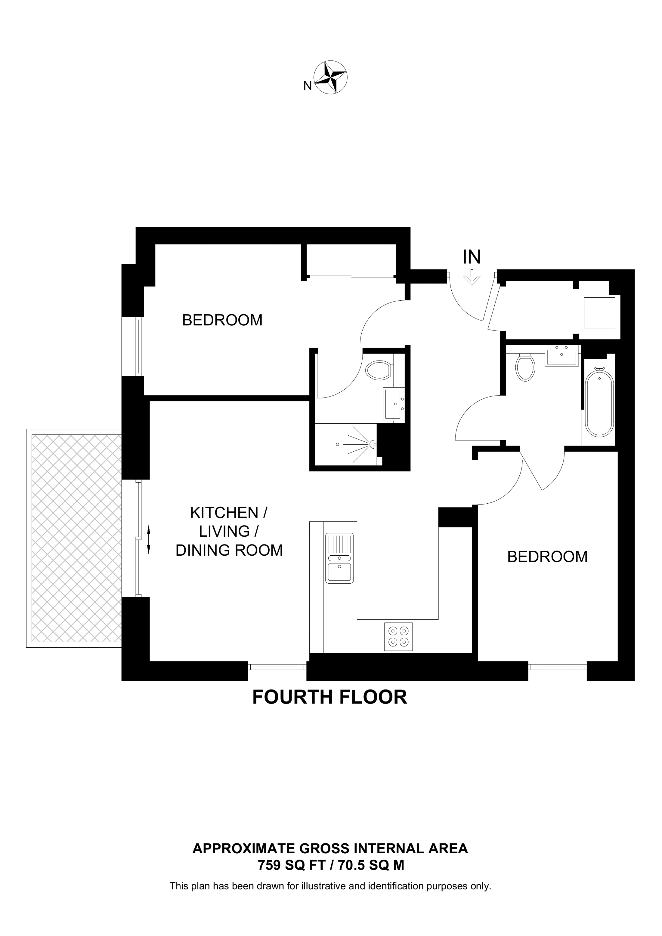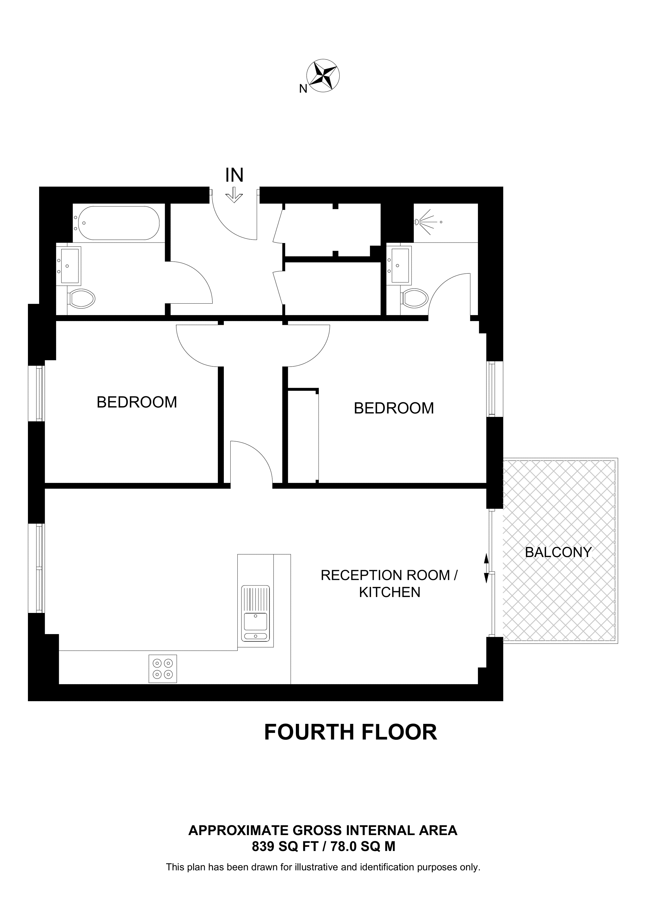 £670,000 North West aspect. 4th floor flat | 2 Beds | 759 Sq Ft71 Sq M | ||