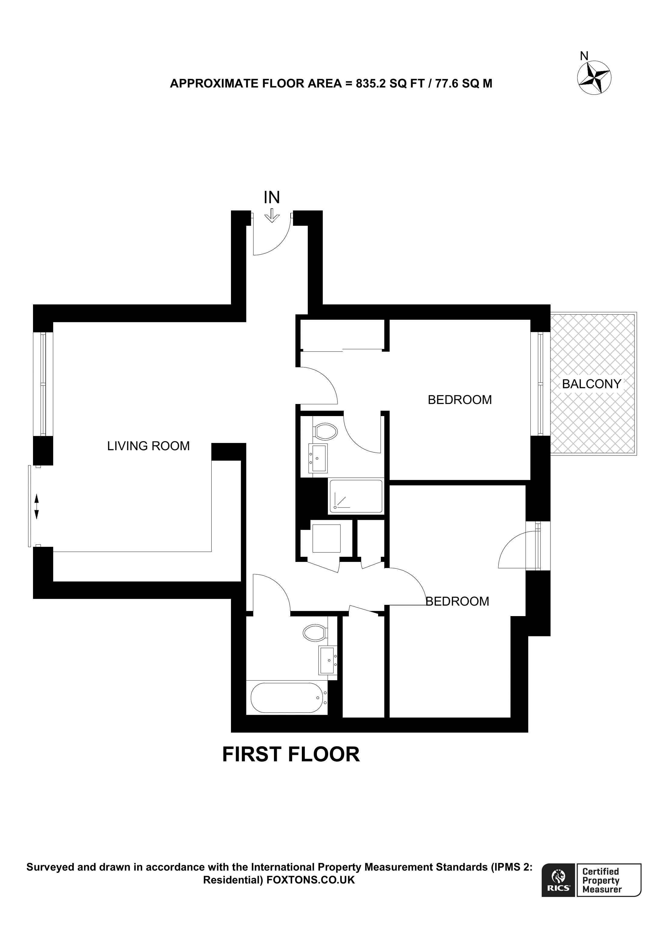 £678,000 South East aspect. 1st floor flat | 2 Beds | 835 Sq Ft78 Sq M | ||