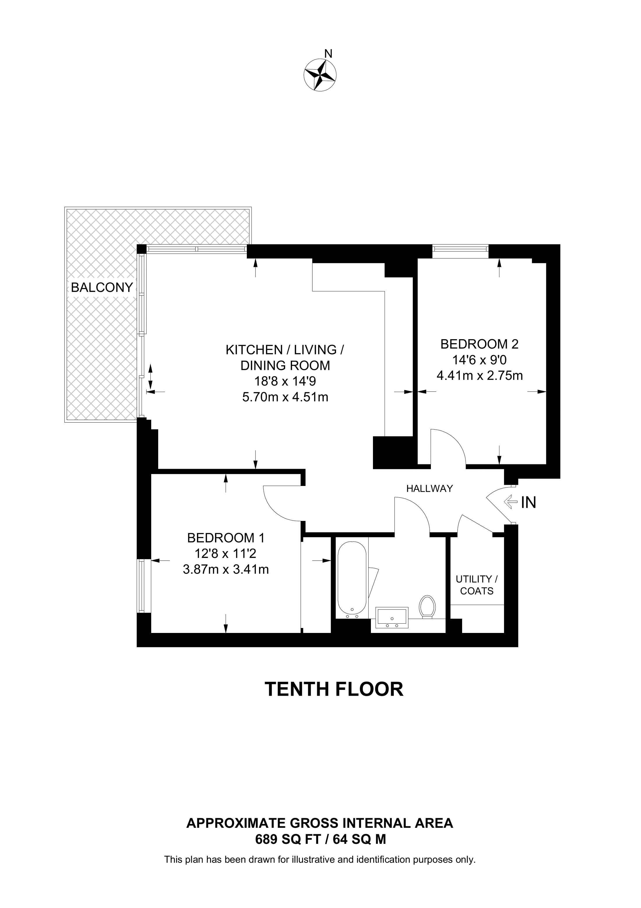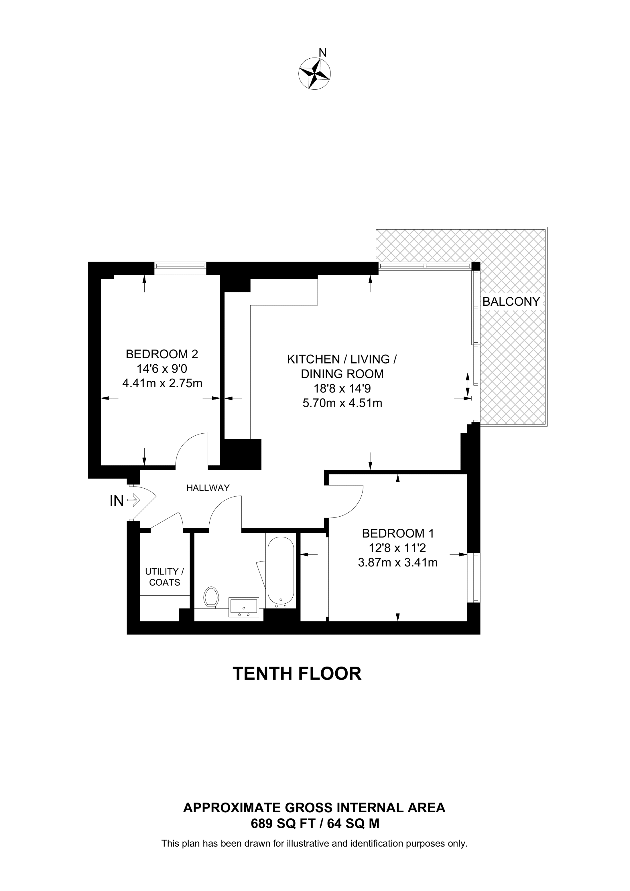 £570,000 North West aspect. 10th floor flat | 2 Beds | 689 Sq Ft64 Sq M | ||