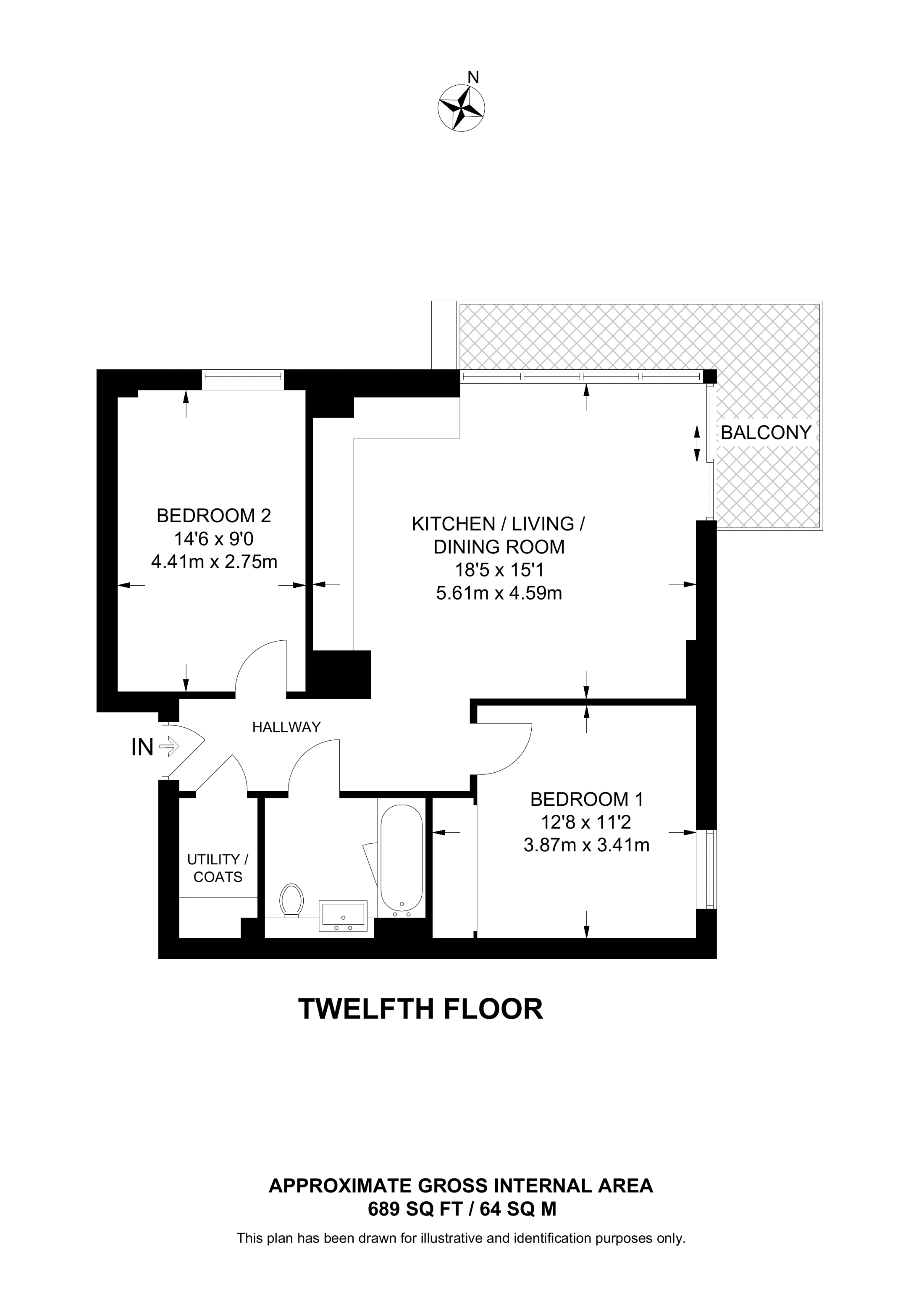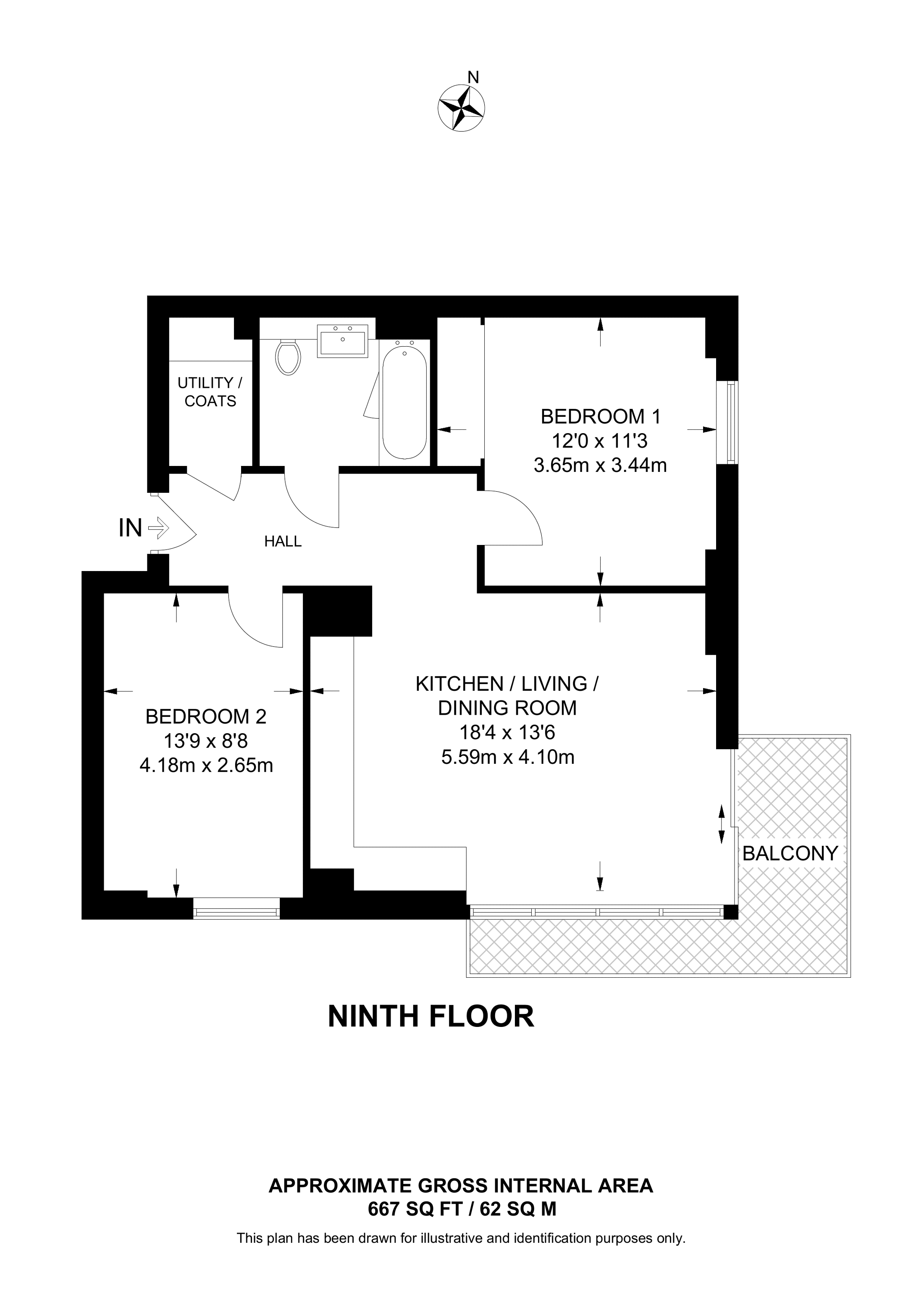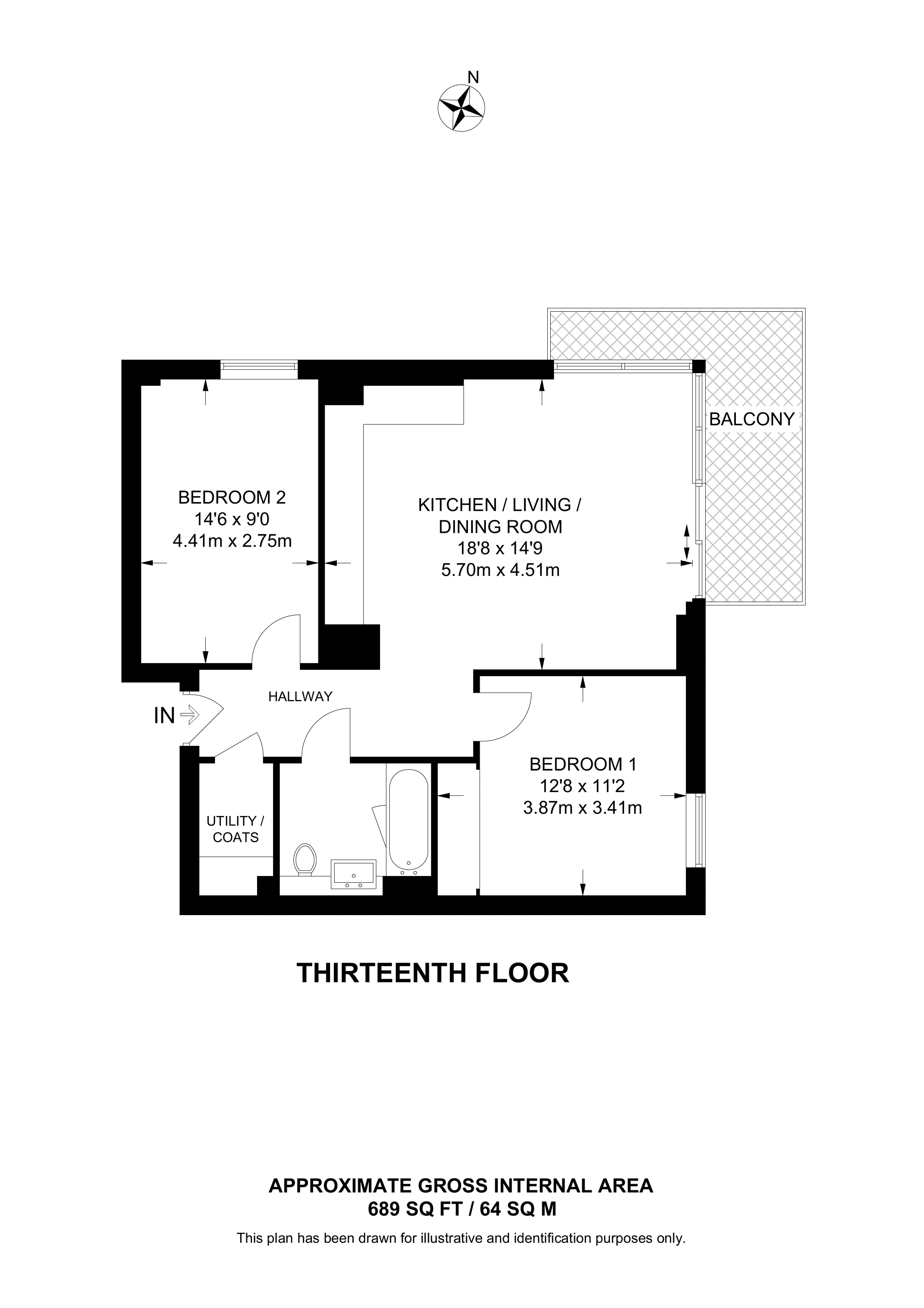 £585,000 North East aspect. 13th floor flat | 2 Beds | 689 Sq Ft64 Sq M | ||