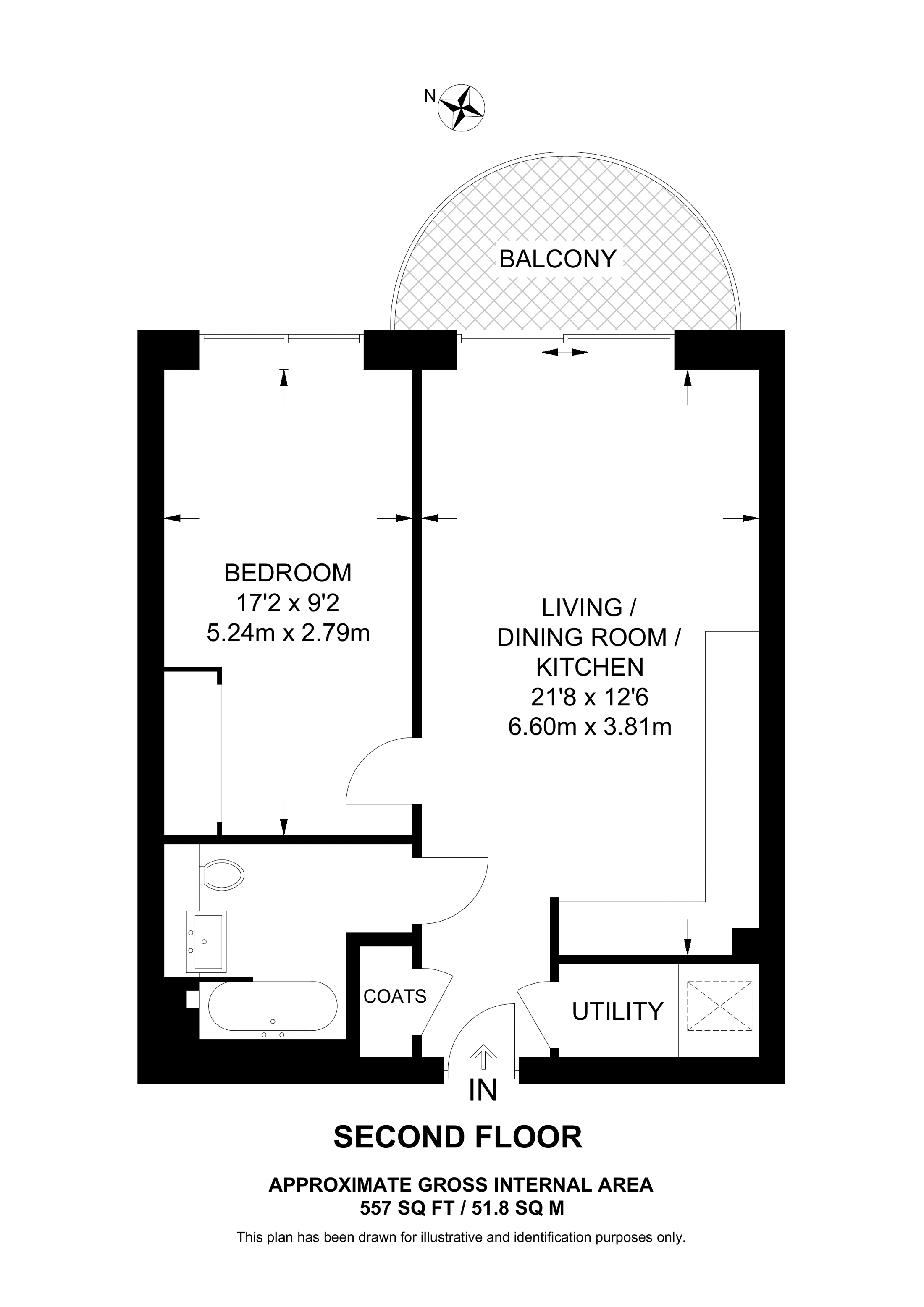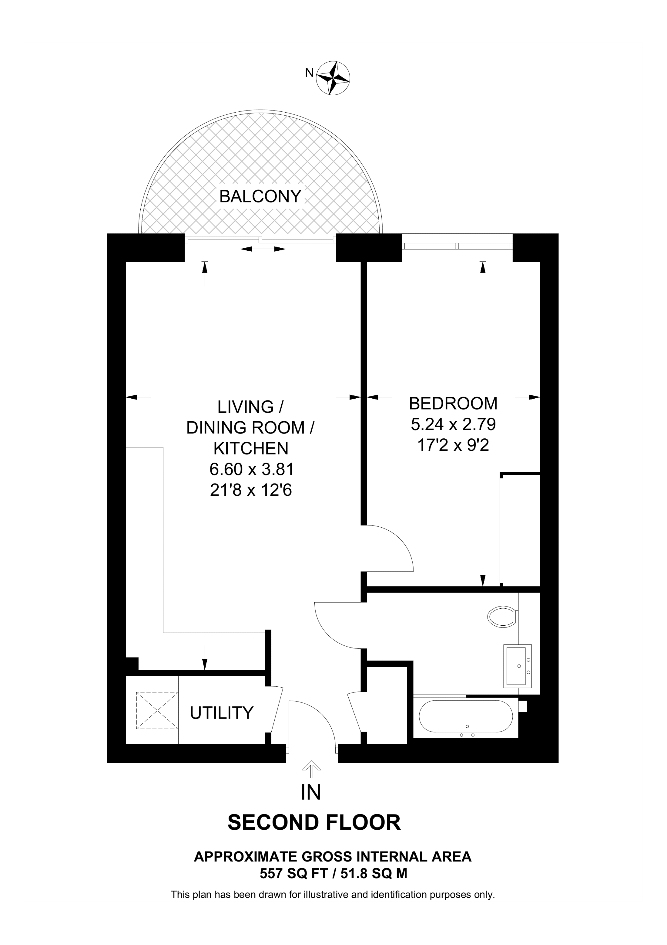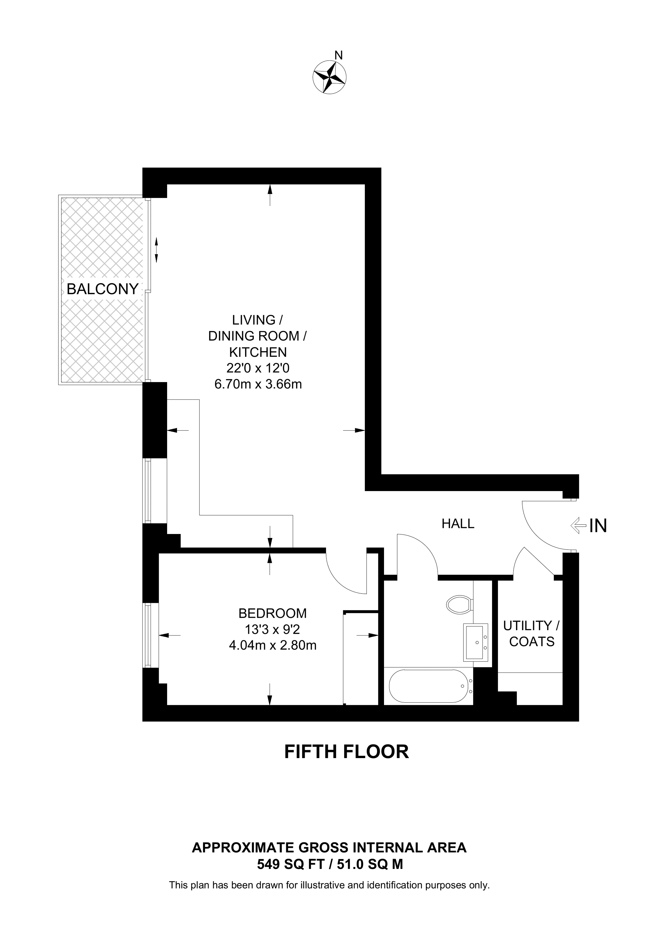 £462,500 East aspect. 5th floor flat | 1 Bed | 549 Sq Ft51 Sq M | ||