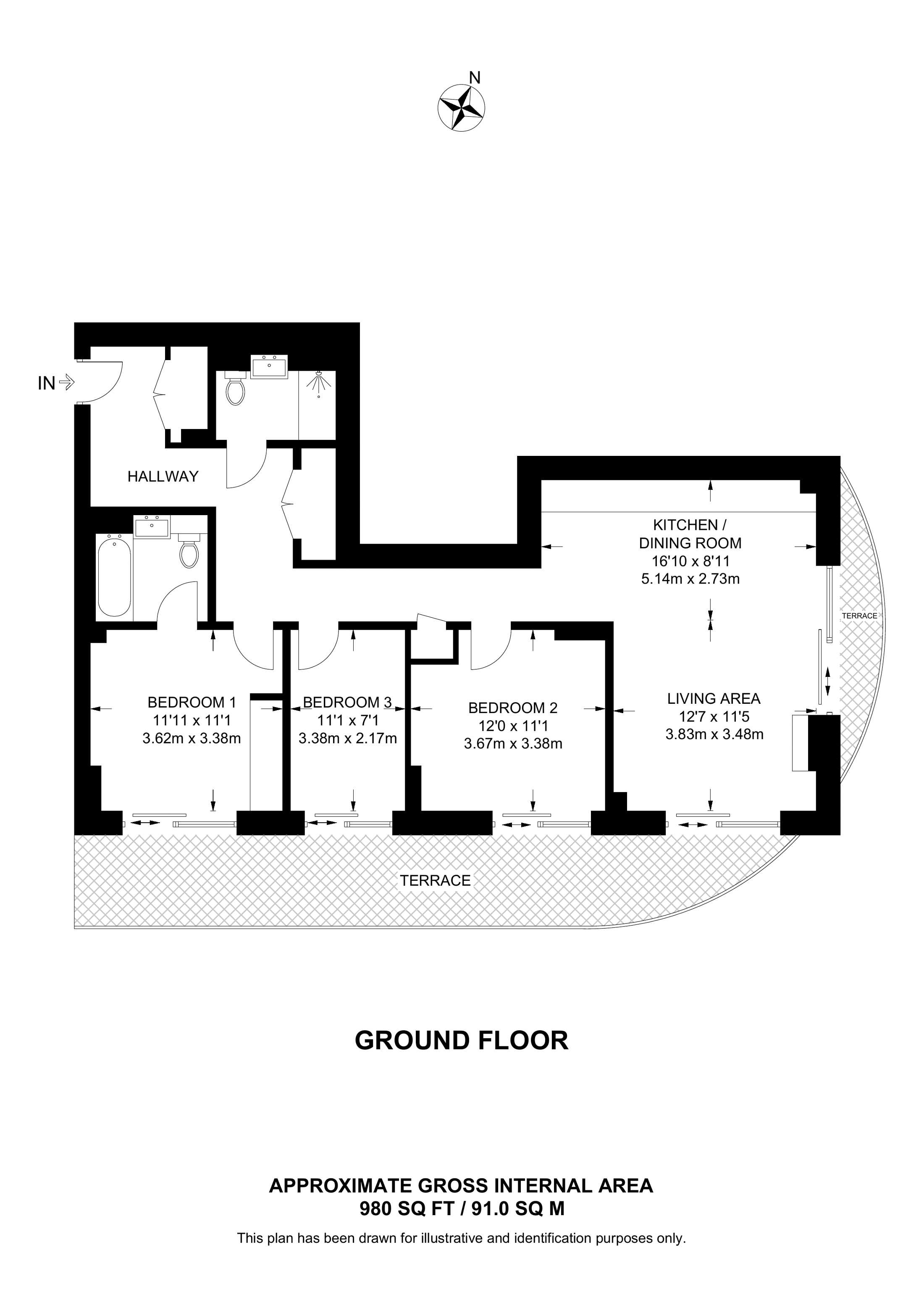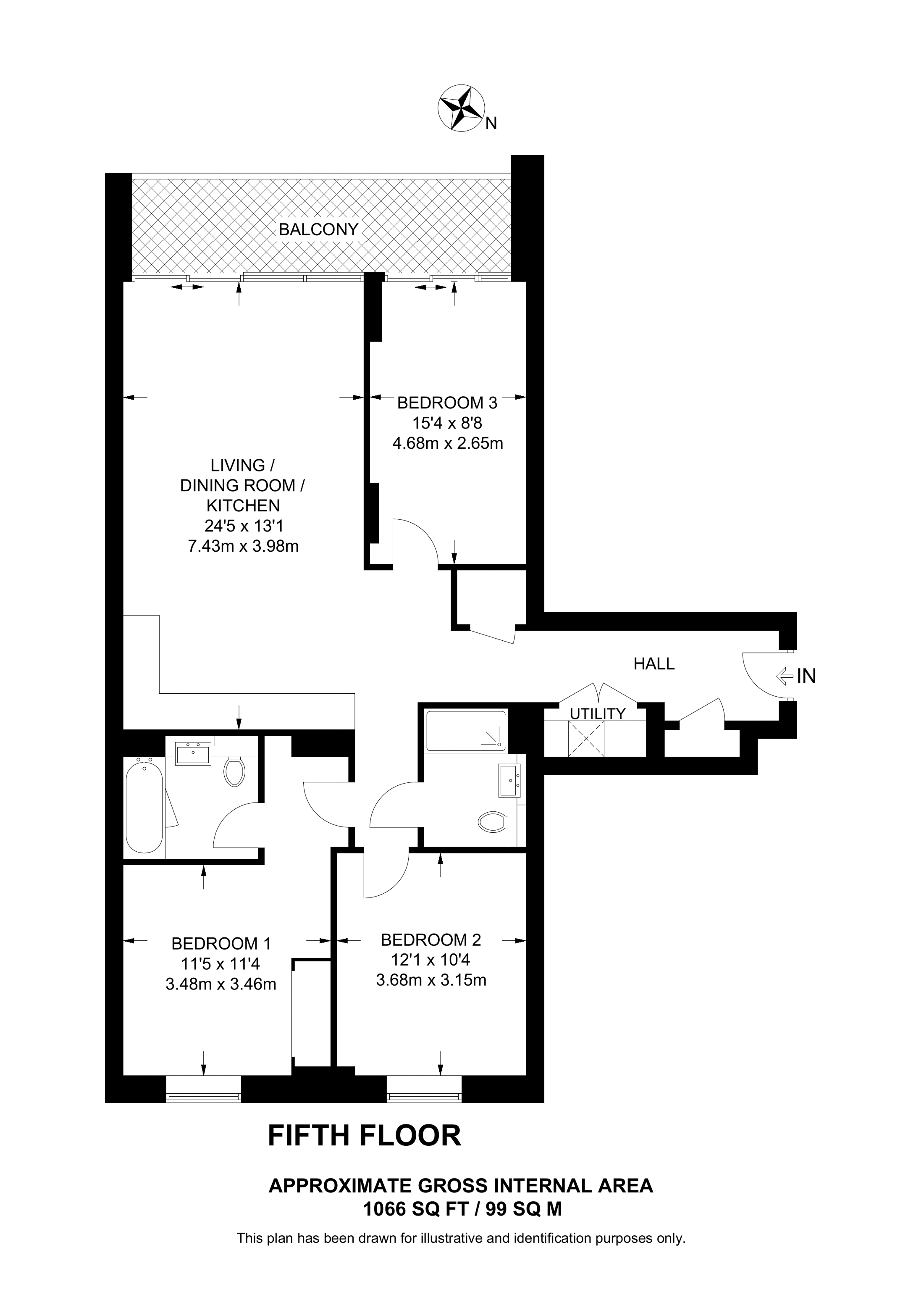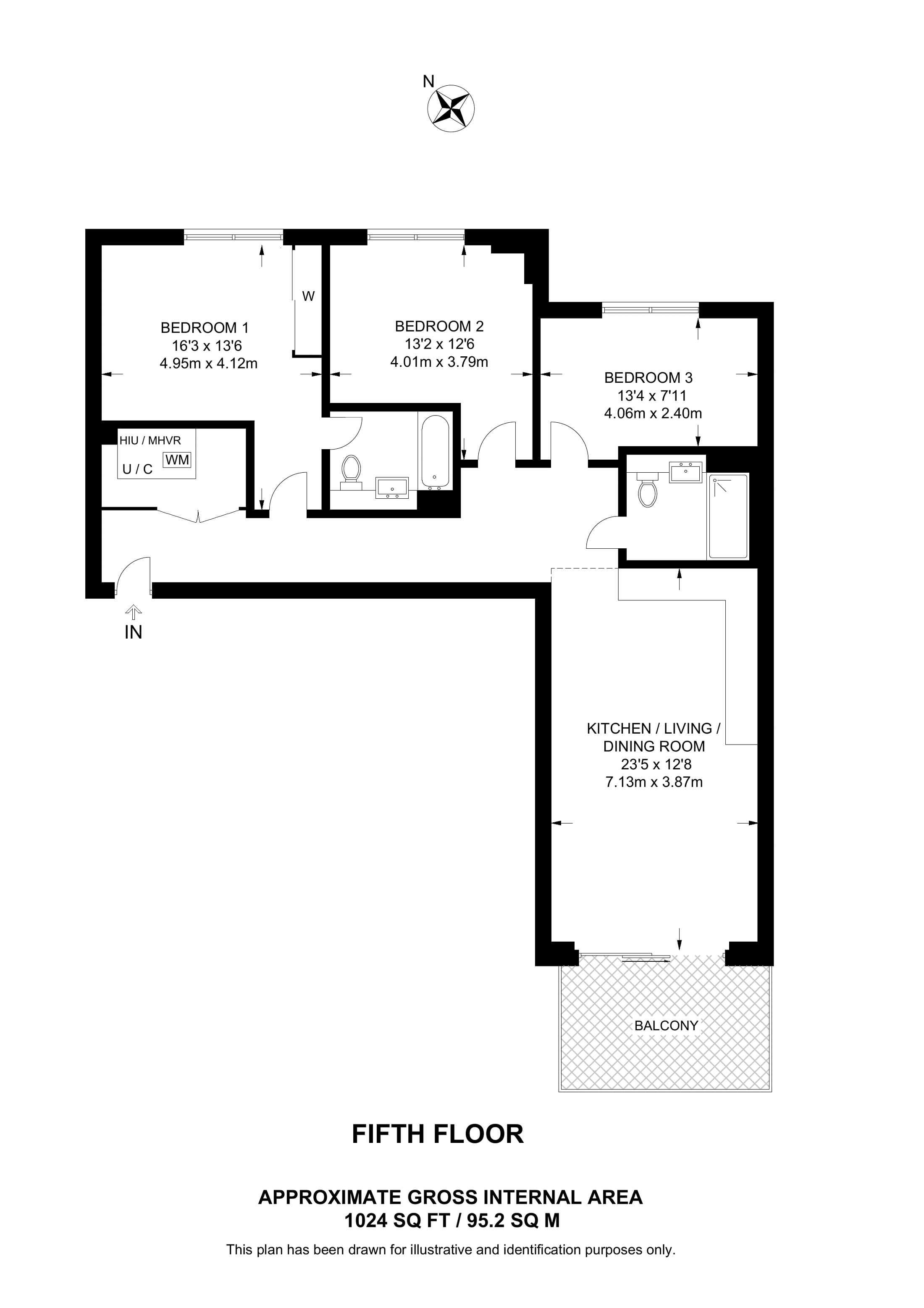£705,000 4th floor flat | 3 Beds | 1,024 Sq Ft95 Sq M | ||