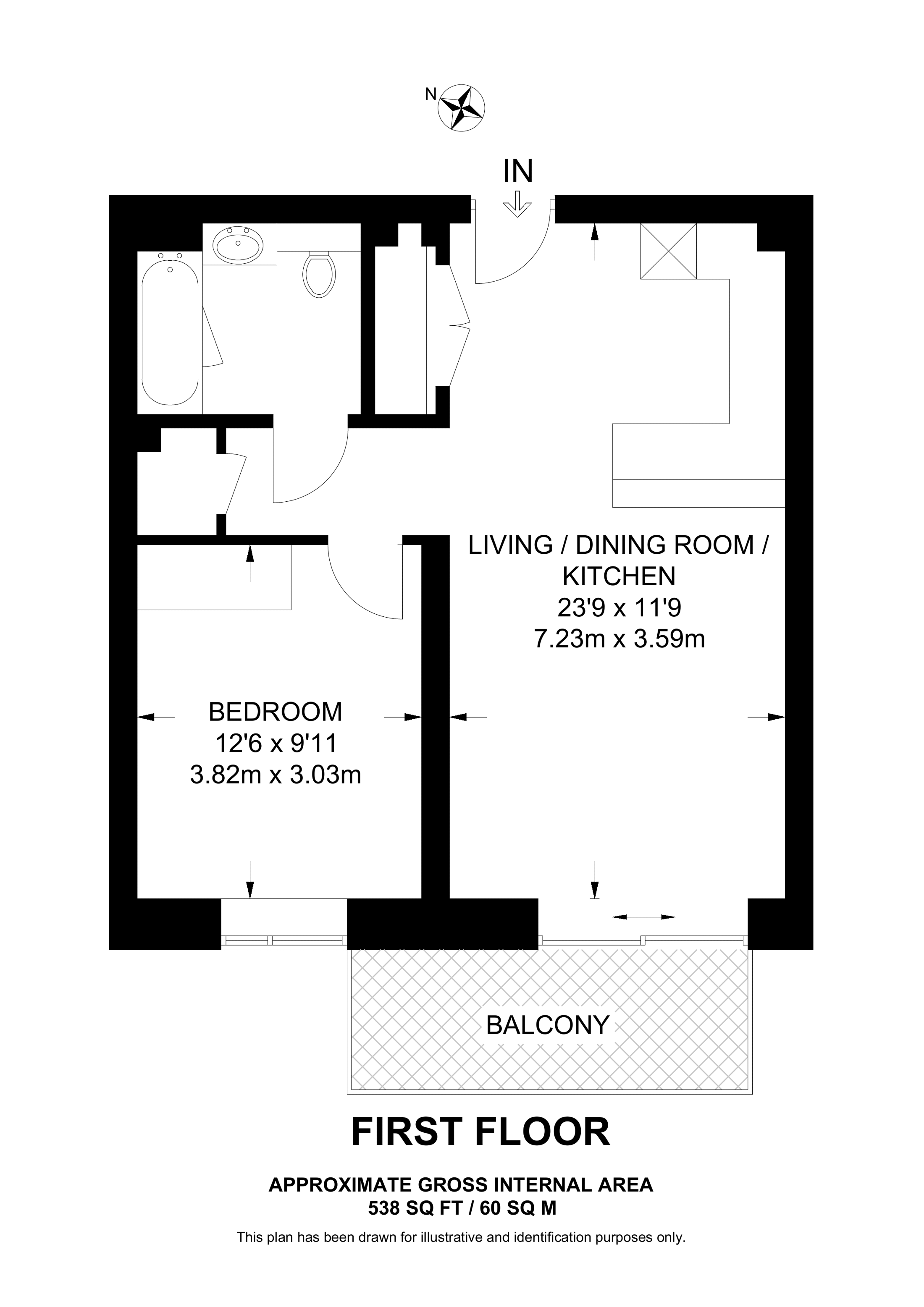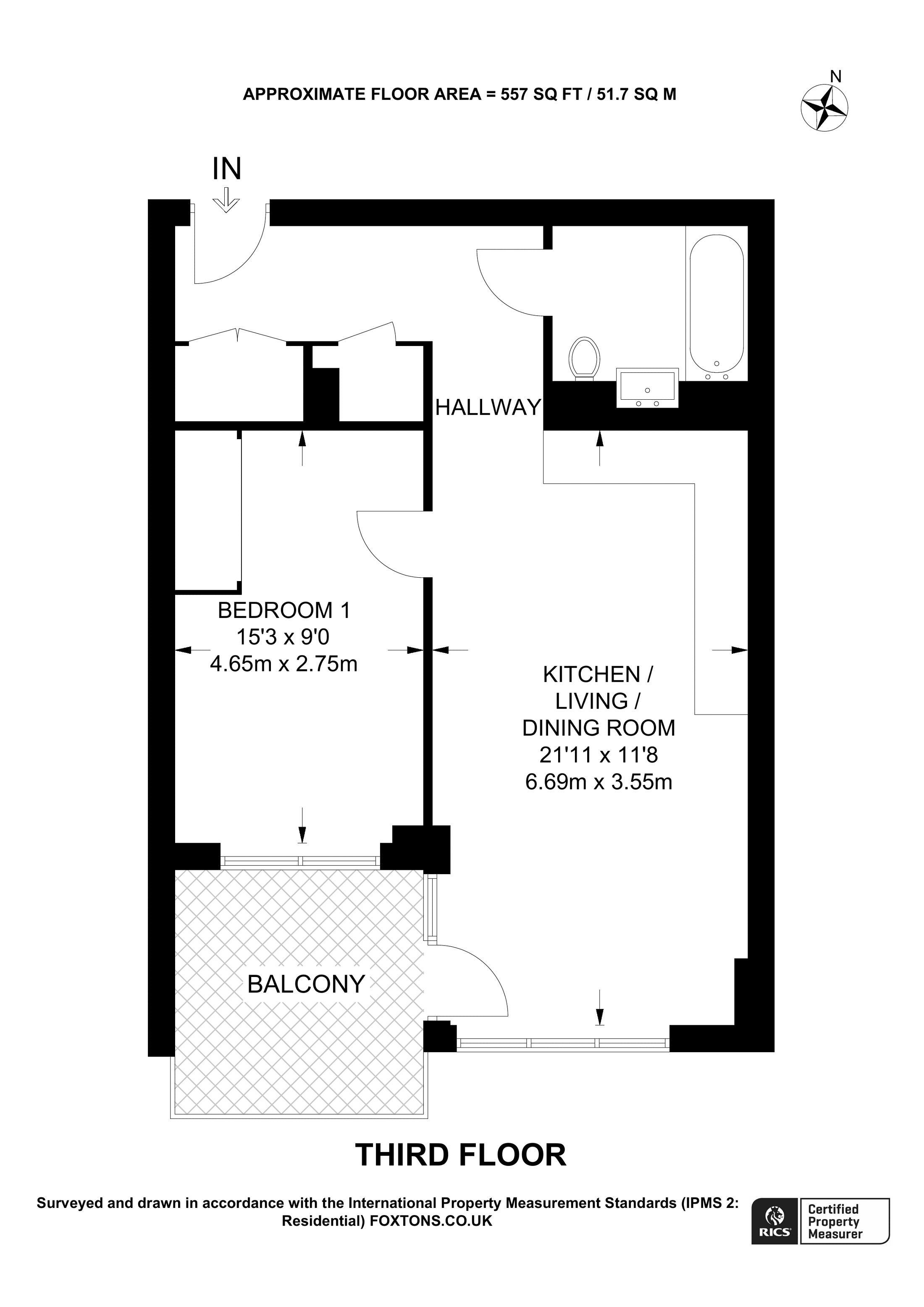 £452,500 West aspect. 3rd floor flat | 1 Bed | 549 Sq Ft51 Sq M | ||